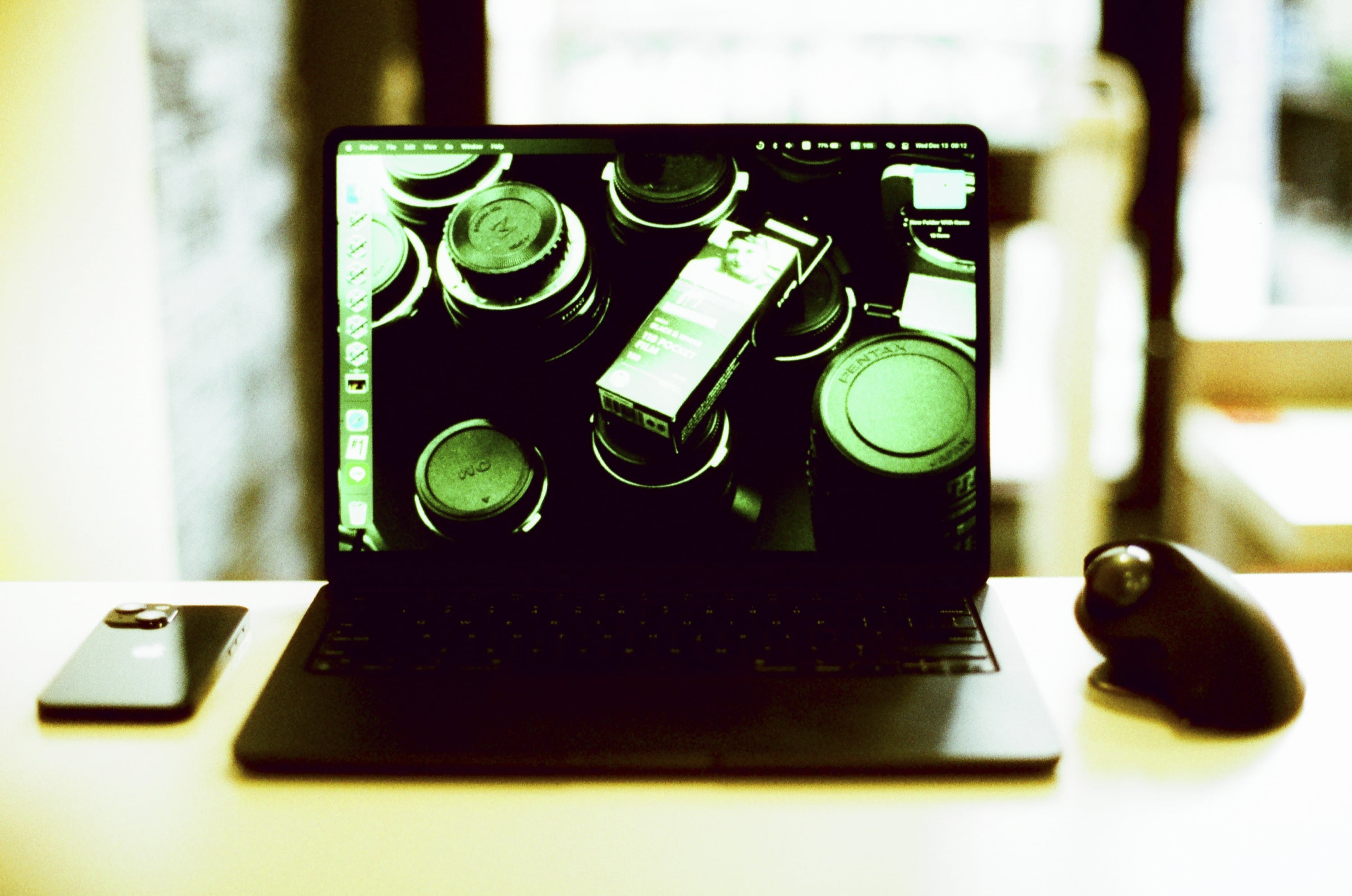 最近的桌面,那張相片是用 Pentax Auto 110 拍的,想不到 110 片幅還能放大成桌面(具有滿滿的顆粒感)。