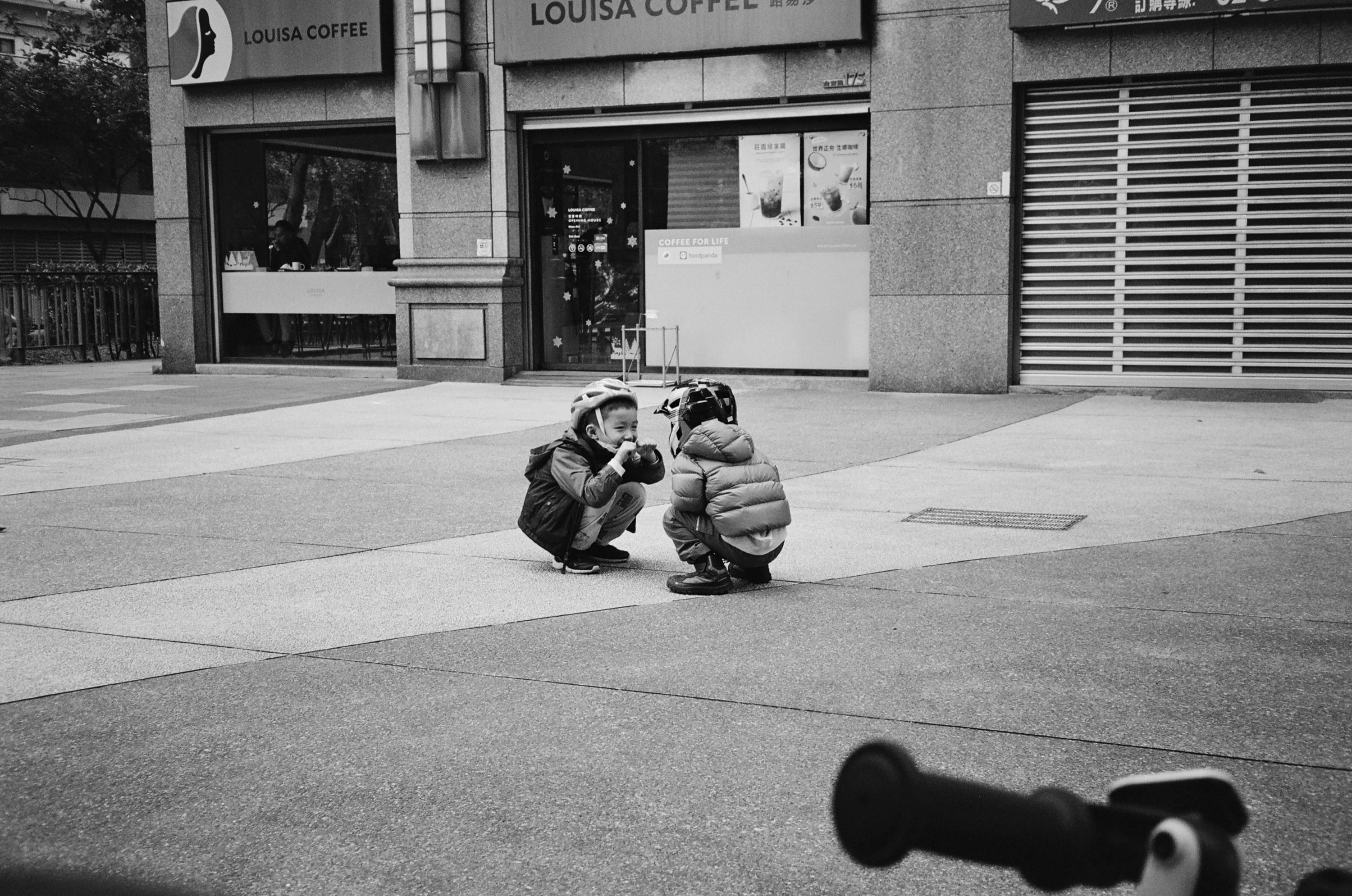 和兒子班上同學約出來騎腳踏車中,兩個人不知道在商量什麼秘密計畫。