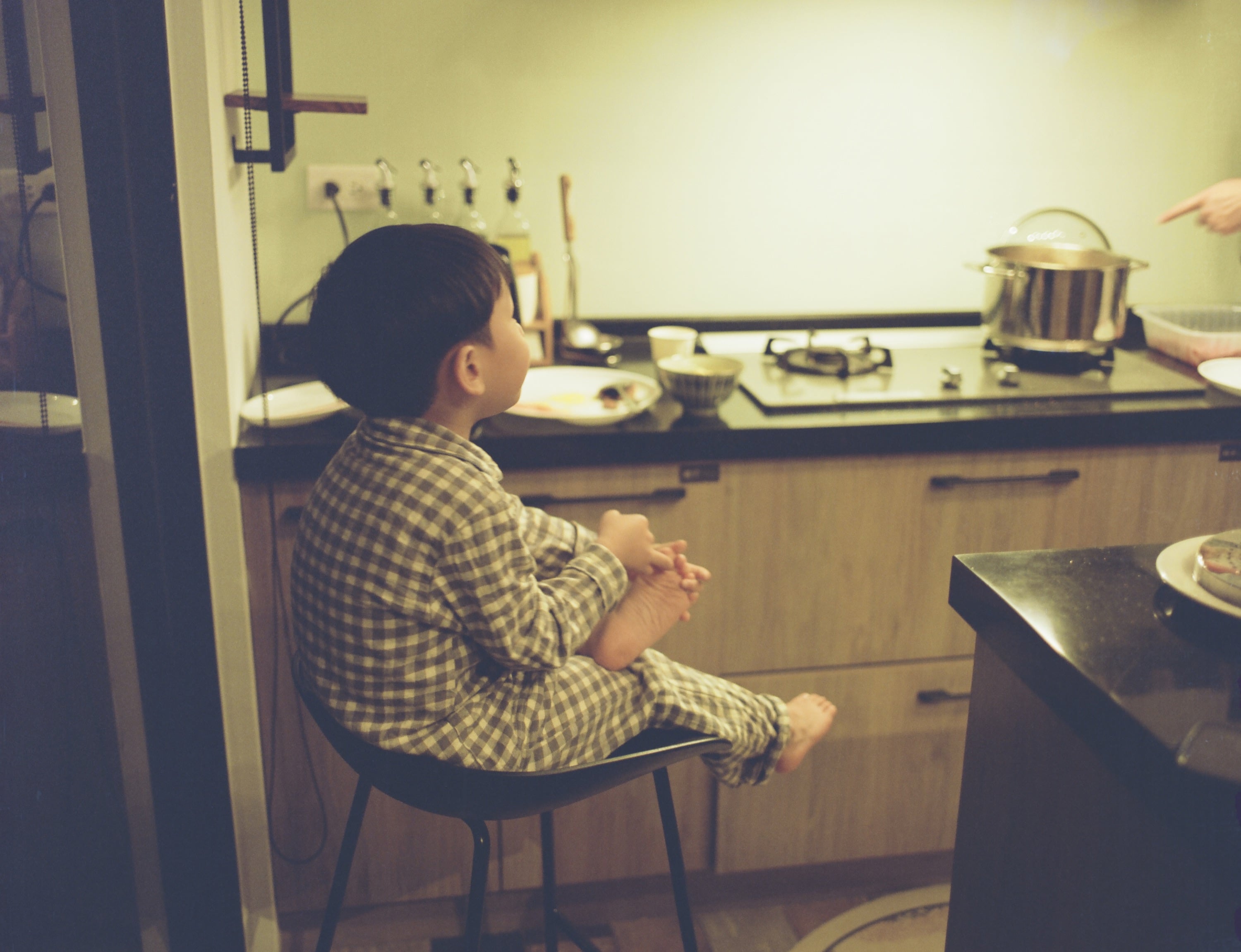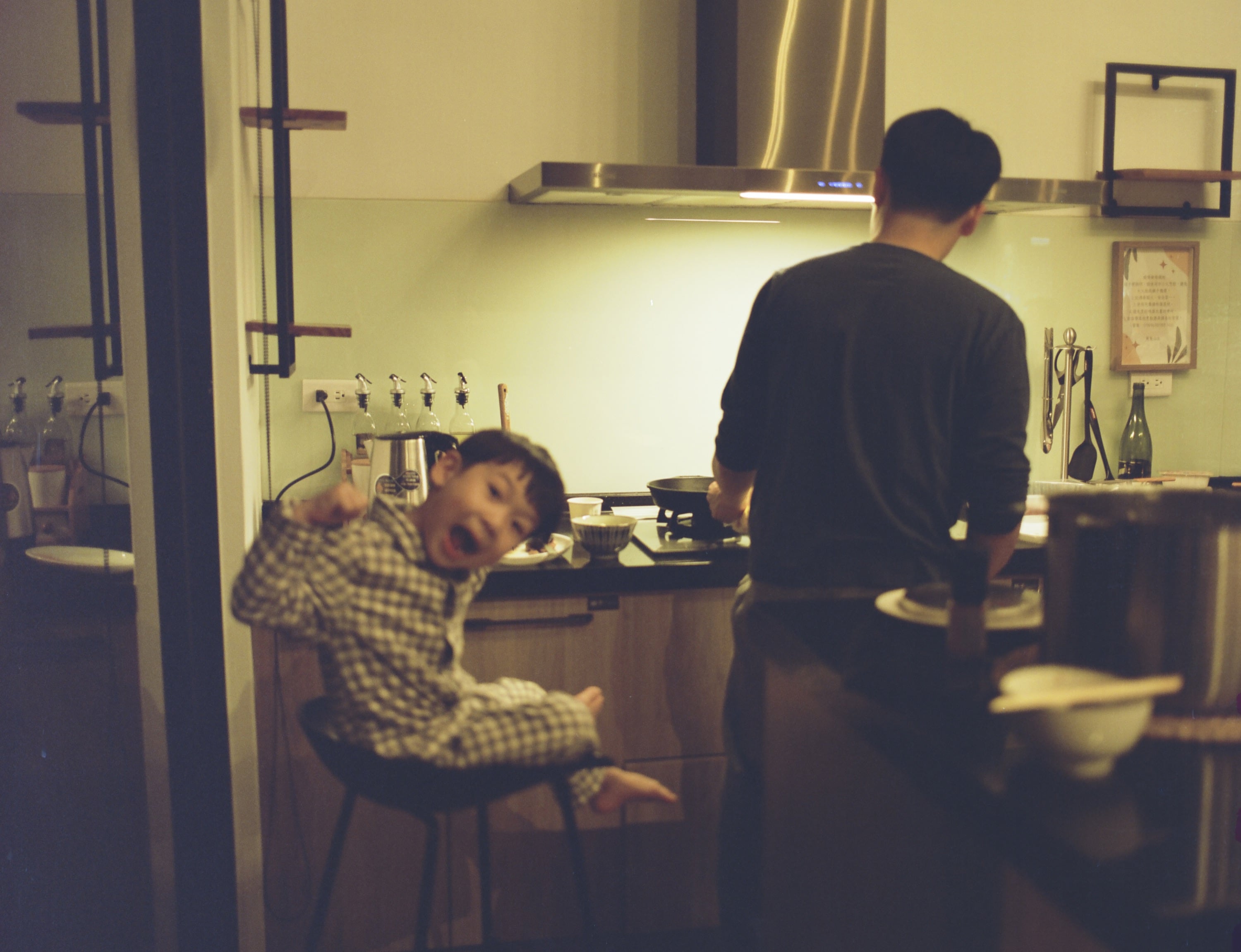 2023 年 12 月 31 日的夜晚,兒子正在等同行大廚的煎牛排。