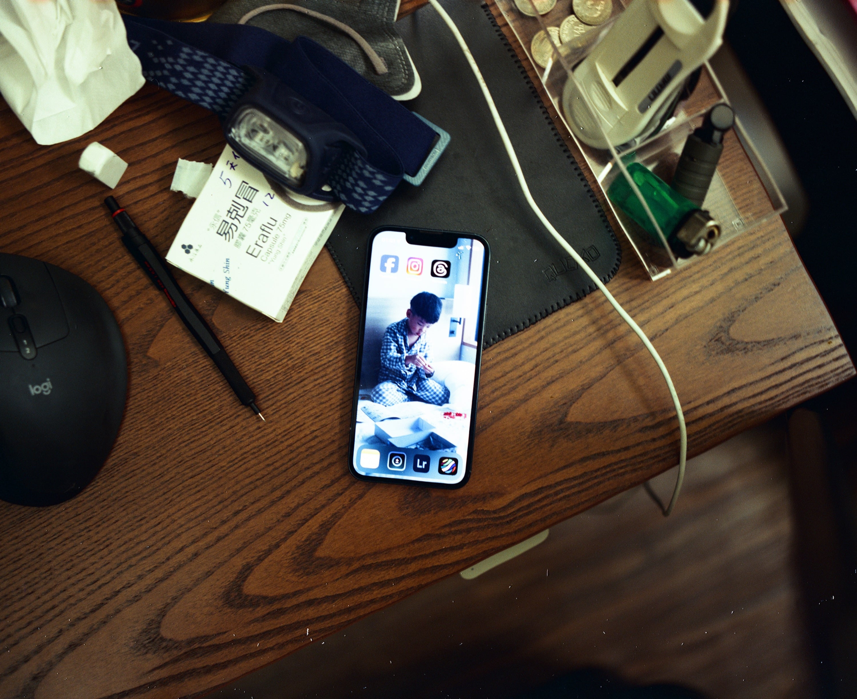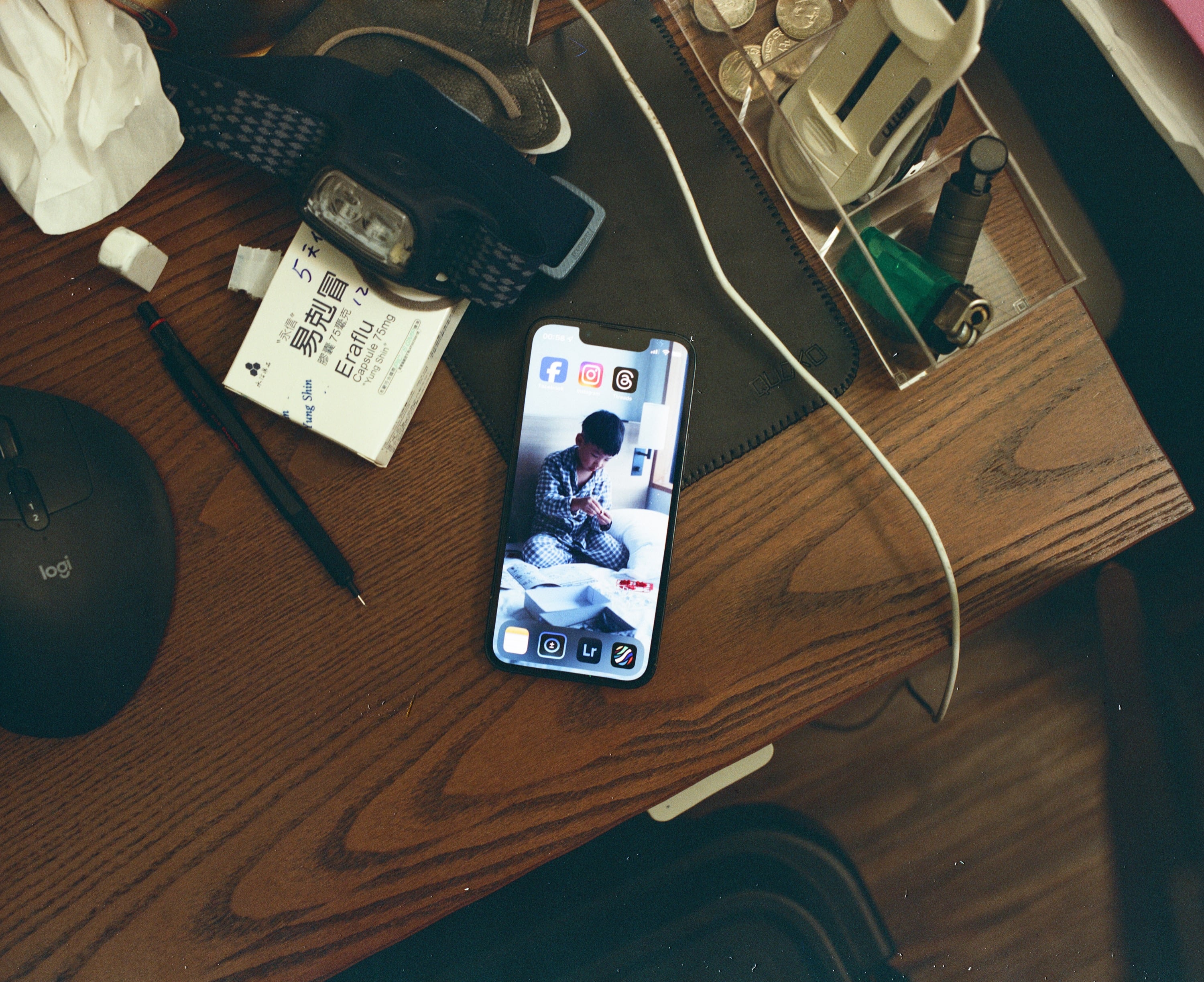 這陣子的手機桌面,畫面左邊是同一時間在吃的流感藥物。
