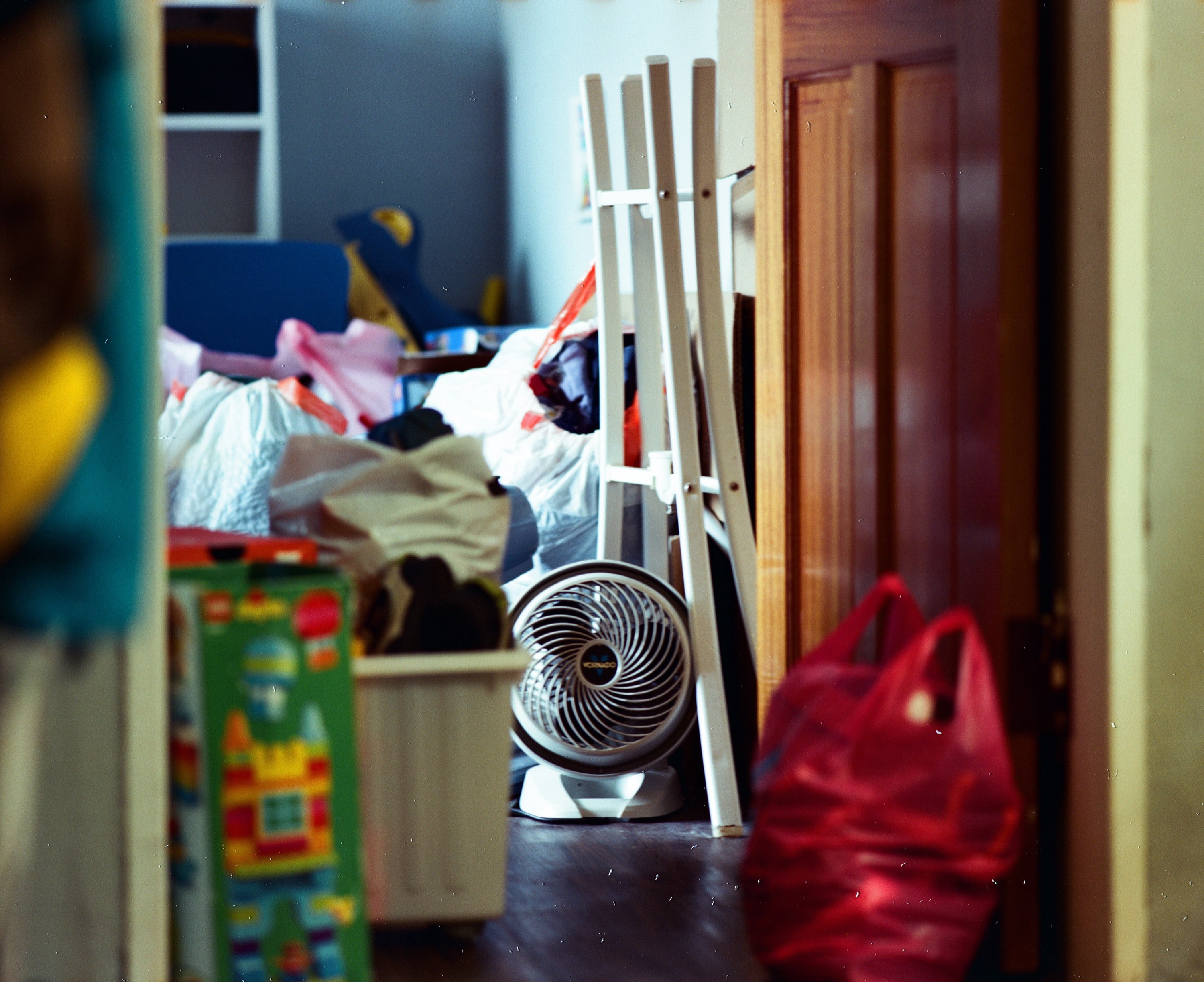 手上這顆 Pentax 67 200mm f4 真的堪稱神鏡,最近對焦距離達 1.5 公尺,而前期版 Pentax 6x7 200mm f4 Takumar 只有 2.5 公尺,此外,Pentax 67 165mm f2.8 的最近對焦距離不過也是 1.6 公尺而已,因此,這顆 200mm f4 後期版真的很好用,是個人認為最值得入手的 Pentax 6x7 系統的望遠鏡頭。這張照片,是在我家裡室內拍攝家裡倉庫的凌亂樣貌。