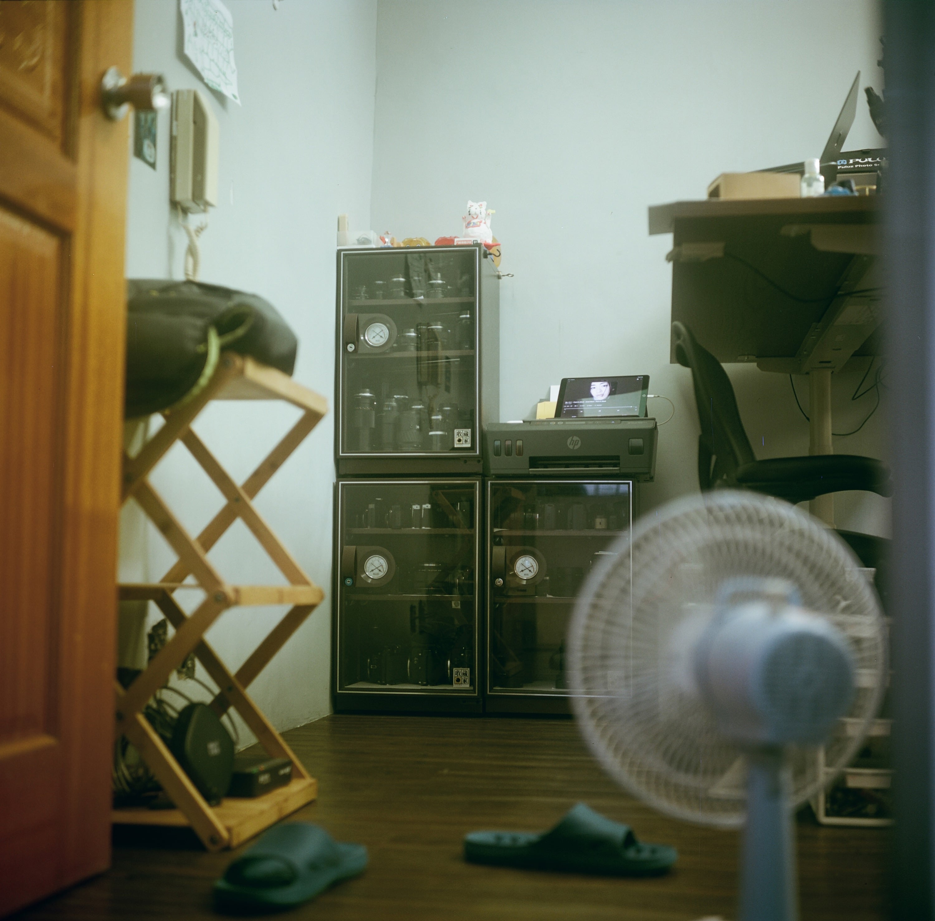 第三張,對焦在畫面最遠的位置,防潮箱。
