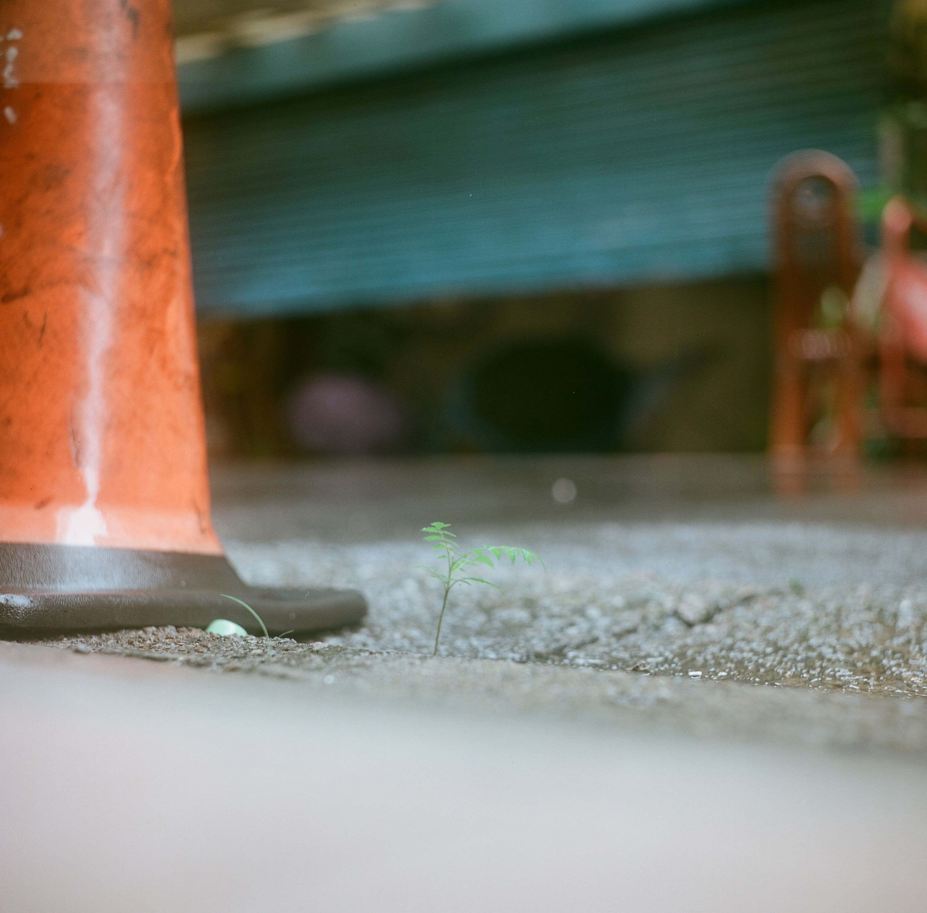 連日下雨後,從水溝蓋上方冒出來的嫩芽,這張是 Olympus Flex B II 的最近對焦距離了。
