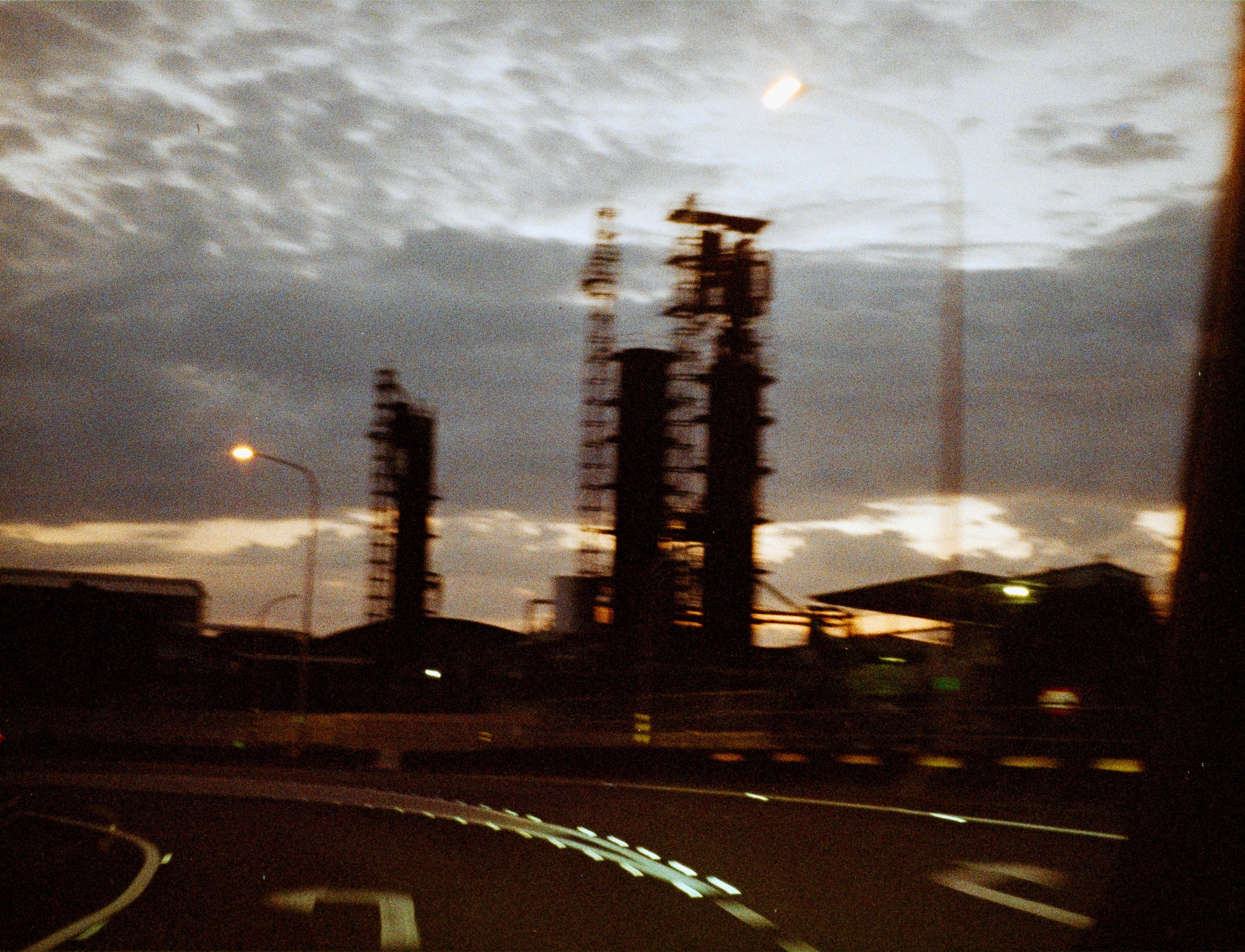 黃昏之際,繼續啟程前往台中市區。由於 Pentax Auto 110 屬於全自動曝光的相機,有時候光線不足的時候,相機會搭配需要腳架的秒數,這時候如果沒注意,按下快門,100% 手震。解決辦法是用欠曝來換快門秒數,方法是按著閃燈接點拍攝,這時候相機的快門會固定為 1/30。