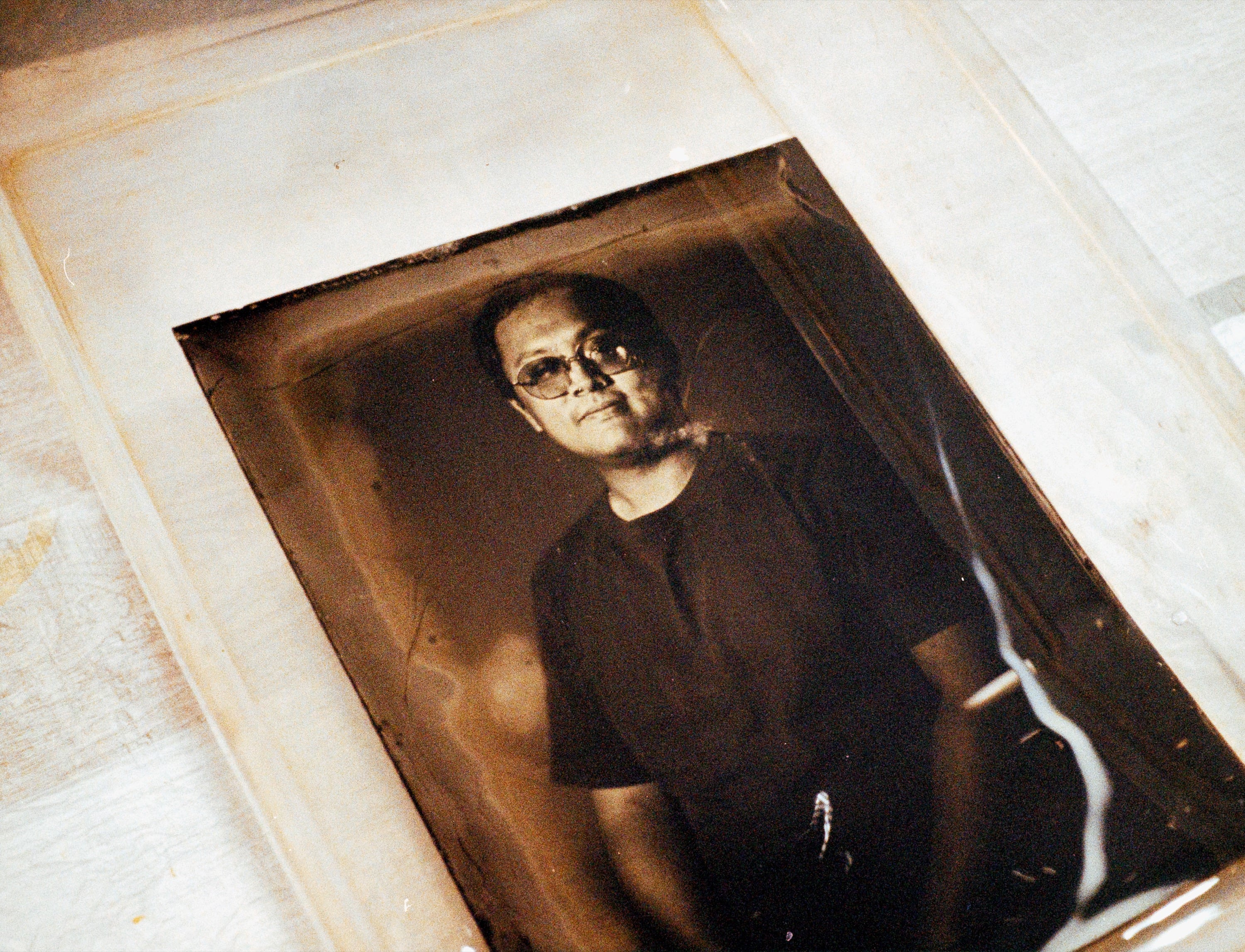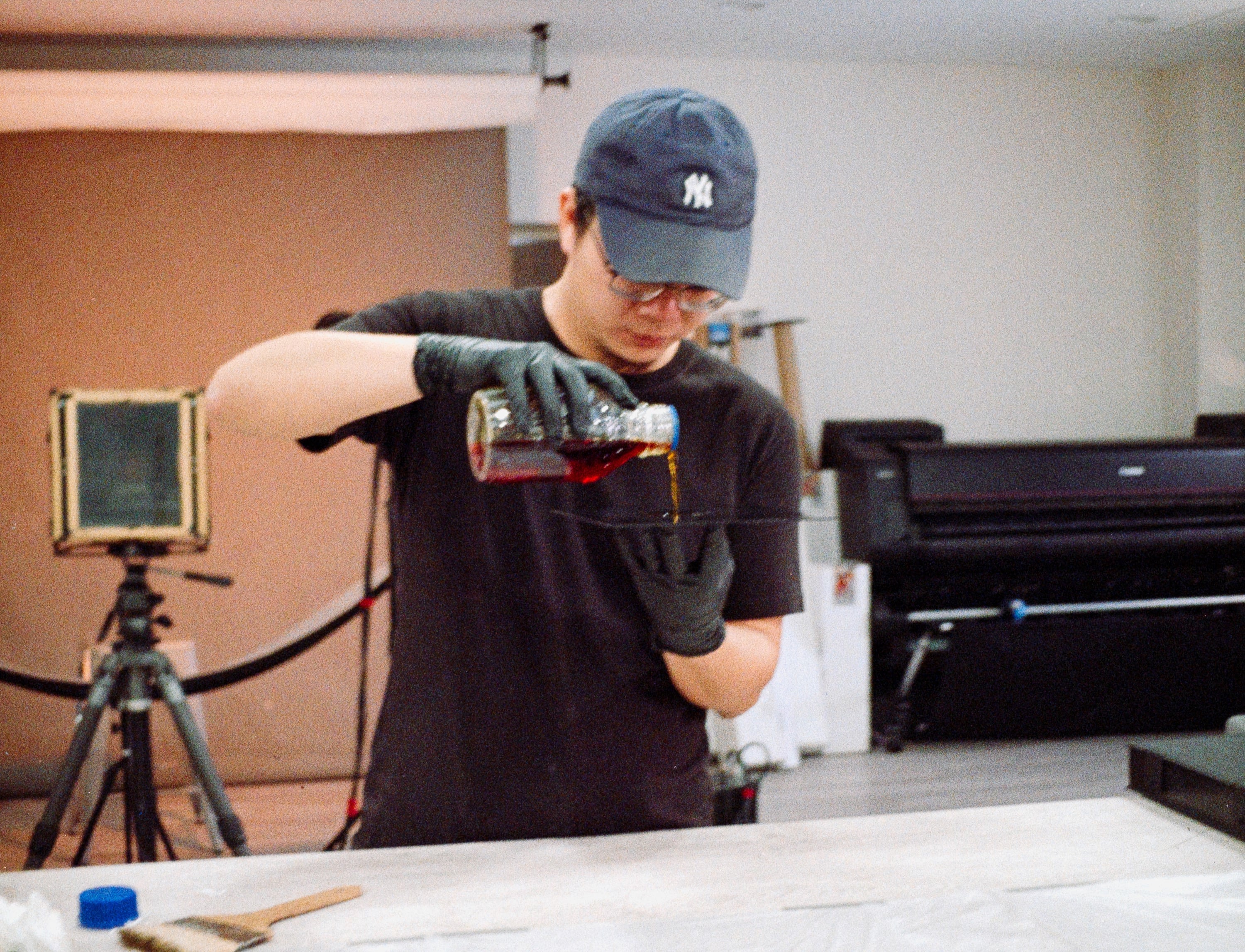 本次課程的另一位同學就是泰宏,今天課程就我們兩人而已,我們將會在本次課程中輪流製作火棉膠濕版,輪流拍攝彼此。