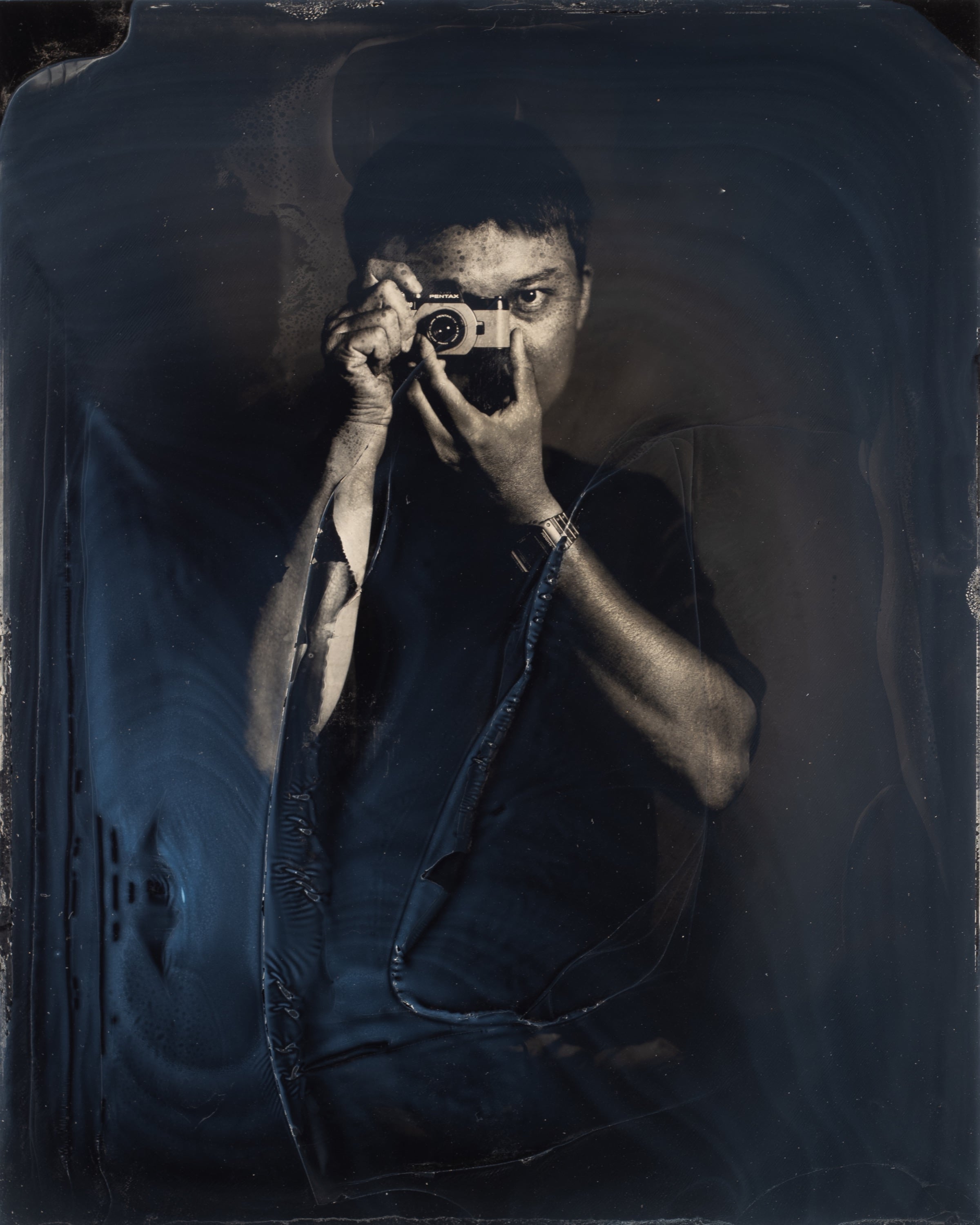 以上就是這卷 Pentax Auto 110 Safari 搭配 Lomography Tiger 200 底片的內容,謝謝收看!最後附上當天火棉膠攝影我被泰宏拍攝的成品,隨身攜帶的 Pentax Auto 110 Safari,就一起入鏡了。