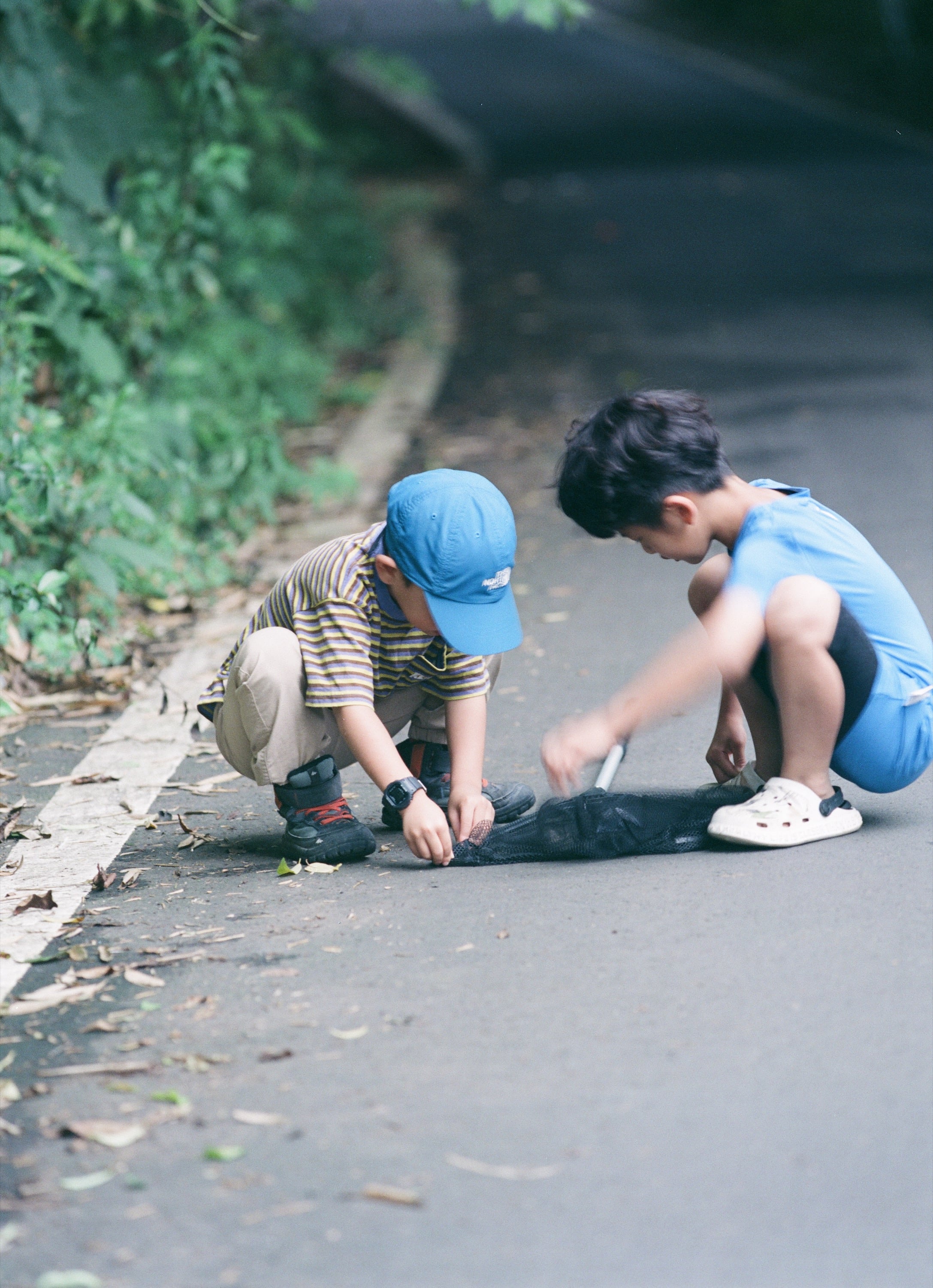 早上帶兒子走出營區去找昆蟲,我們這次帶了個大網子。這時候陽光已逐漸露臉,非常喜歡這卷富士對日光的表現,有別於柯達,富士呈現出特別純淨且舒適的顏色。