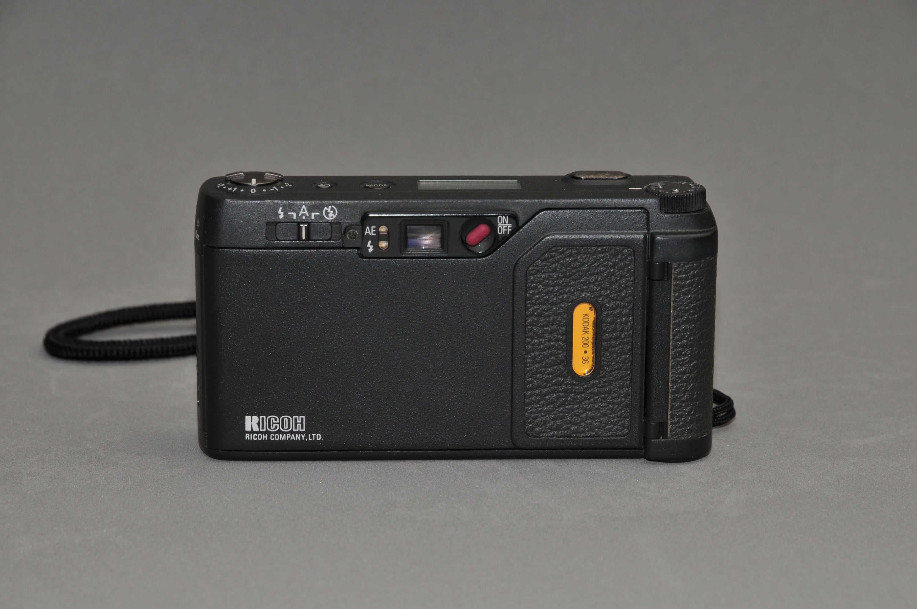↑Ricoh GR1 的閃光燈開關設計,在機背左上角(圖片版權:David Donnadieu)