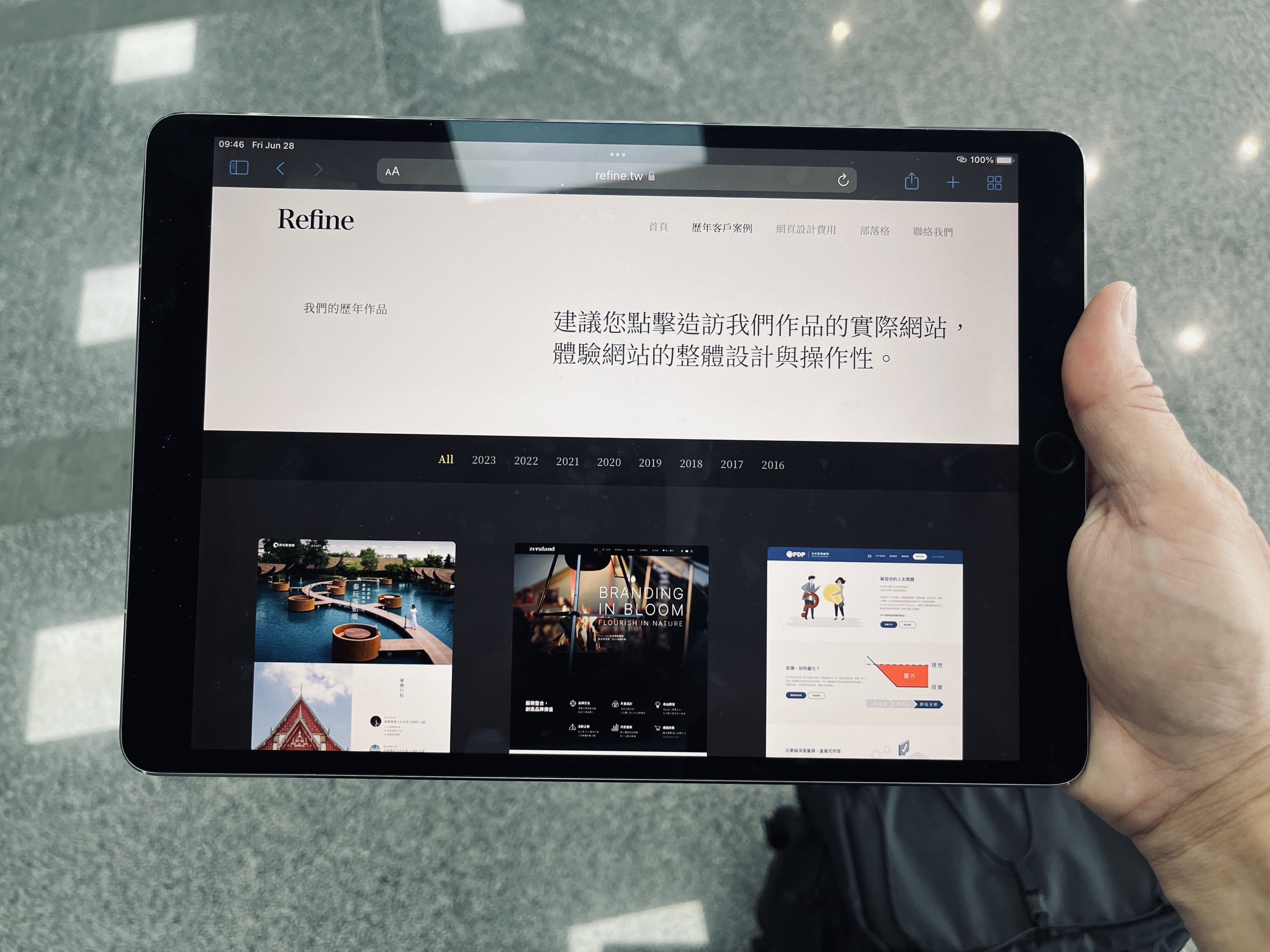 ↑向客戶介紹自己時,我會用 iPad 展示一下自己工作室的網頁