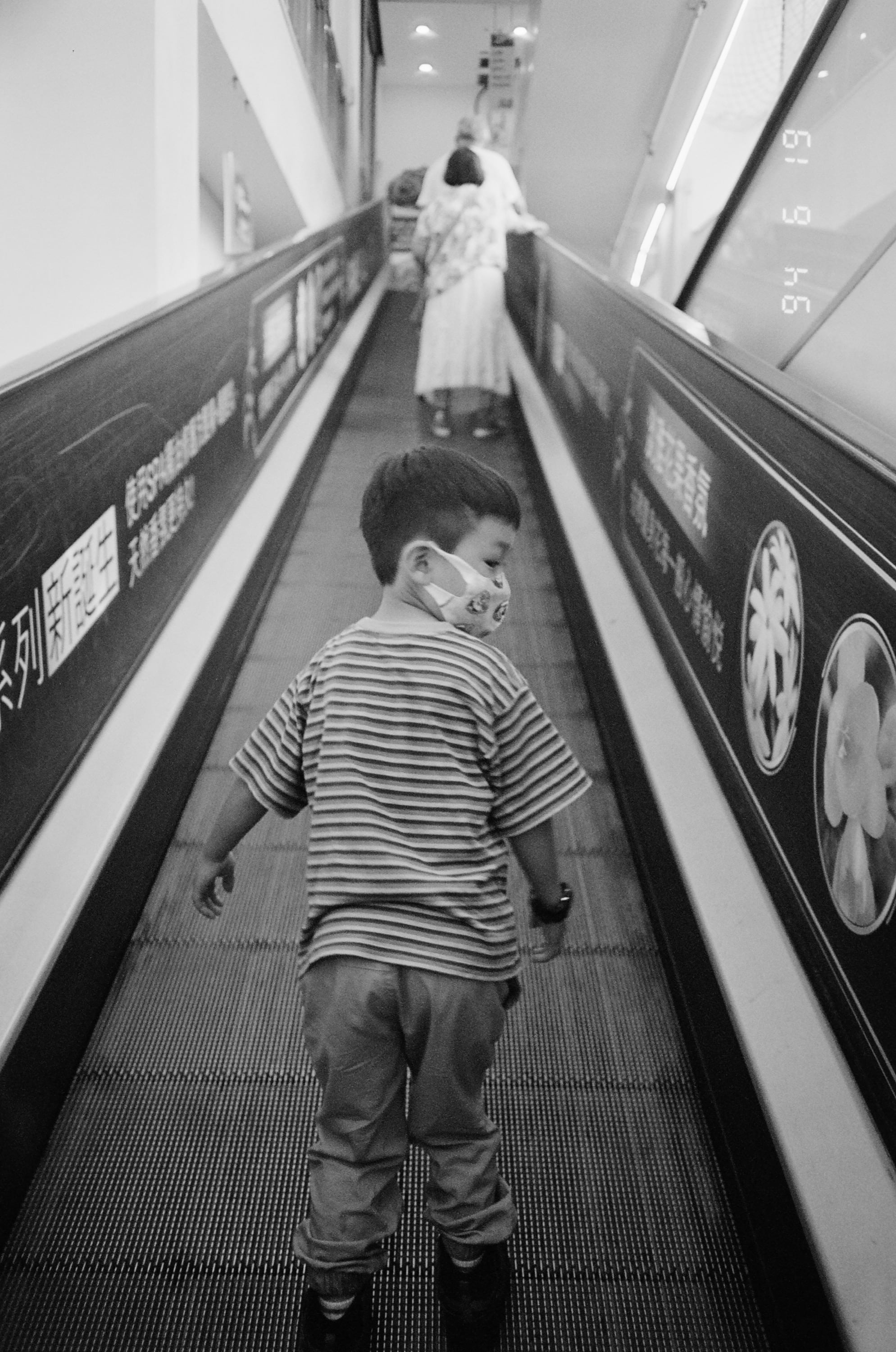 很喜歡的一張照片,而且很幸運地獲得了眼神光。拍攝這張照片時,我原本只是想要拍攝兒子搭乘電扶梯時的後腦勺,因為想看 Nikon AD3 的散景表現,結果兒子突然轉頭,我按下快門,竟然有準焦!讚。
