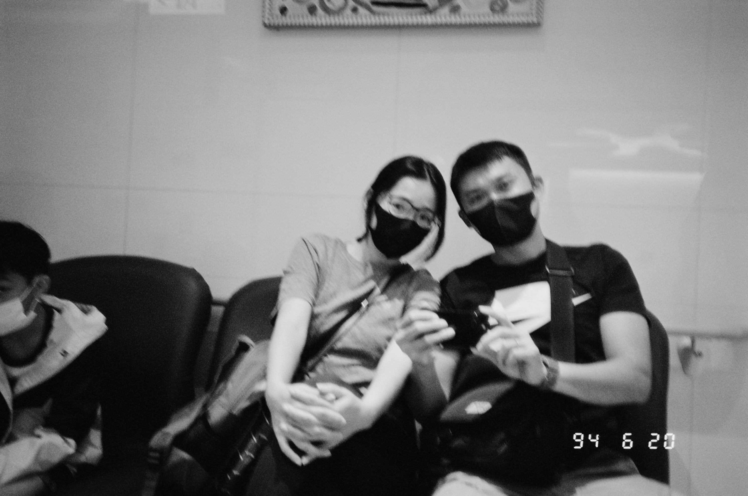 請兒子幫我和太太拍個照,由於是在公共場所,因此我提醒兒子要關閃光燈,不過 Nikon AD3 關閉閃光燈的姿勢同時也讓兒子的拍攝畫面手震了。
