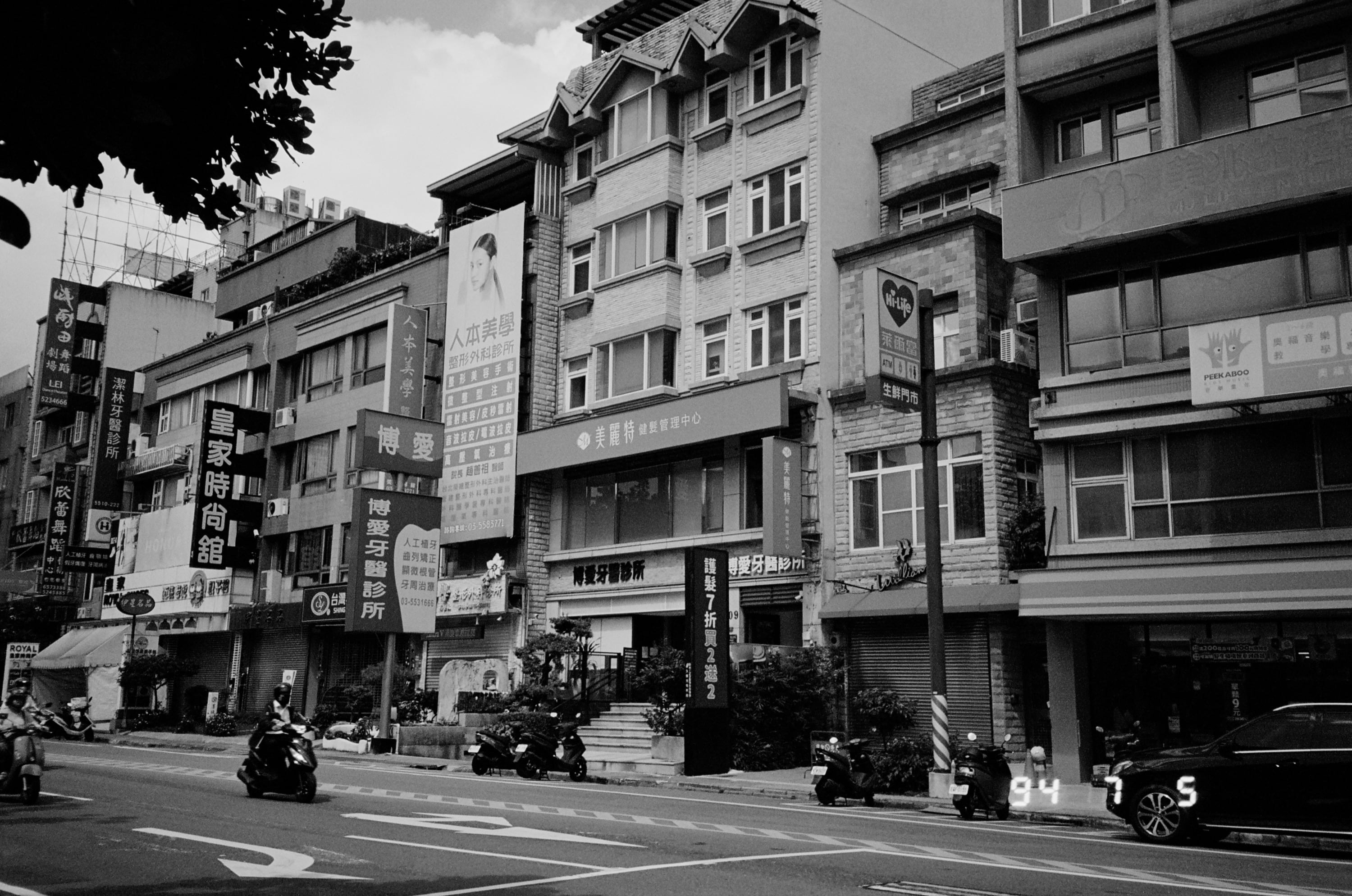 這是這卷底片的第一張照片,但我根據我的拍攝筆記,這張照片的快門是不小心按到的。那天是星期二,中午我正騎著機車從家裡出發,要去我太太公司找她一起吃中飯。雖然是不小心按下的照片,但我卻對 Ricoh FF-9SD 有了超級好的第一印象,因為這畫面實在是太銳利了,光影與細節都好,特別是那柏油路,一顆一顆的粗糙質感。