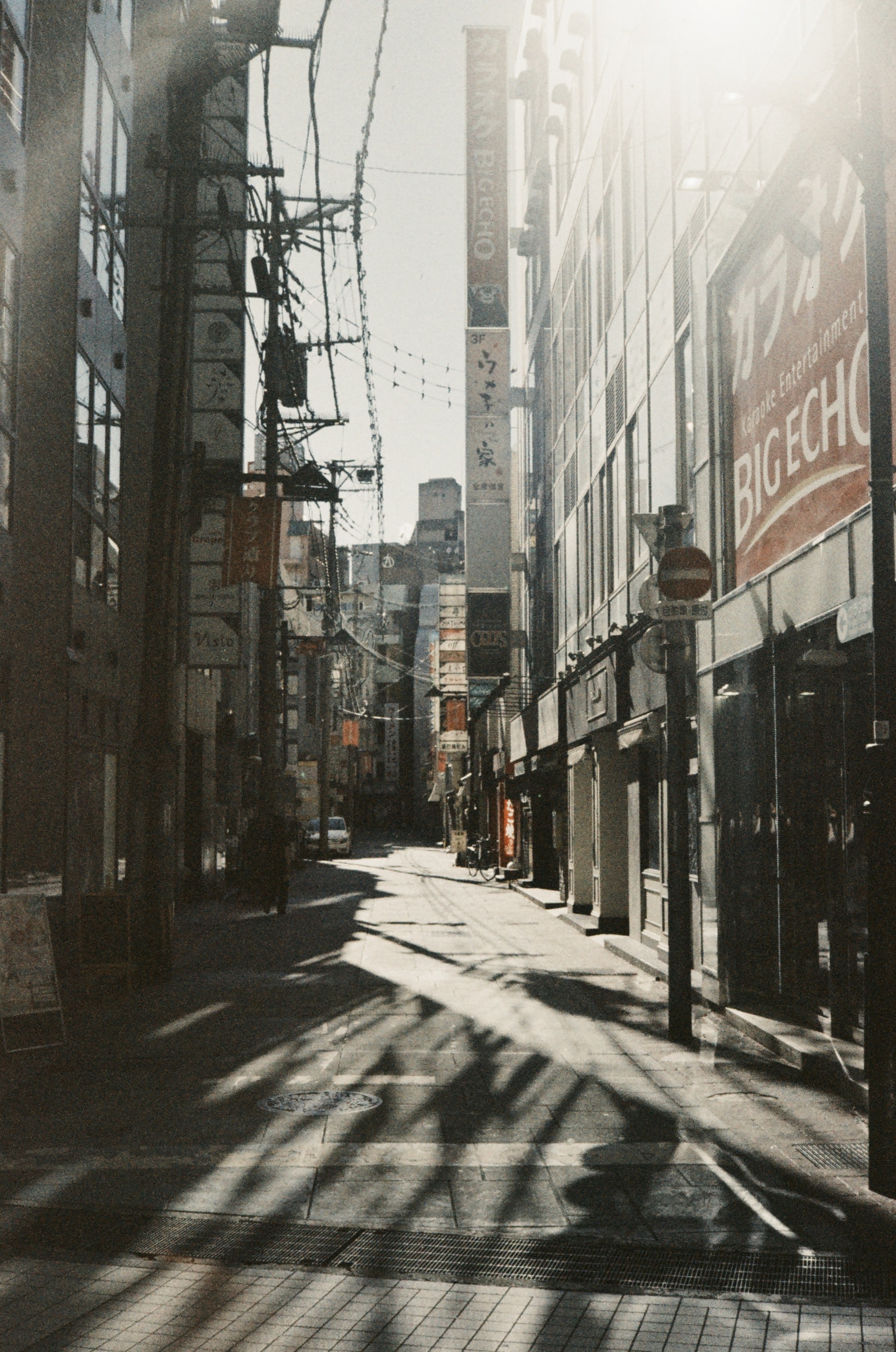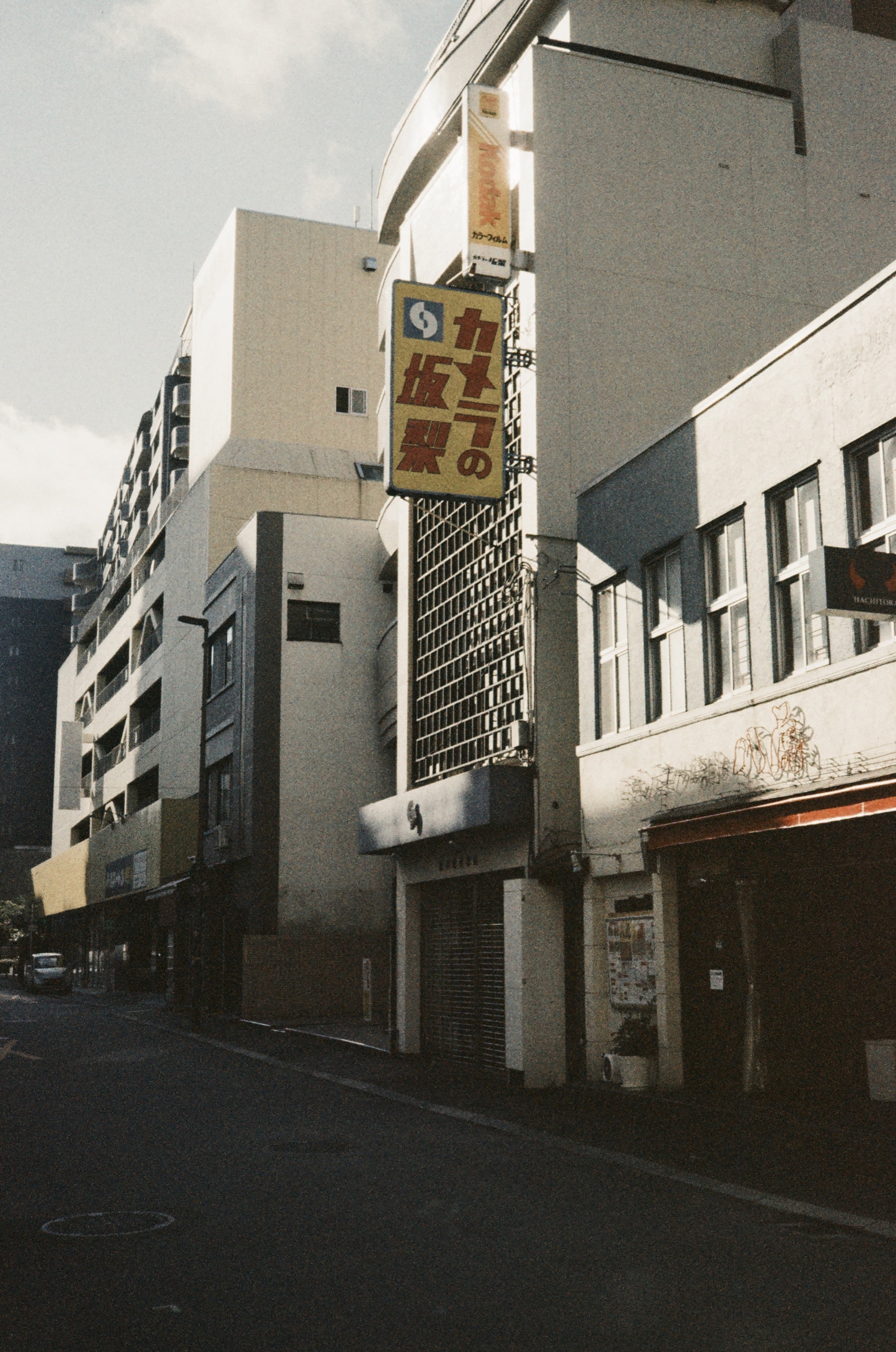 飯店樓下,去熊本的月份是 7 月,氣溫跟台灣一樣熱,透過 ORWO NC500 底片的顏色加持,完美演繹當時的氣溫。
