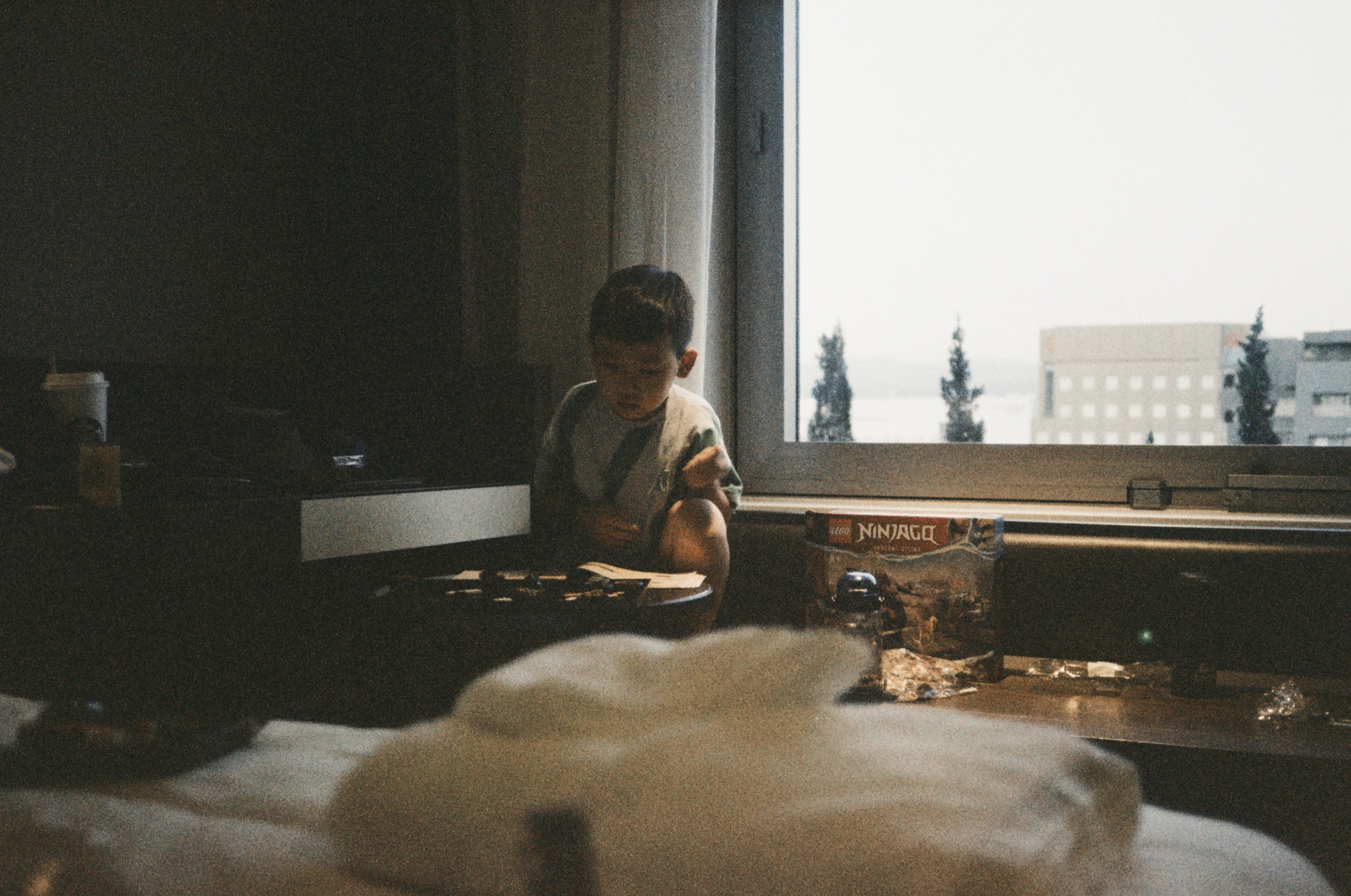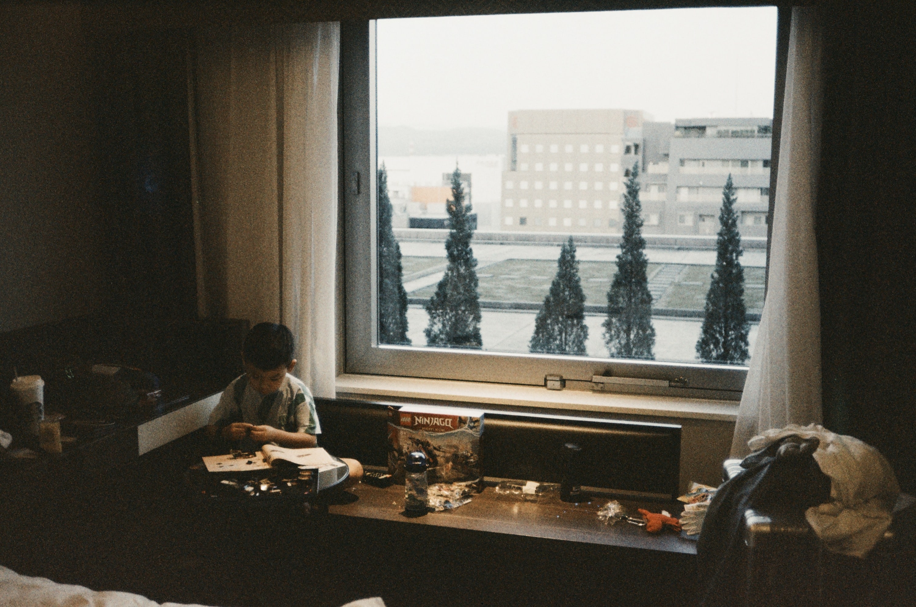 飯店裡,我在一旁休息看電視滑手機,兒子在組樂高,太太出去自己逛街。大家都有時間做自己想做的事,很讚。