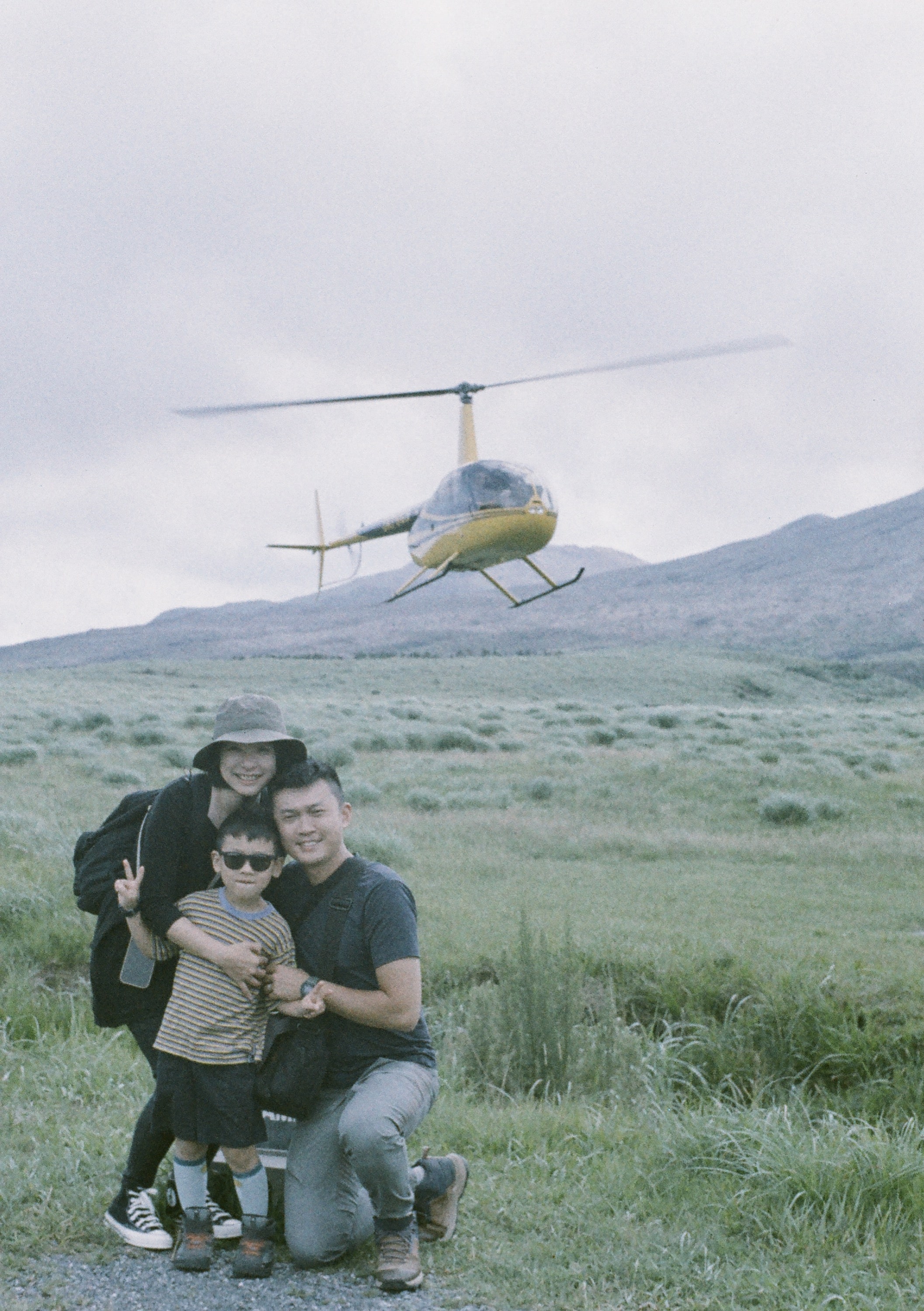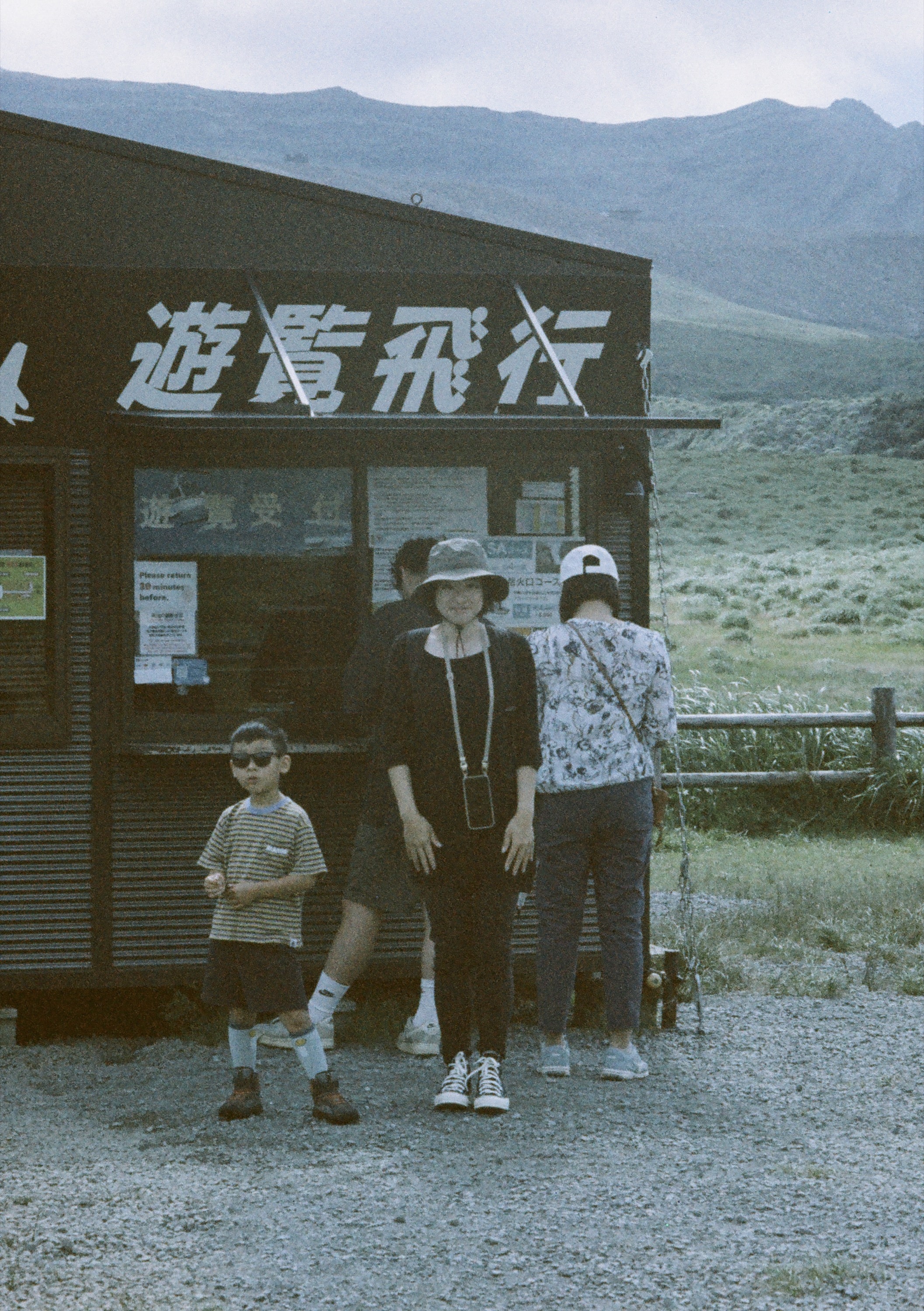 這張是工作人員幫我們拍的。阿蘇火山直升機這邊有規劃一個拍照點,可以讓上直升機的遊客,在搭乘前都可以跟直升機合影留念,因為飛航安全的緣故,因此現場是禁止使用自拍棒的,所以工作人員都會協助幫遊客拍攝。當時,我將手中的 Pen-F 交給工作人員,他一位年紀比我大的大叔,我記憶猶新,當我將相機遞給他之後,我向他示意「只要按下快門就好」,因為我已經先抓距離對好焦了,而他接過我手上的相機後,用一個非常驚訝的表情說「フィルム!?」(日文「底片」的意思),我點著頭,心想,不愧是日本人啊!果然懂相機!這就是你們的國產相機啊!