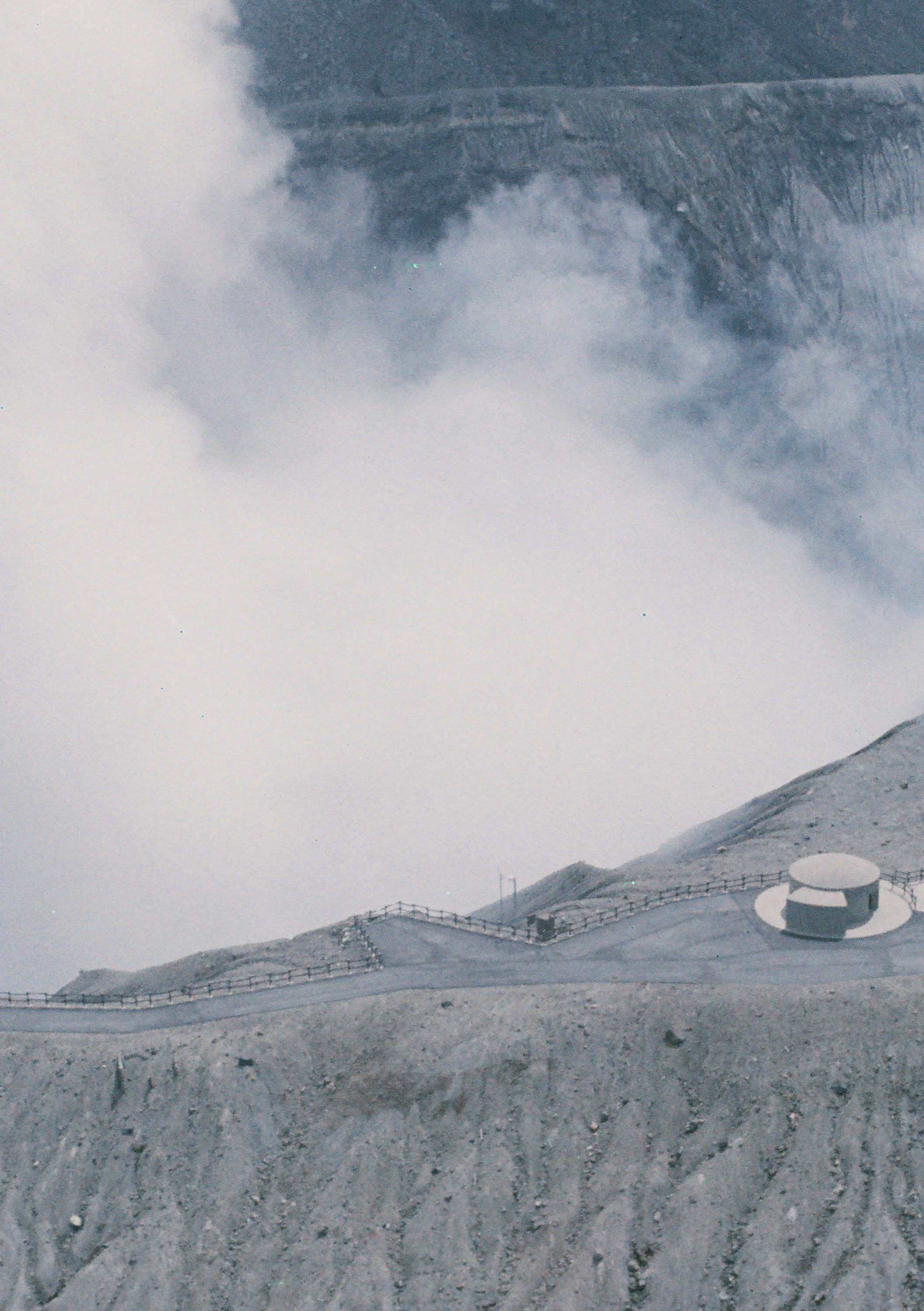搭乘直升機的地方,就在阿蘇火山口附近,只有低矮的草,沒有什麼樹木。