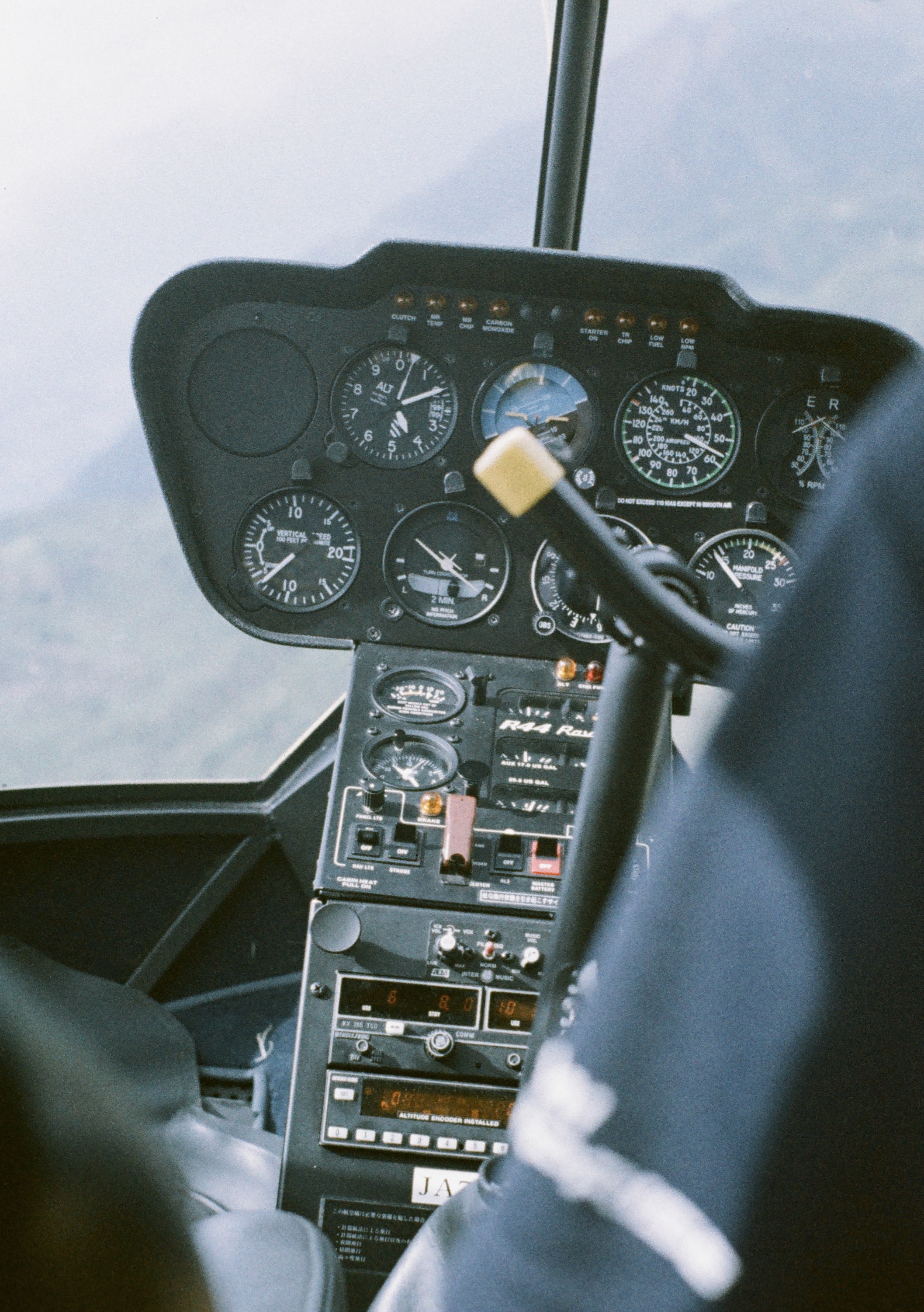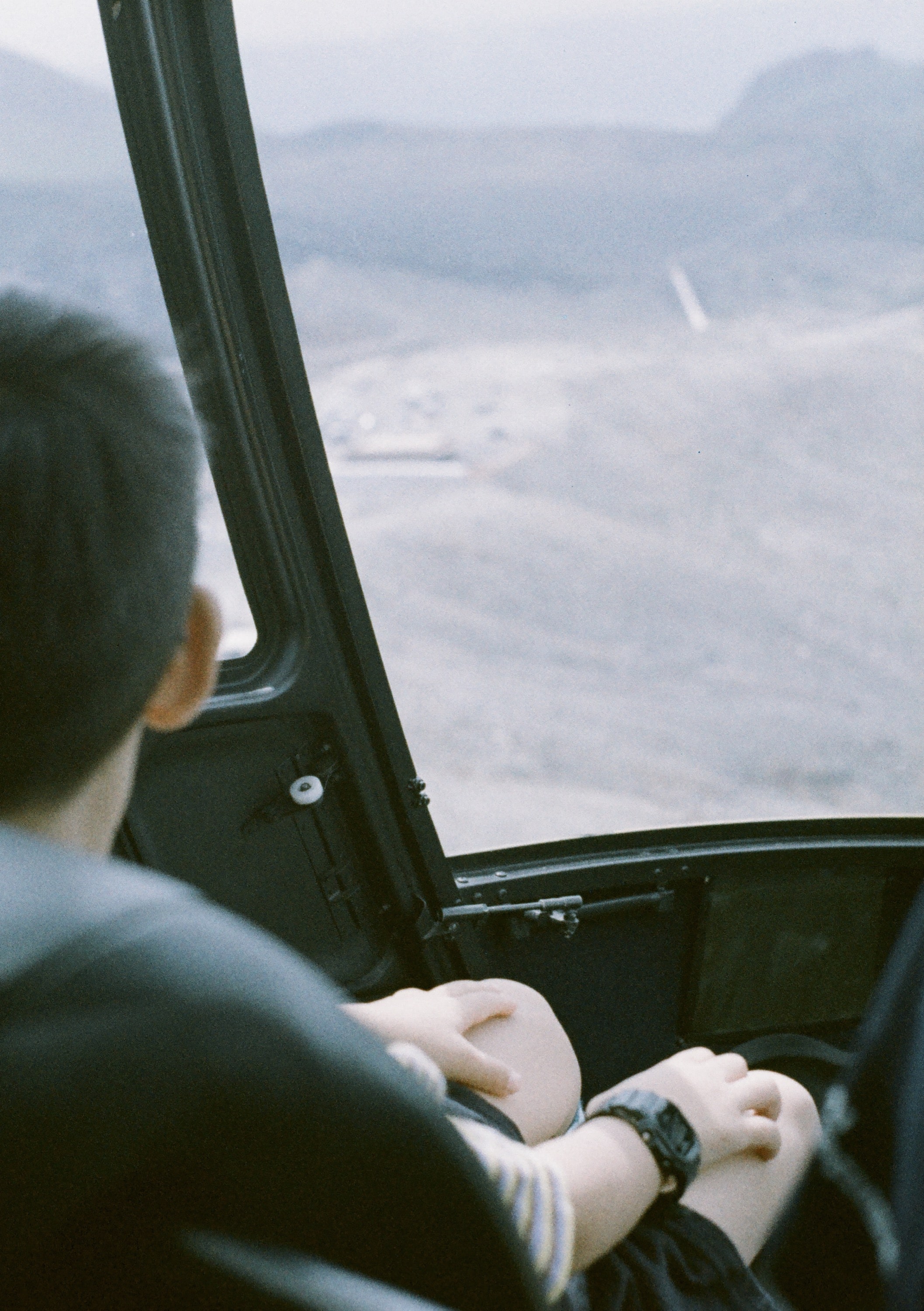 直升機上共有三個乘客座位,一個副駕駛座,兩個後座。坐副駕駛座的視野最好,就給兒子坐了。剛上直升機時,我們提醒兒子絕對不可以動任何直升機上的東西,包含開關、儀表之類的,結果兒子全程正襟危坐。