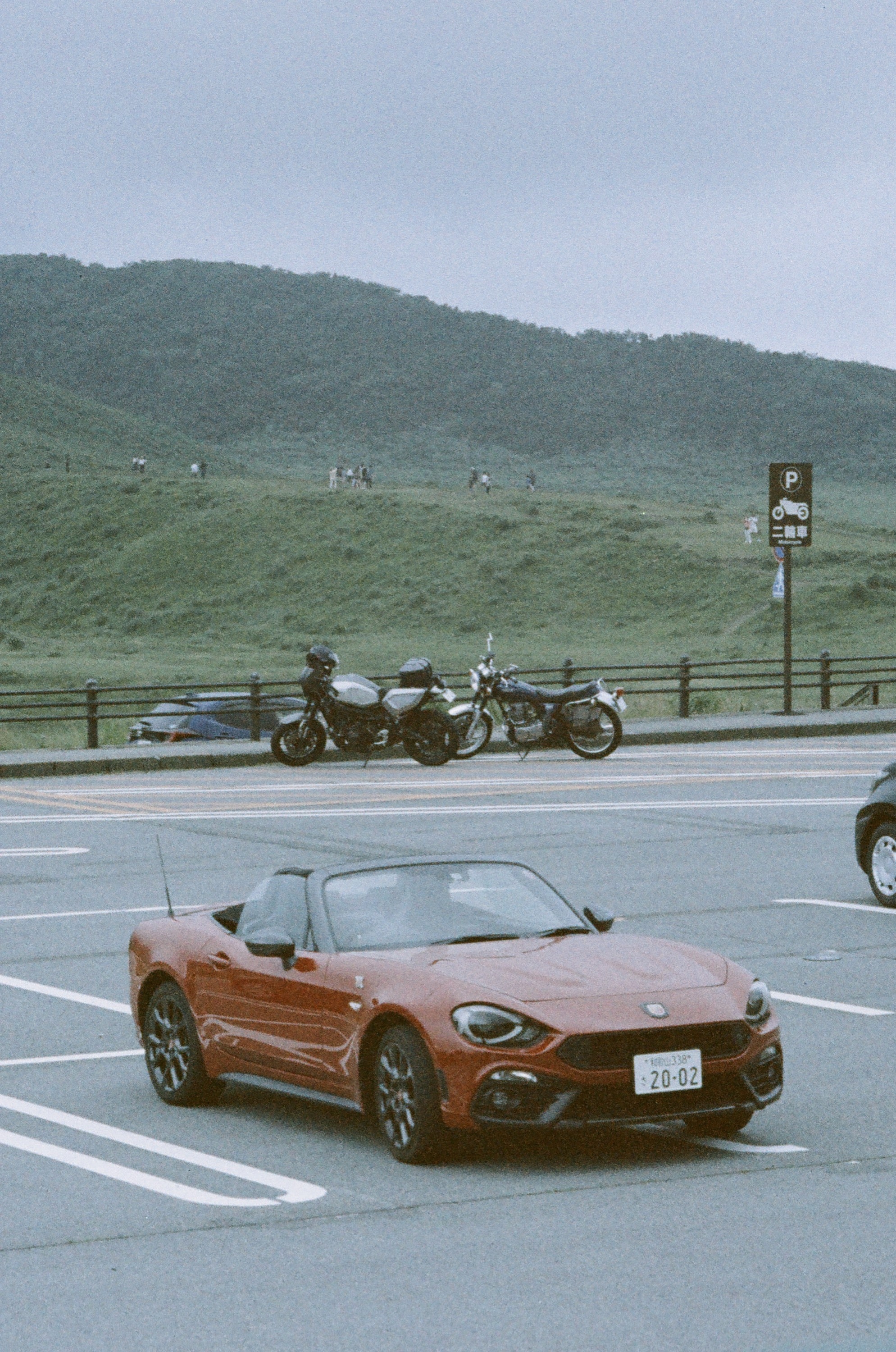 看到一台浪漫的敞篷車。阿蘇這裡外國的觀光客仍不算多,許多遊客都是日本人。