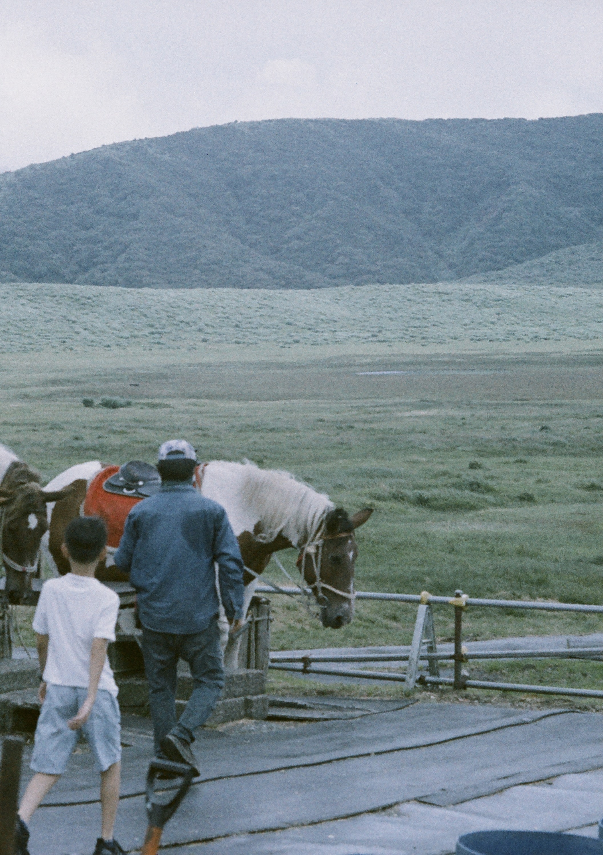 這卷底片是我們在熊本的第三天行程,此時我們已經在阿蘇火山上了,行程的重點分為兩個,上午坐直升機和騎馬,下午則是前往露營區,這卷底片則是在上午就拍完了,因此只有到騎馬的部分。