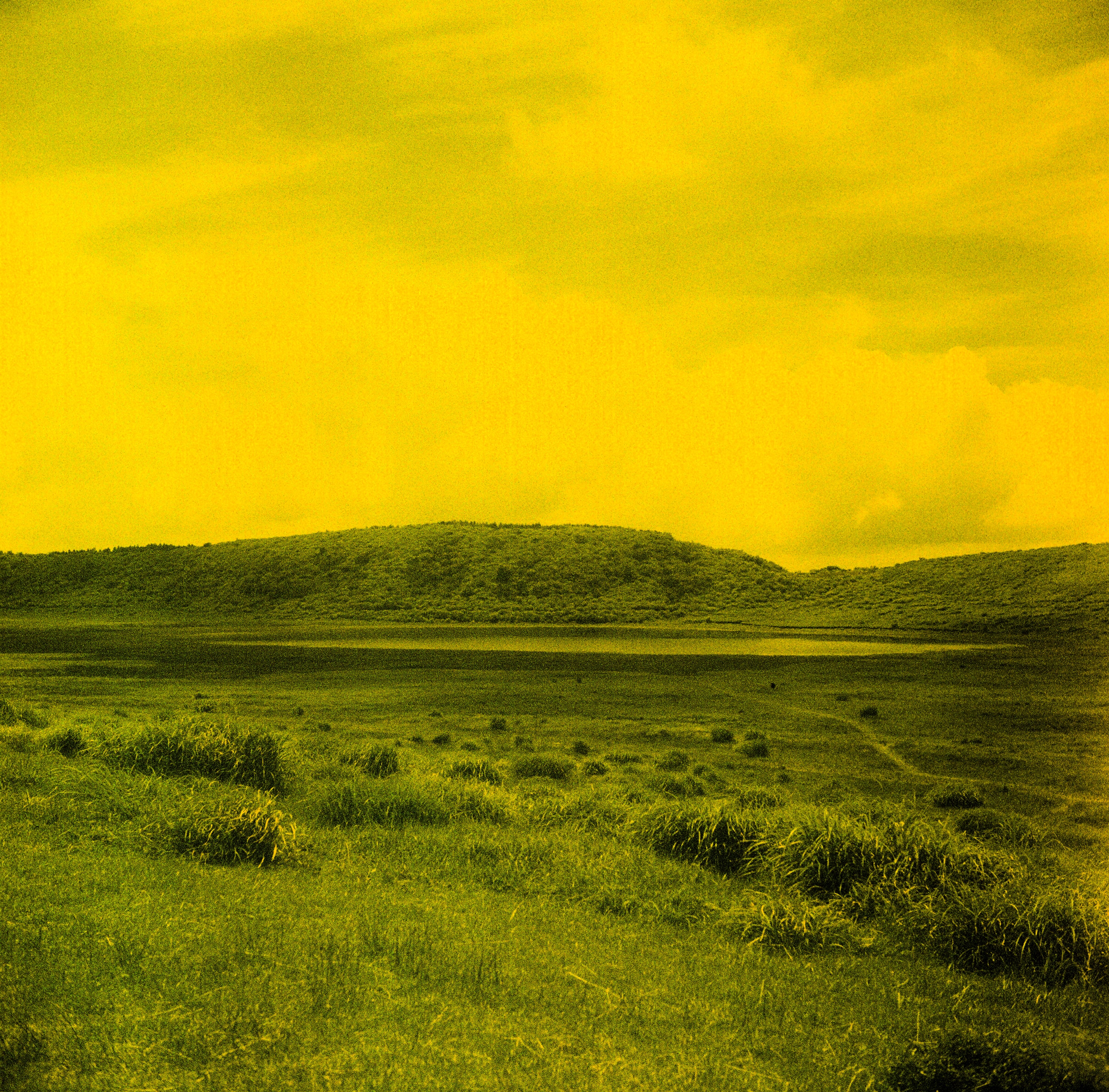 草千里上的一片湖。我和兒子原本要走過去看看有沒有什麼水中生物,結果時間不夠,肚子好餓,但還沒吃午餐呢!