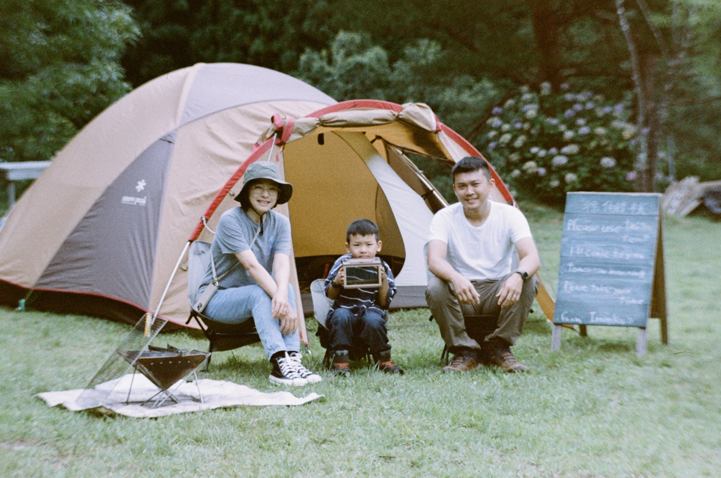 上了腳架自拍,因為每次家庭合照都是難得的,你可能會覺得這張照片的周圍影像怎麼怪怪的,我想應該是鏡片有問題,還需要再找時間送修看看。