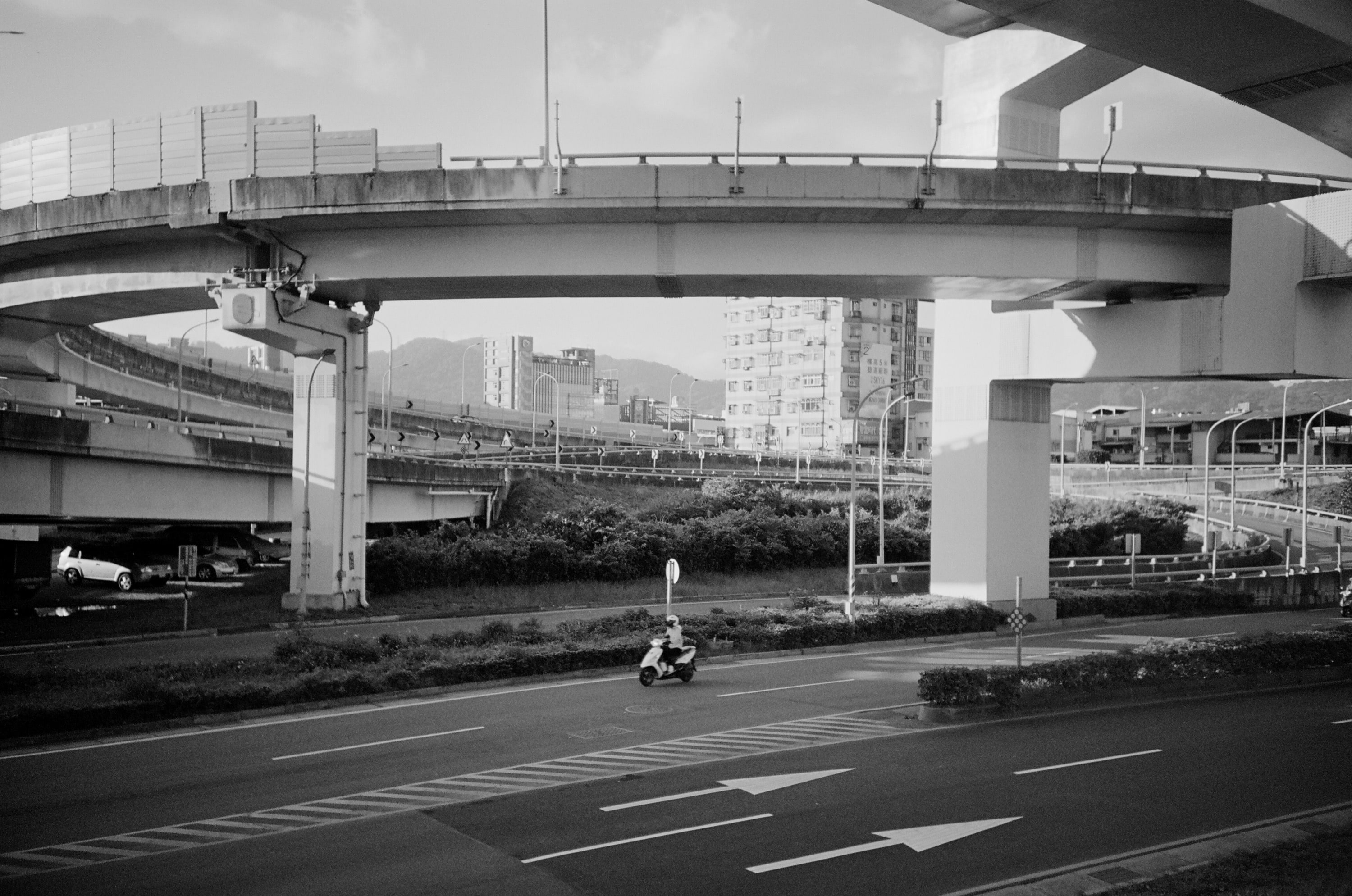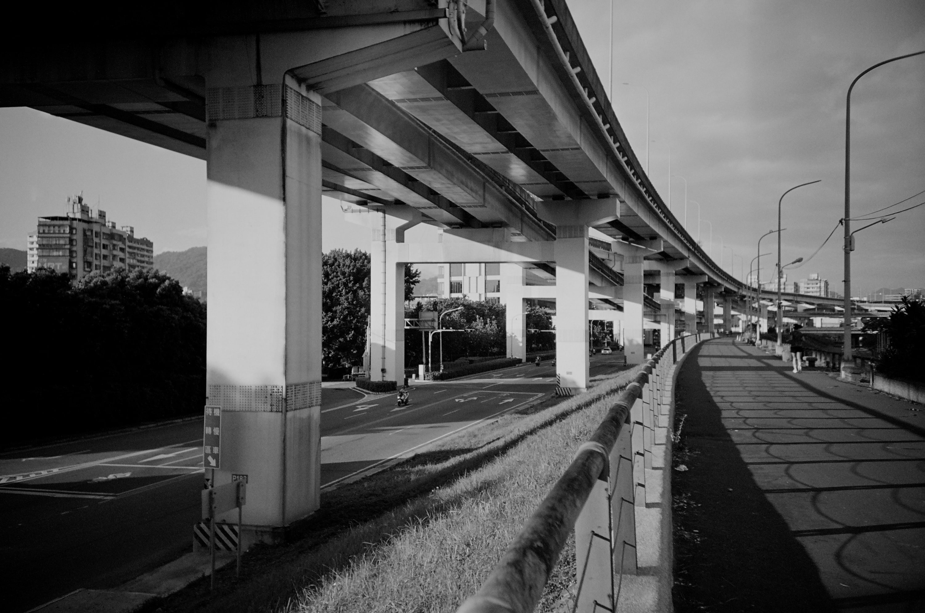 我發自內心地覺得估焦相機非常適合拍「無限遠對焦的黑白底片」,這點跟估焦相機的天生優勢有關,因為估焦相機除了「無限遠」之外的各個區間焦段,都是有失敗機率存在的,一般來說距離愈近,因為相機的景深會愈淺,拍出失焦的失敗照片機率就會愈大。因此,非常少估焦相機會特別去強化它的近拍功能。與其做出使用者容易失敗的功能,還不如將節省下來的鏡頭成本,換成更小的體積、更容易負擔的售價。