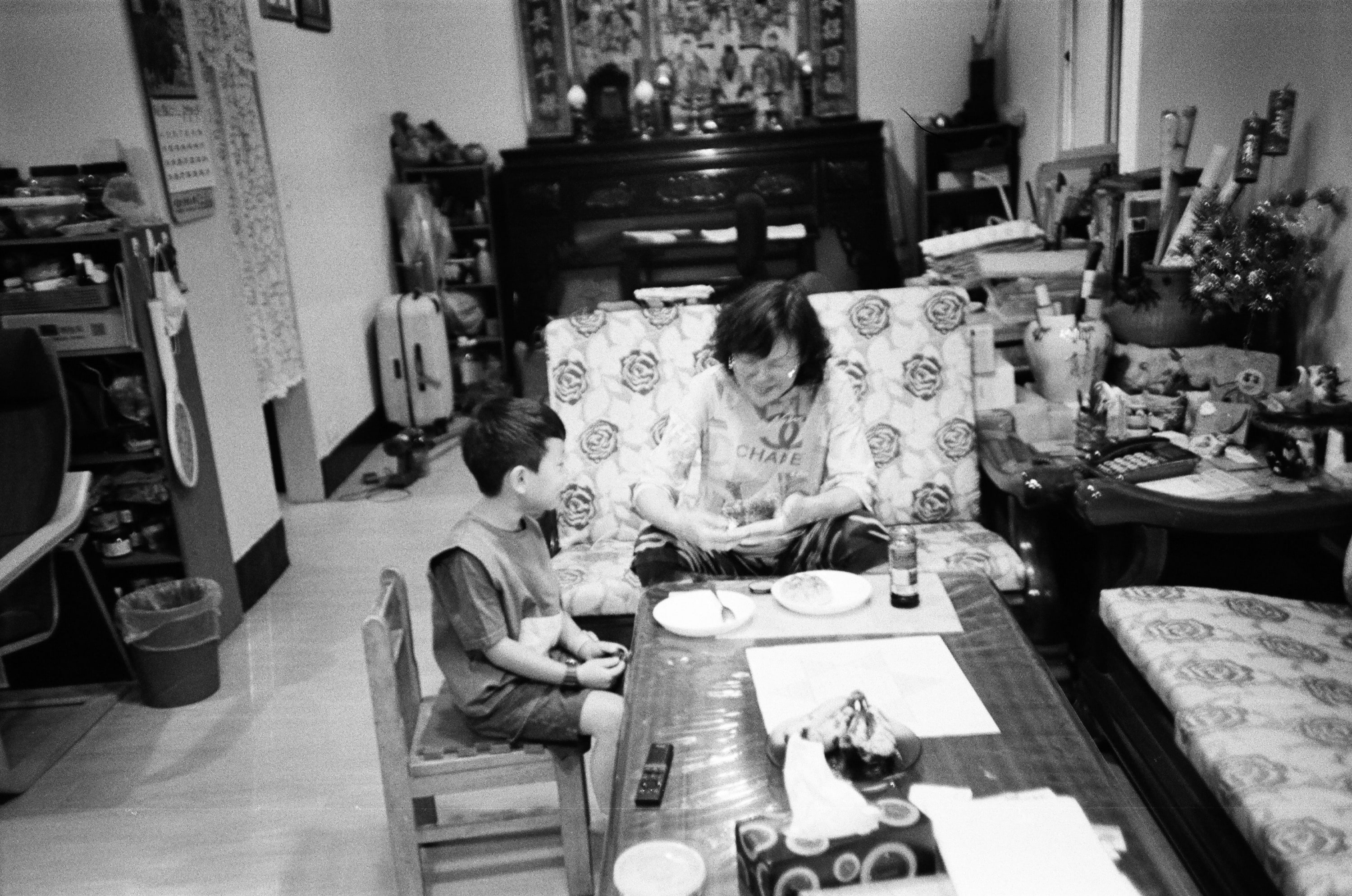 我媽在台灣的這段時間,兒子都是由我媽接送上下課,這張照片是某天他們正準備出門,在家裡吃早餐的畫面。對我來說,所有日常的照片,都比那些刻意去擺拍的照片來得珍貴。
