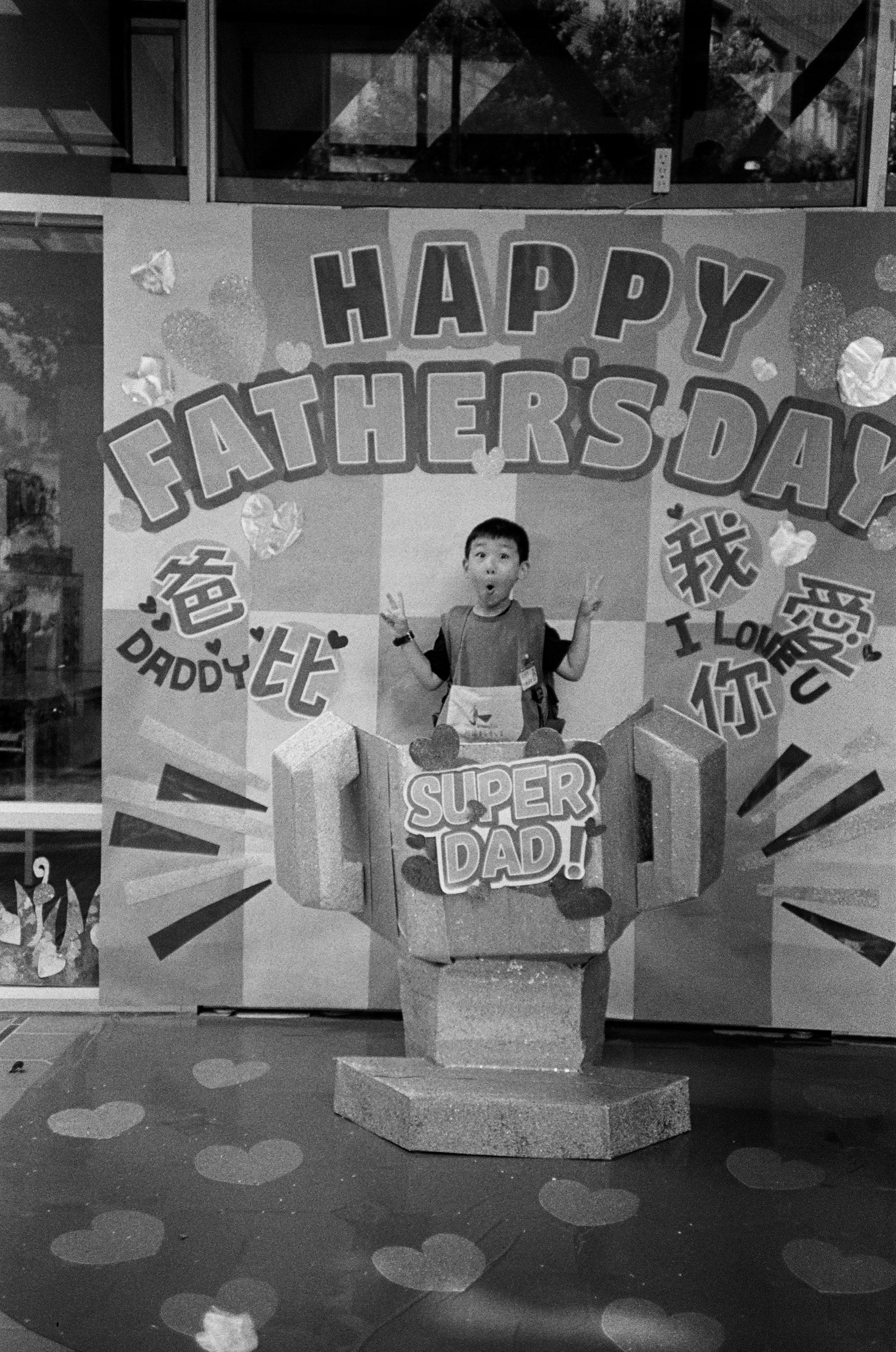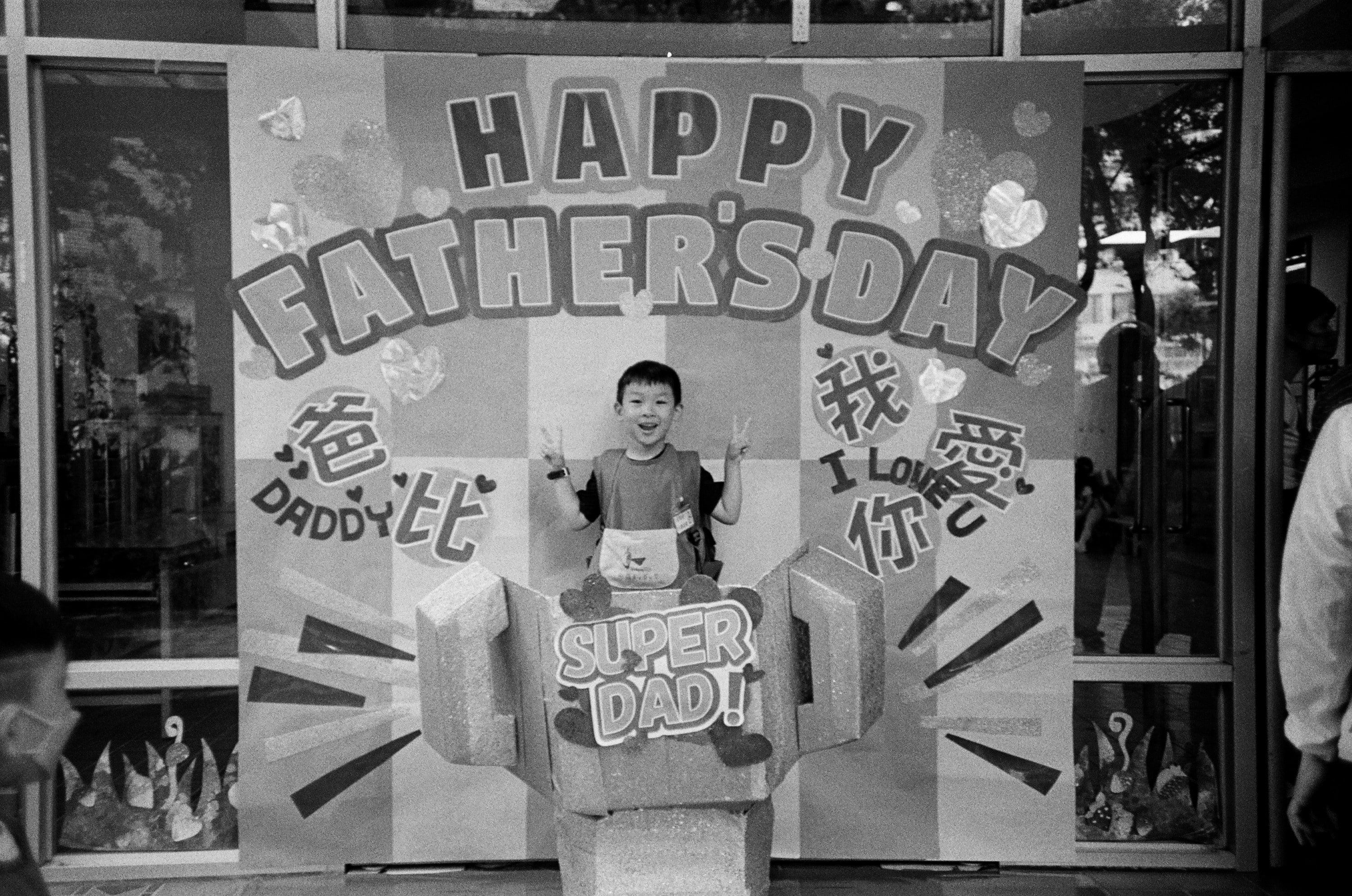 有天去接兒子下課時,看到兒子學校有父親節的佈置,兒子主動說要拍照,我就快速拍了一張。