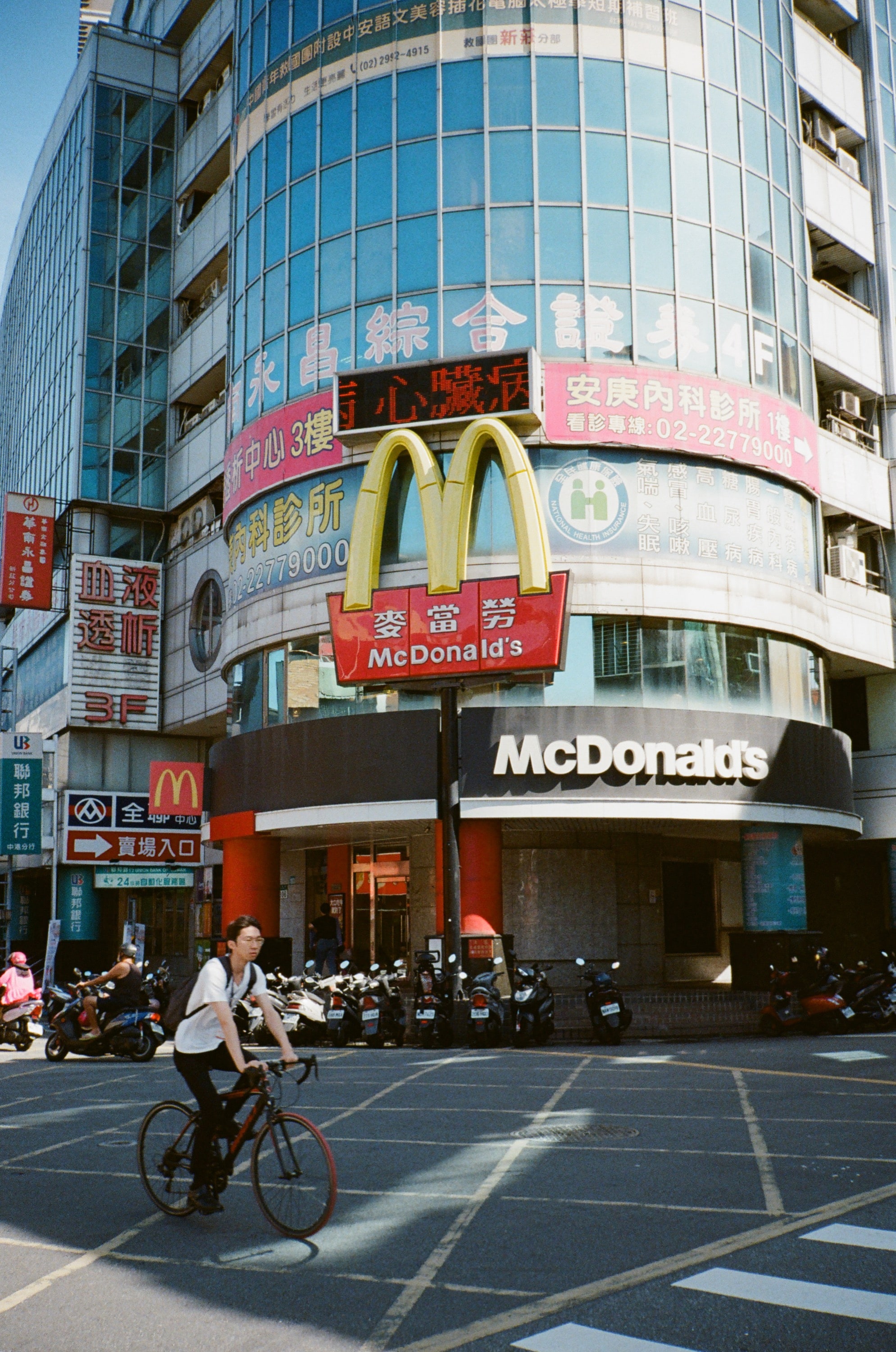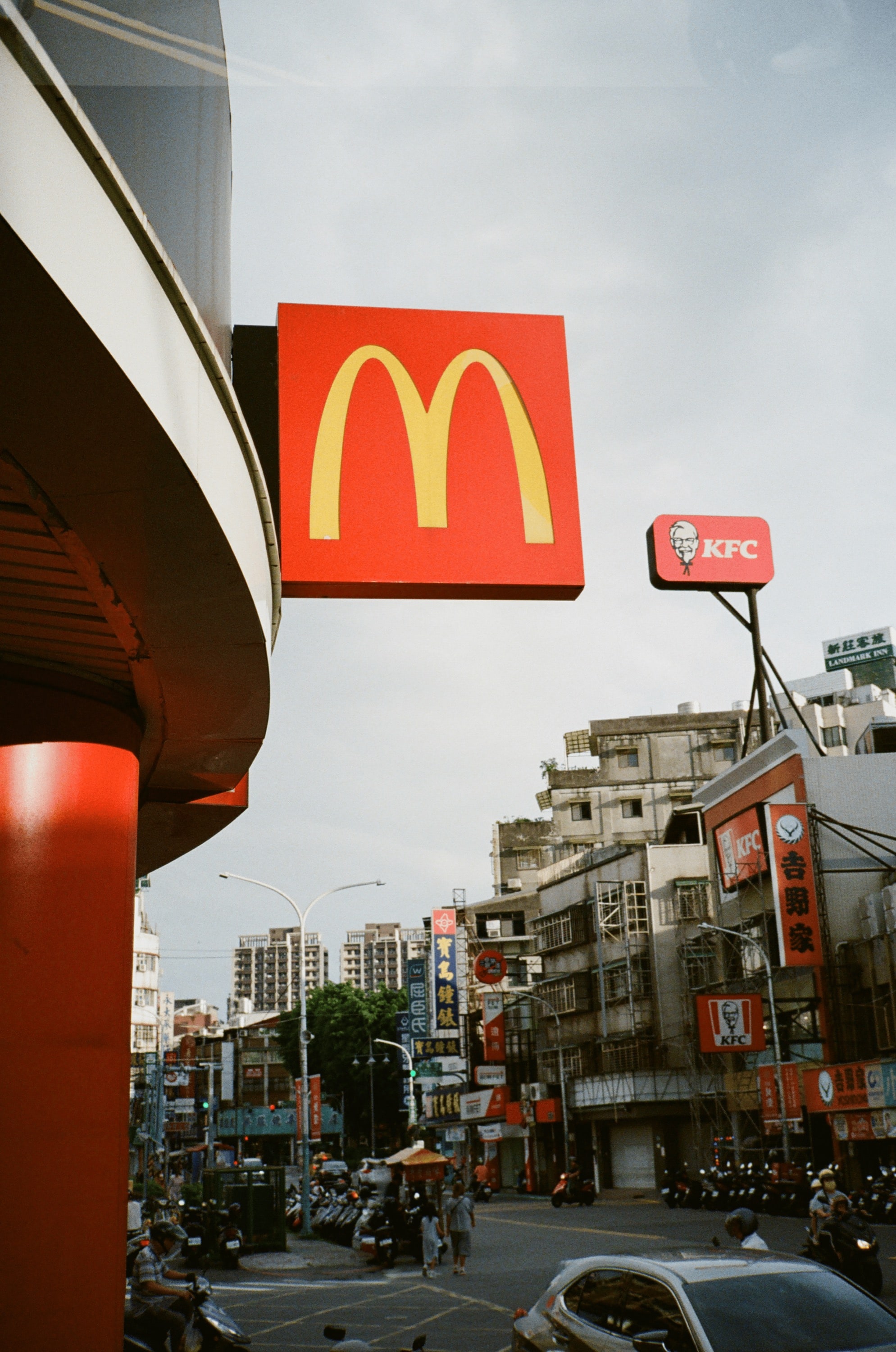疊片了,在照片上方出現,看到時心都涼了。不過那個麥當勞招牌的色彩很讚,至於是不是沖掃設定的差異,我就不仔細探究了。