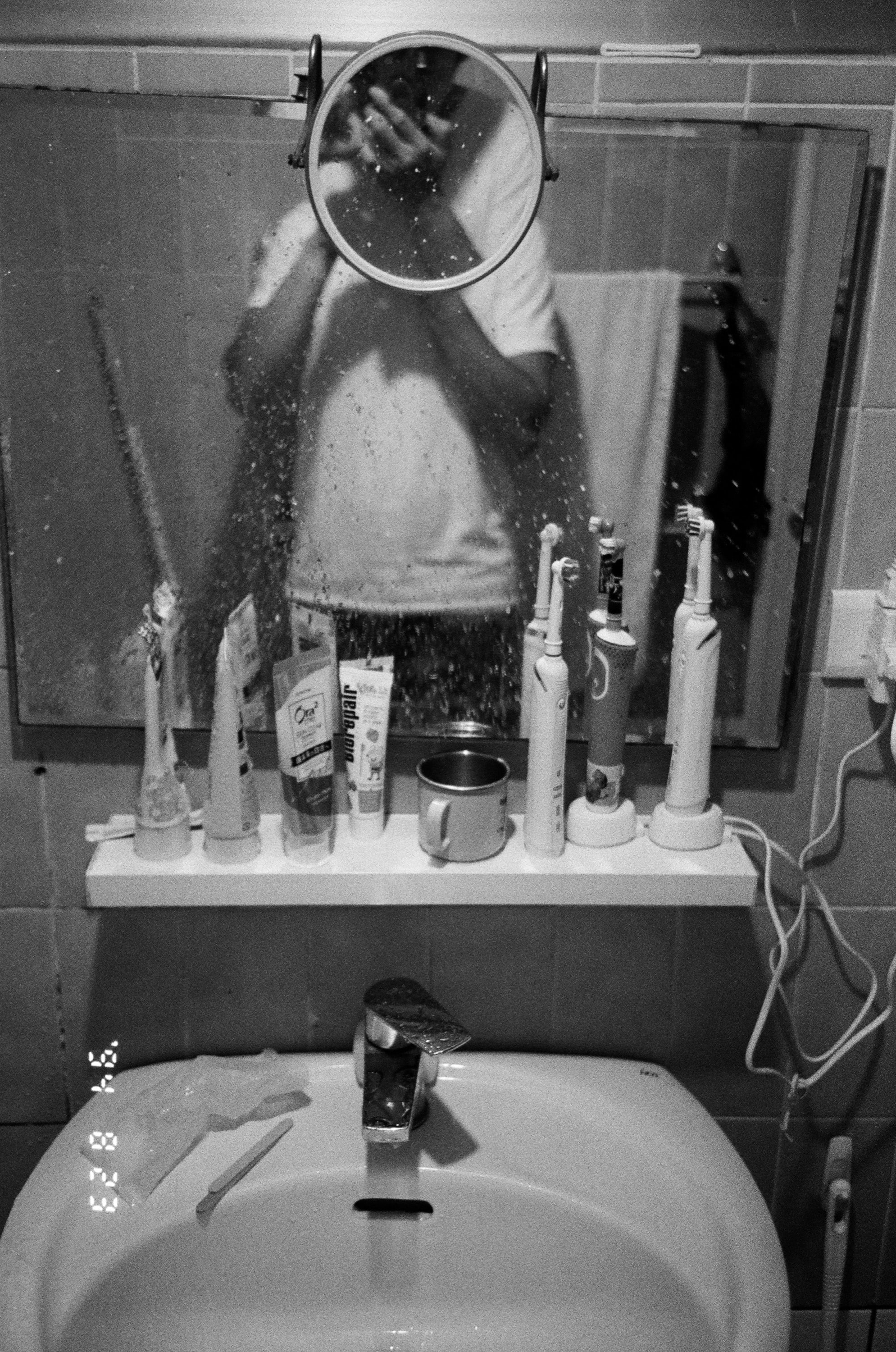 需要一點技巧的傻瓜相機鏡子自拍。