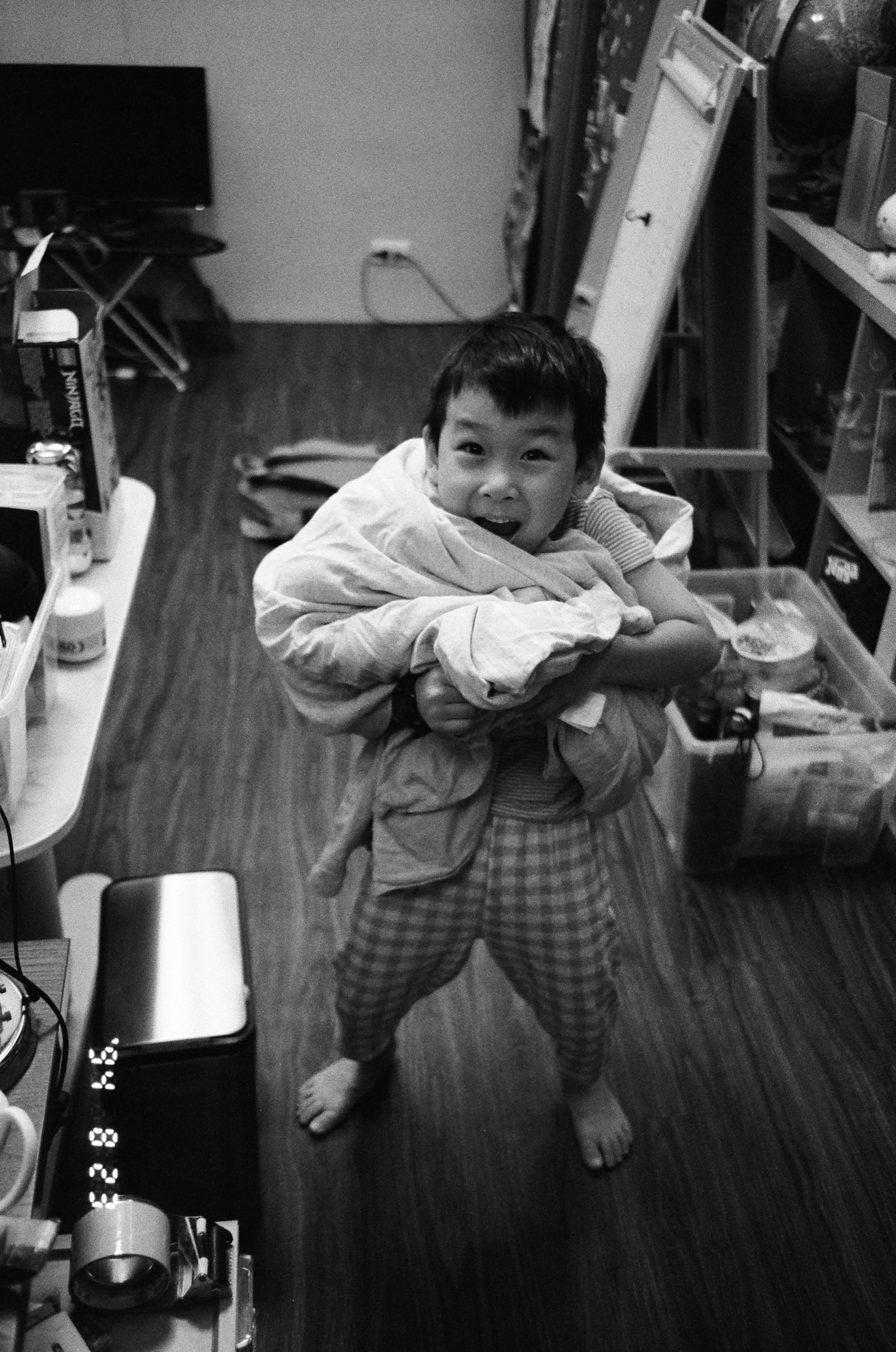 兒子和他心愛的那條棉被。