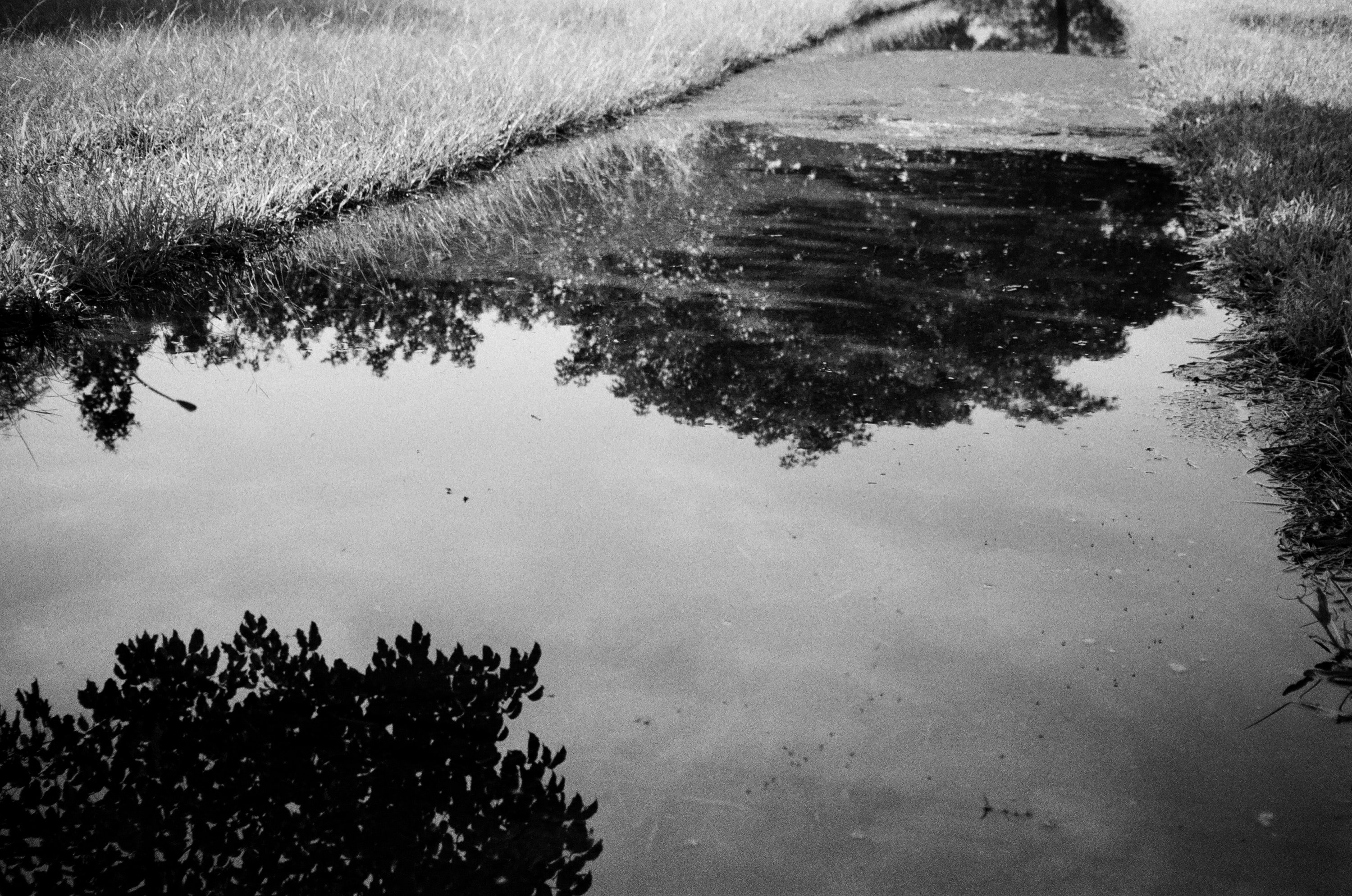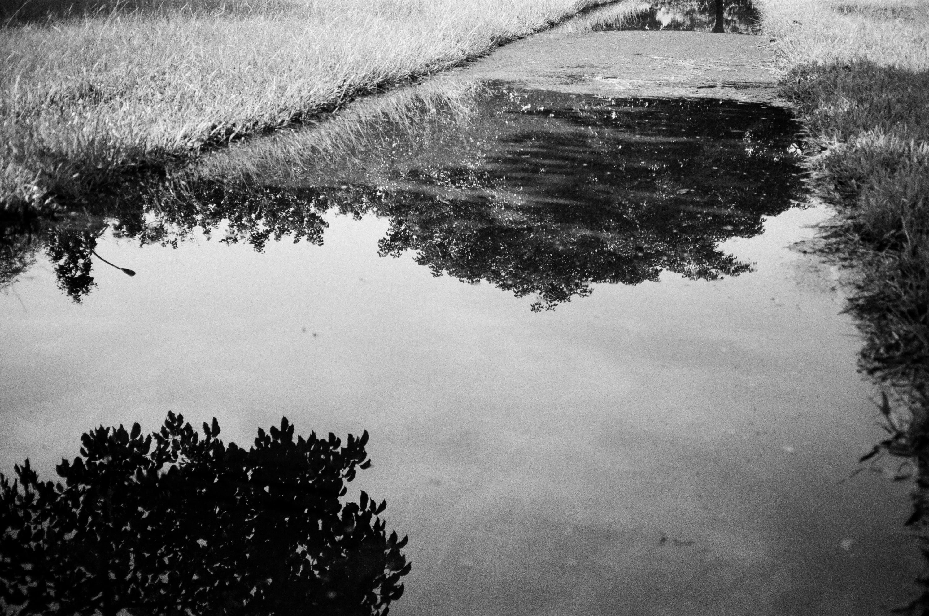 我想拍倒影中的天空,這張是 Contax T2 的自動對焦。
