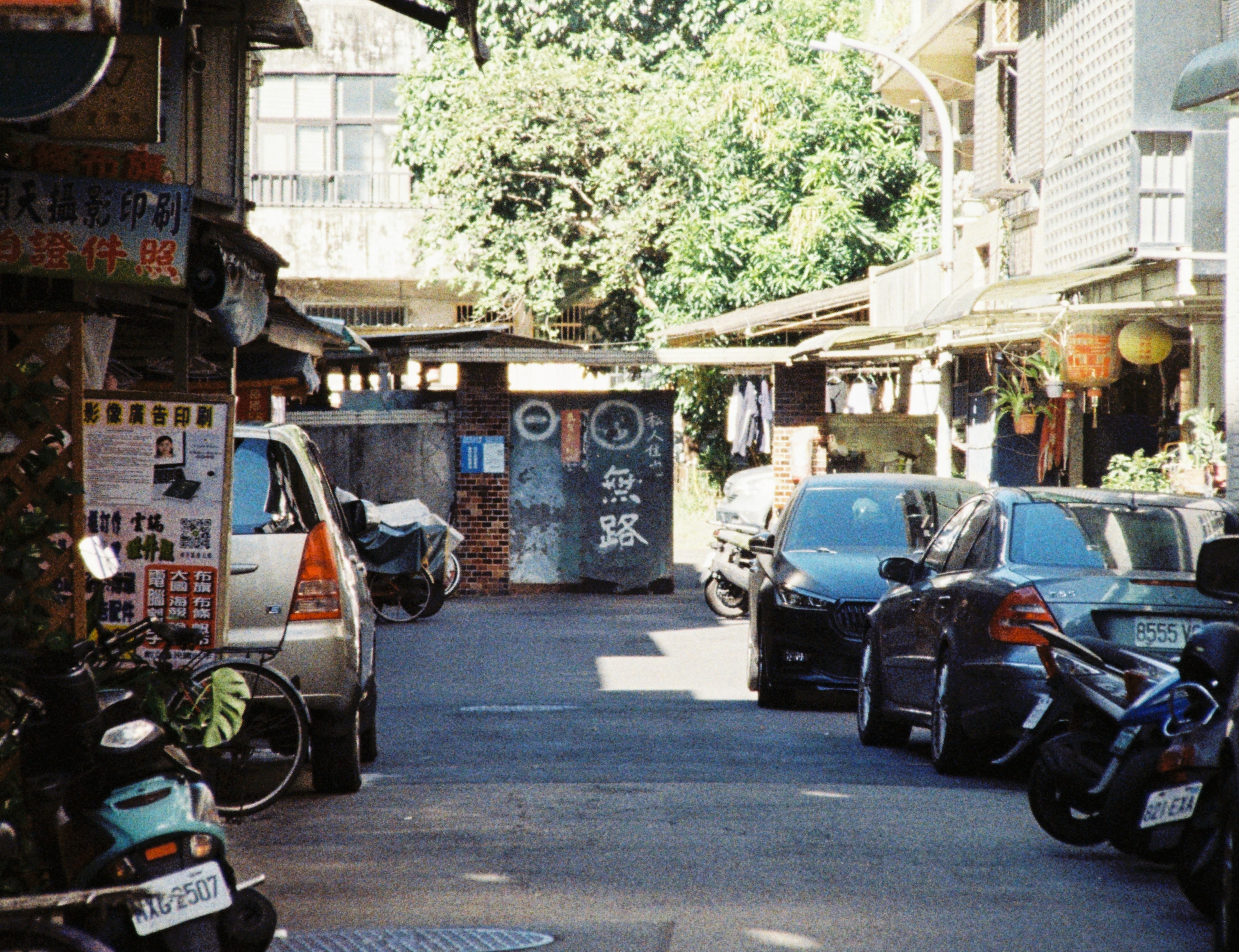 板橋文化路上,只是某天上班時的紀錄,這個場景我很常拍,正好可以跟其他相機的拍攝做比較。這卷底片文章的標題是「一刀不剪」,因為這卷底片沖掃出來的 24 張照片,我全部都放上來了,我想讓別人看一下每一張 Pentax Auto 110 所拍出來的照片樣子,無論成功還是失敗。