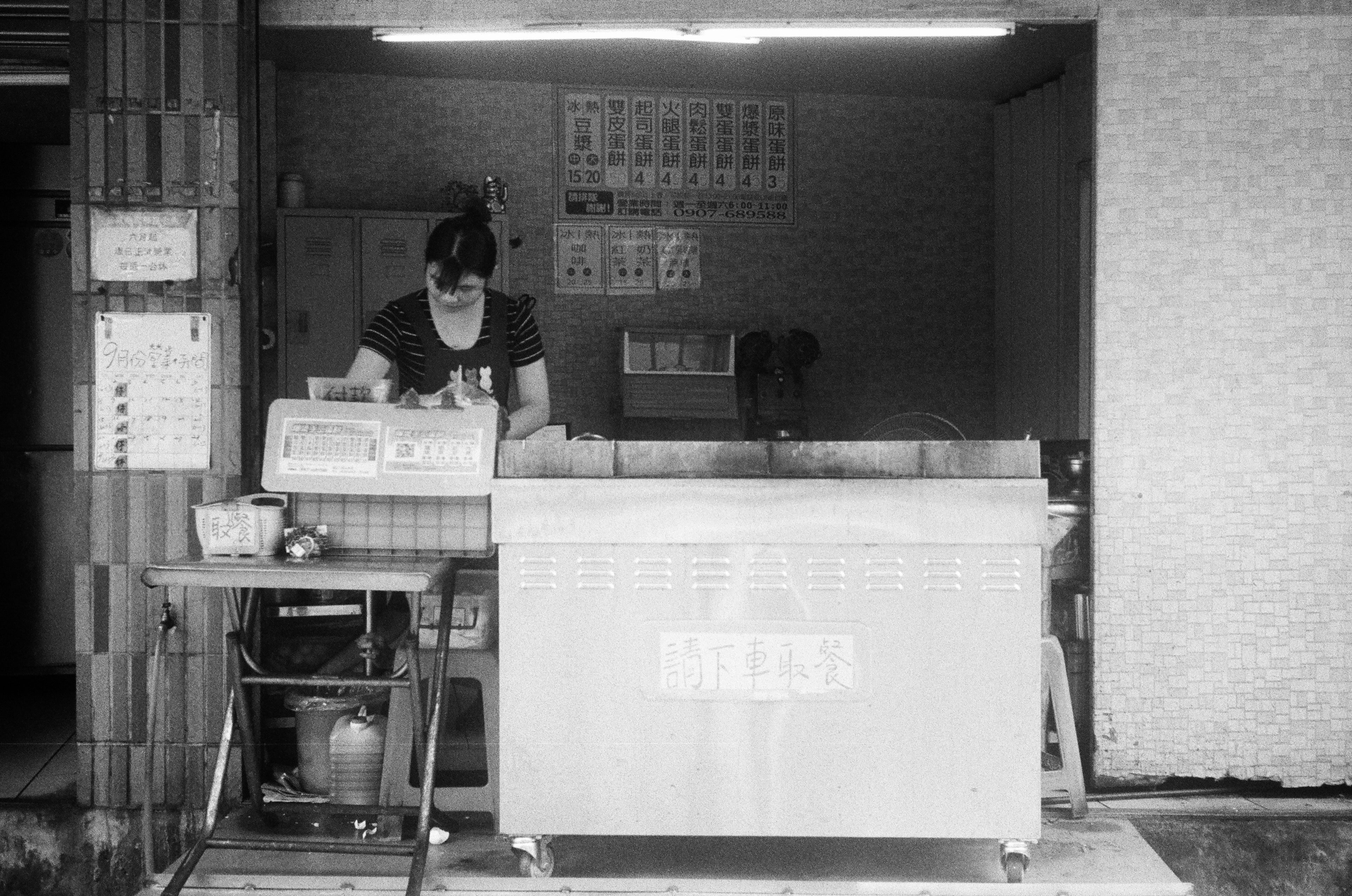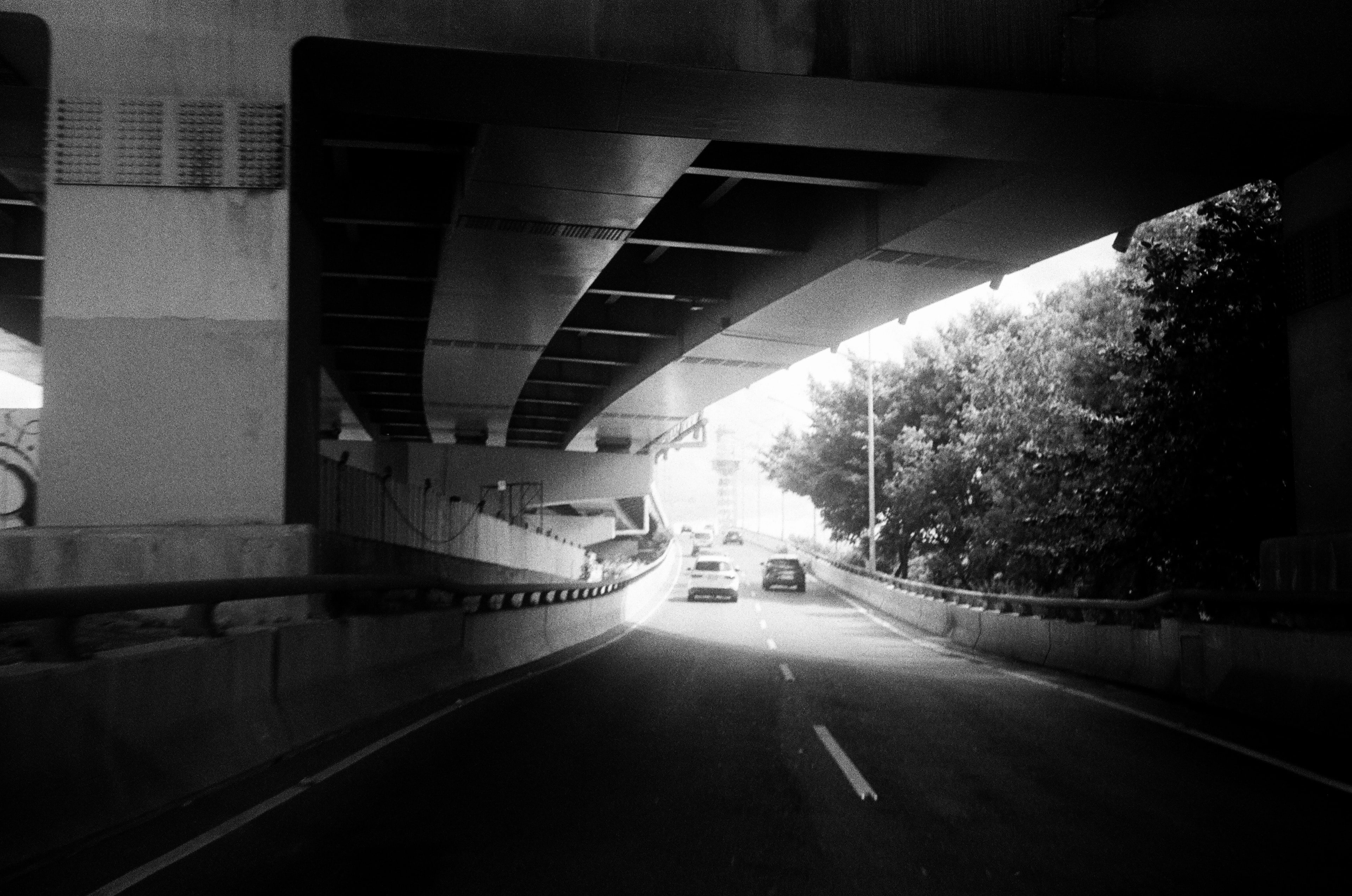 這卷底片的第一張,當時我正在出門買早餐的路上,我刻意騎這條路,因為我知道可以順便看個火車,可以拍下一張照片。Konica C35 AF 的最高快門只有 1/250,和 Konica Hexar AF 一樣,因此要凝結動態物體基本上是不太可能的,但反之,它可以拍出動態模糊的效果,還原當時畫面的速度感,這算是用優點來看缺點,很多事物都是一體兩面。