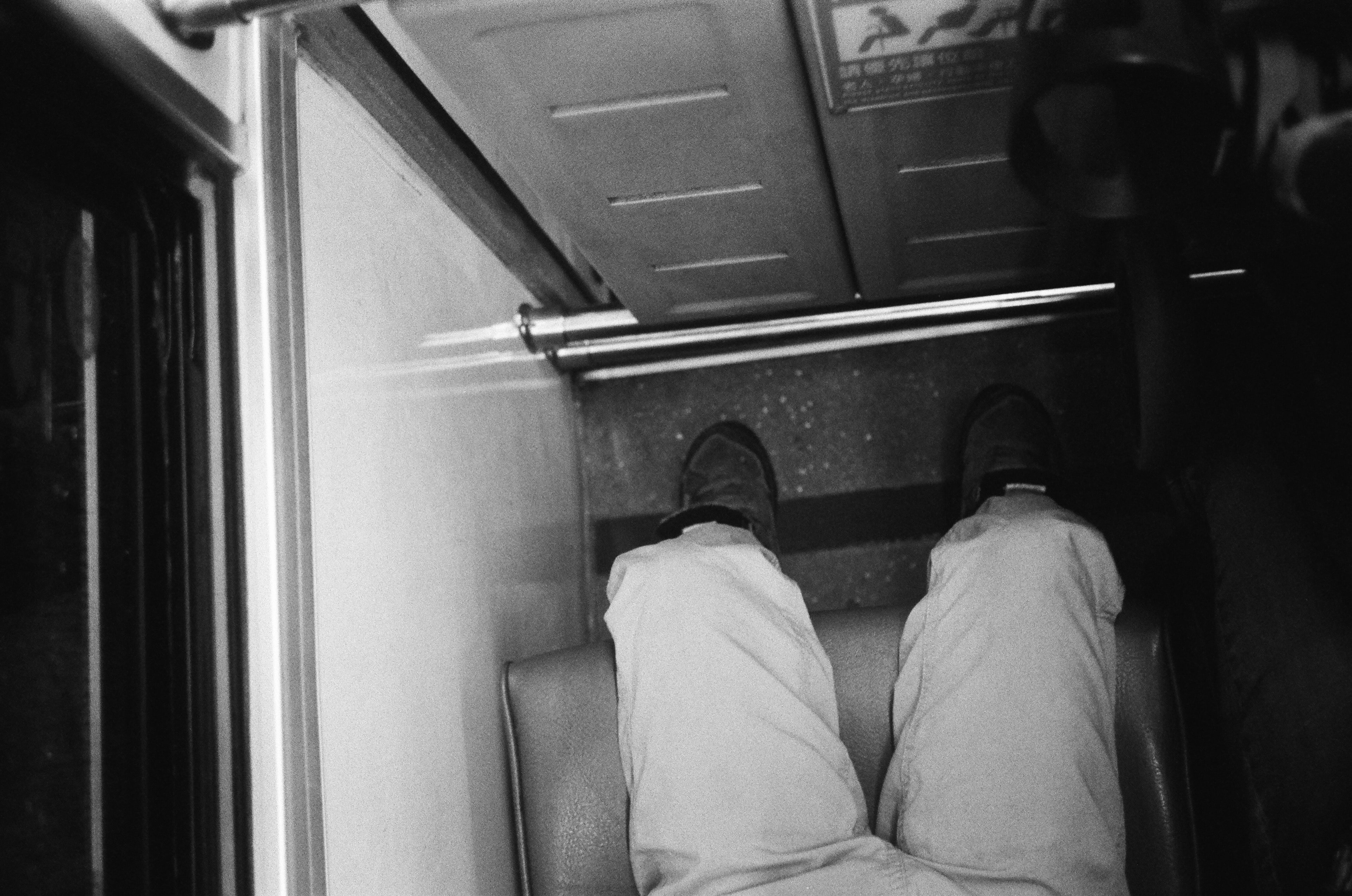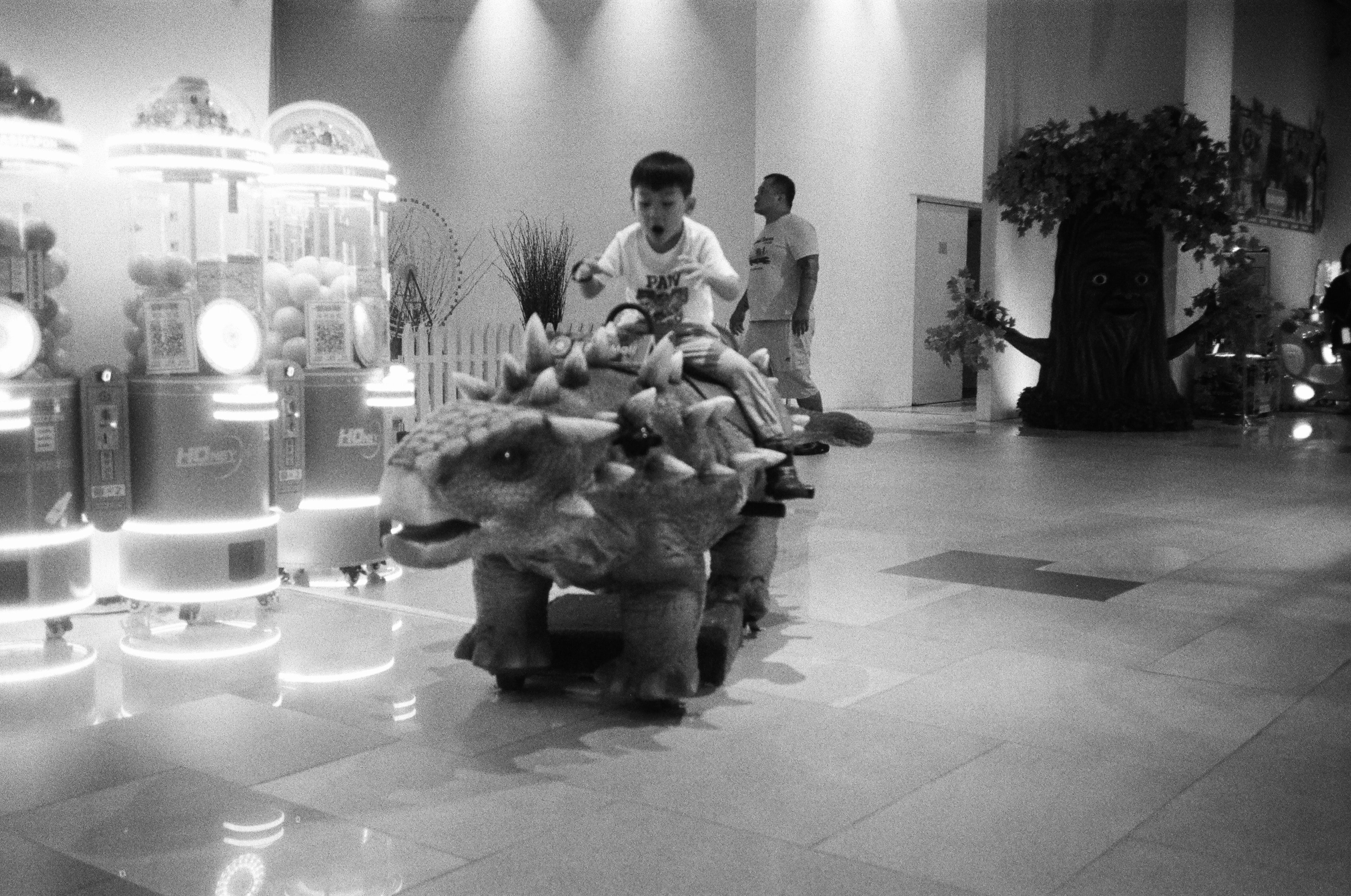 我和兒子的座位,但我只是想測試一下 Konica C35 AF 在這種昏暗光源下自動對焦的準確性。