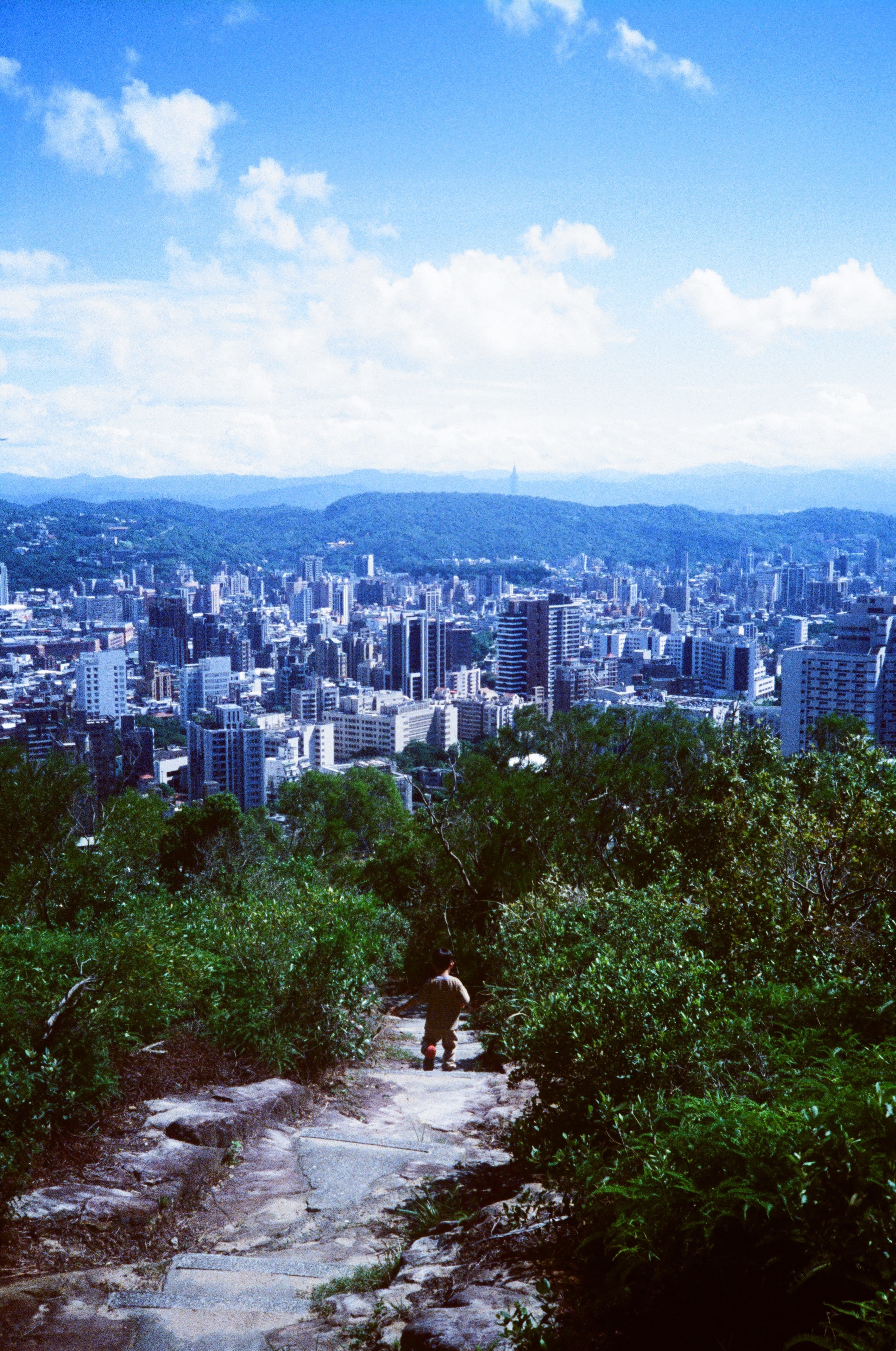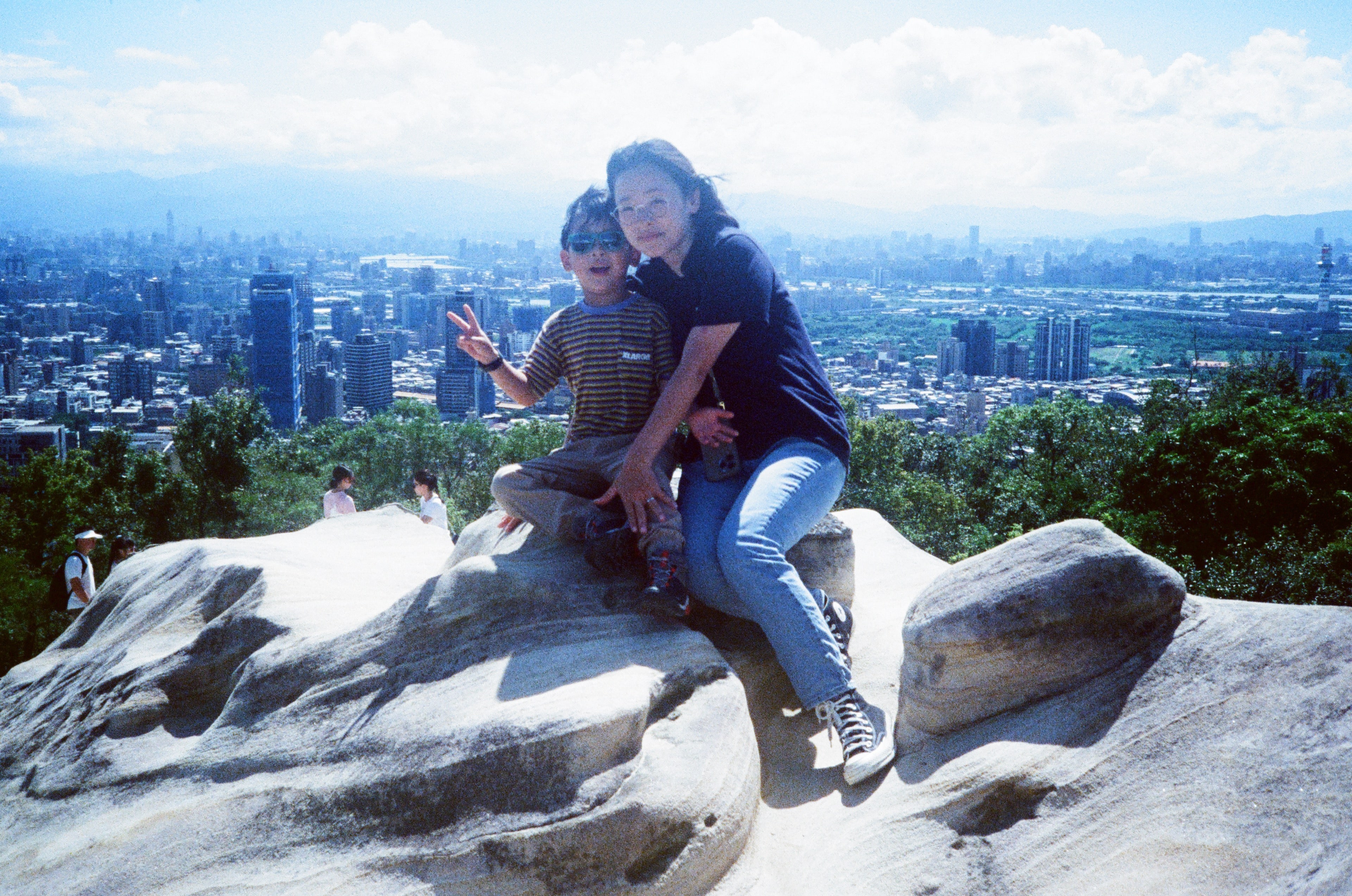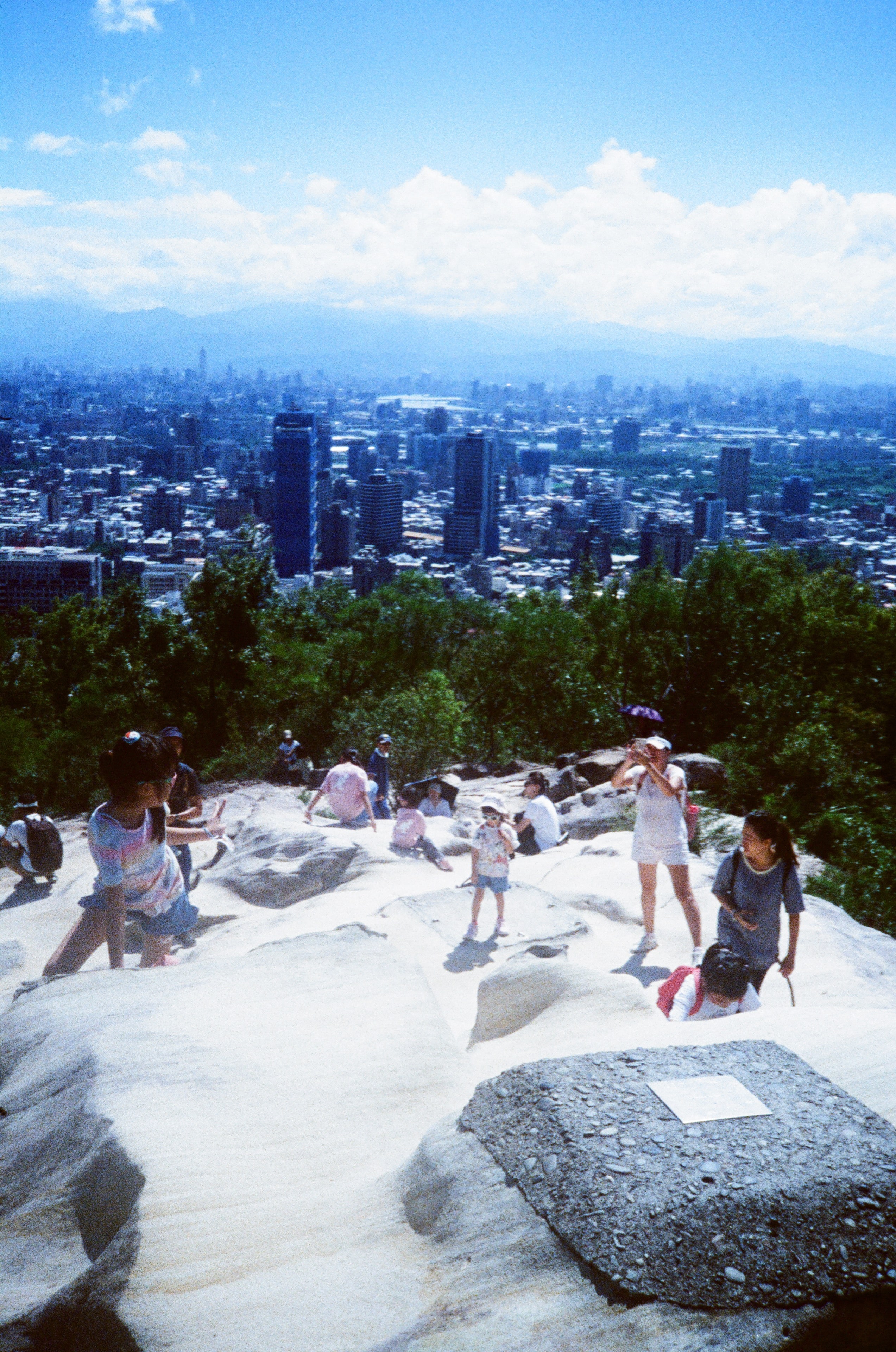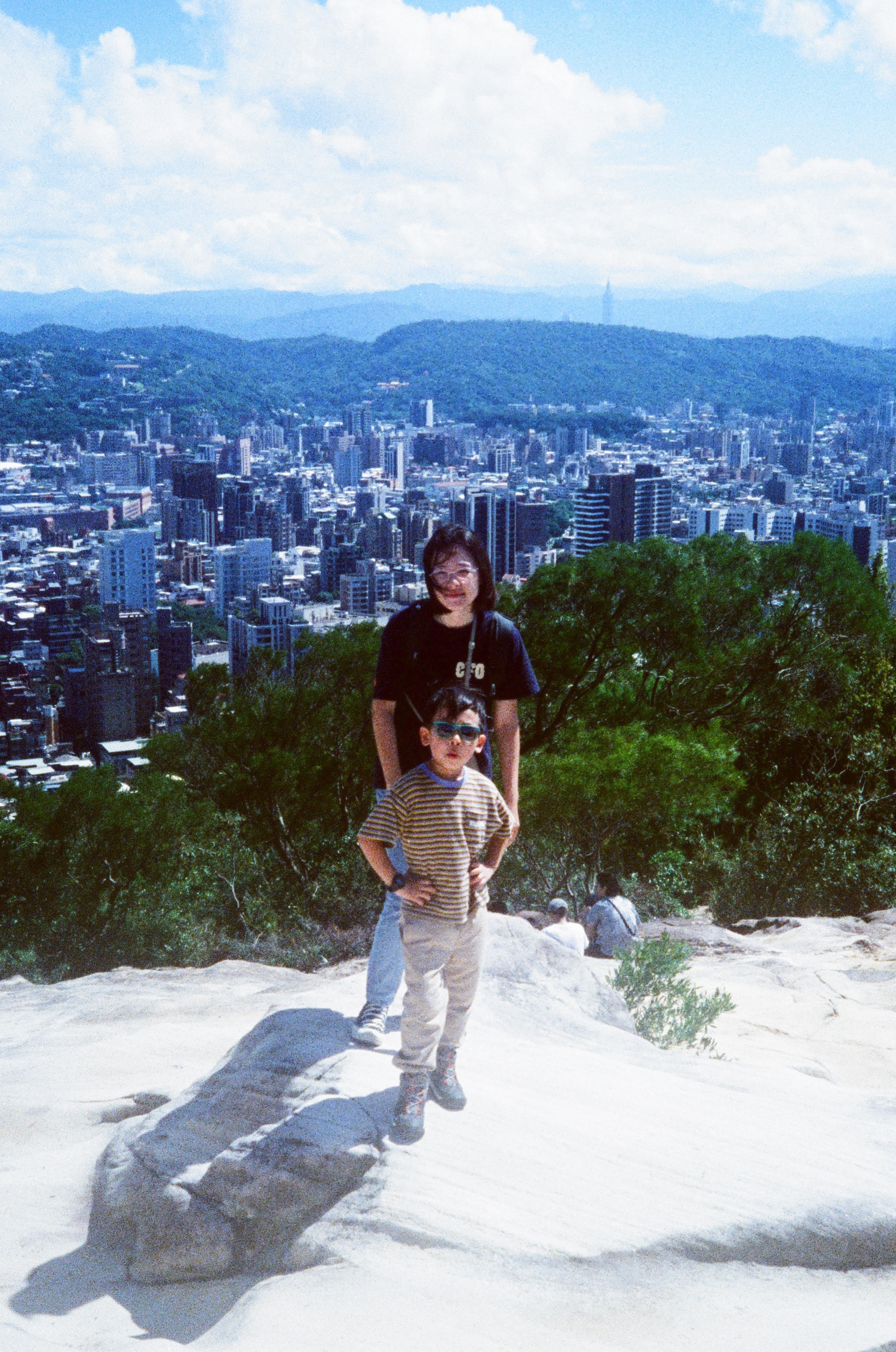 這卷底片的拍攝日期是 2024 年的 10 月初,那時的台灣還很熱,我們因為天氣晴朗的關係,抓緊了機會帶小孩爬了一些山,幾乎每個週末都有行程。這次爬的山是位於北投的「軍艦岩」,我一直很想去軍艦岩,因為看照片覺得是一個很酷的地方,站在山頂的岩石地形上,可以眺望整額大台北的都市景色,也許,以後可以過來看夜景。