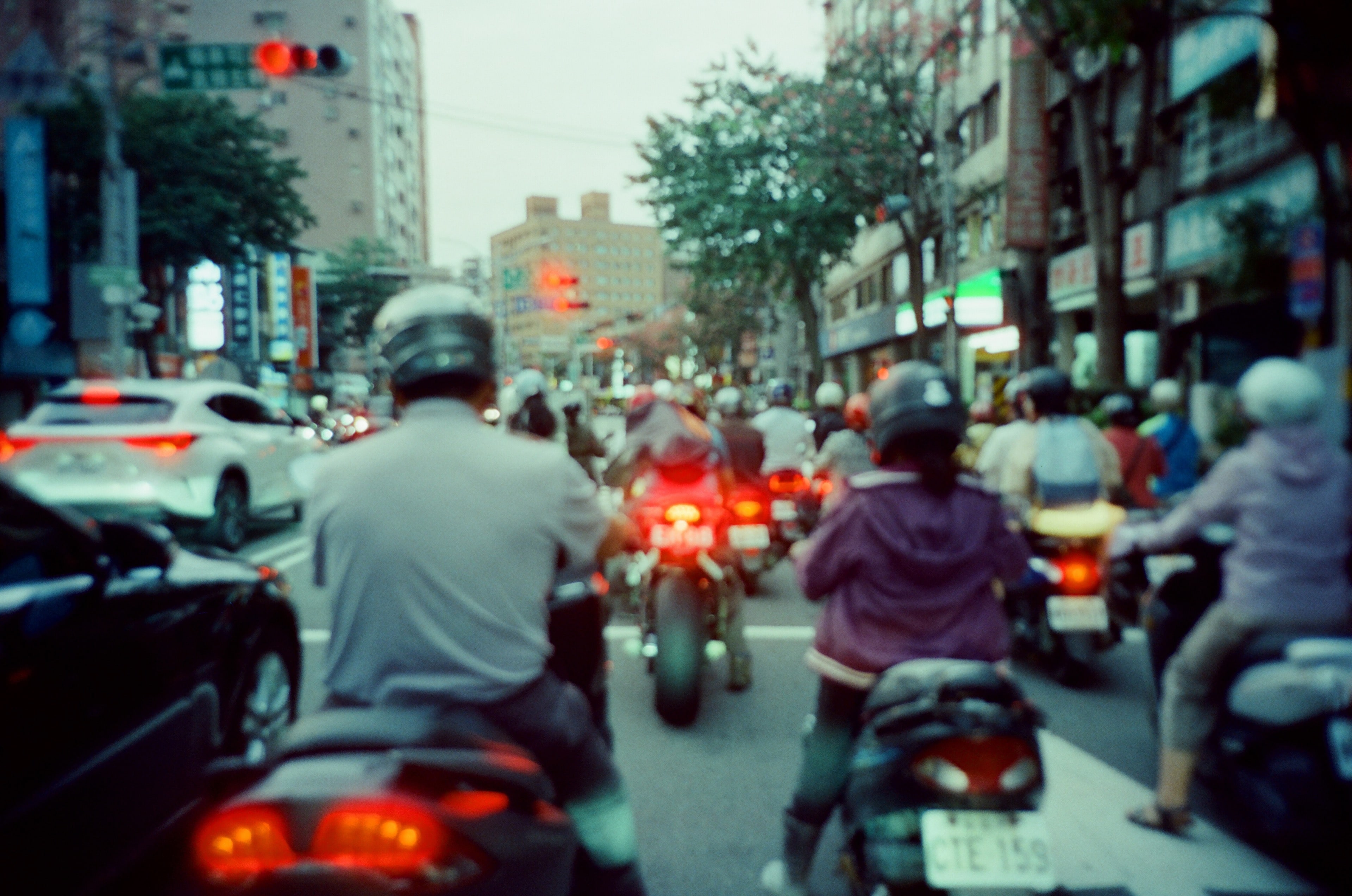 過斑馬線的過程,我快速地用 Ricoh R1 偷拍了一張機車群像,對的,是偷拍沒錯,因為我不喜歡「街拍」這種刻意美化的說法,我們很難反駁,大部分以街拍名義所拍攝的照片,本質上都是偷拍而來的。