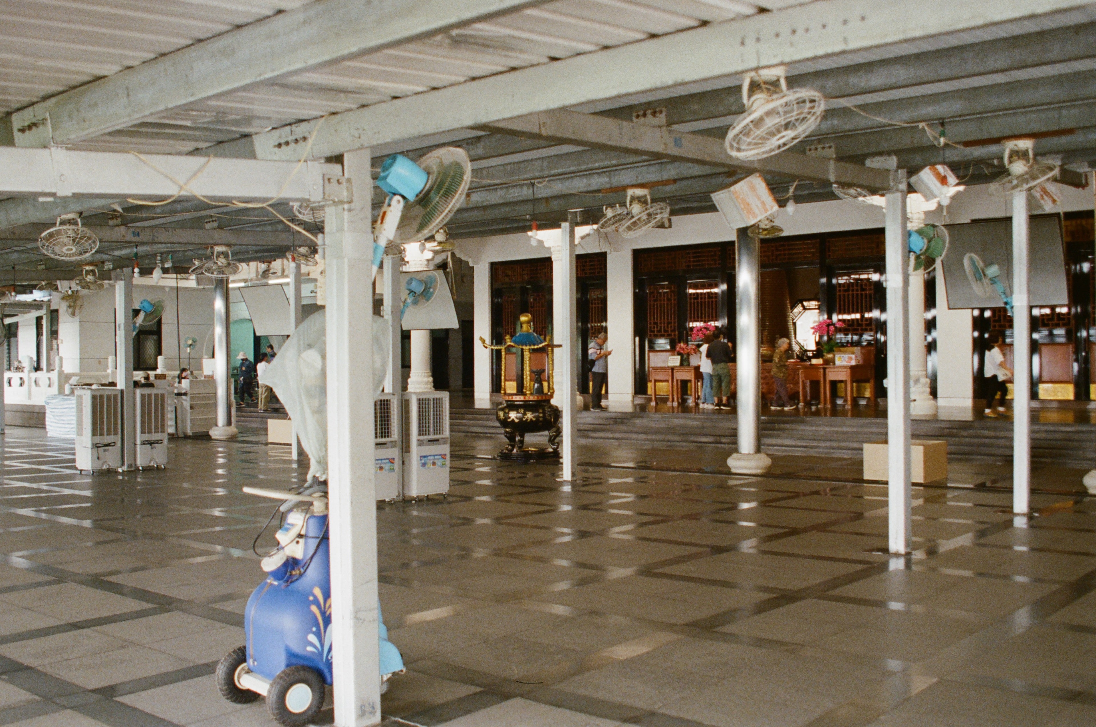 承天禪寺前的廣場,廣場架有遮陽屋簷與電風扇,想必夏日這裡是非常炎熱的。我對於道教的宮廟沒有特別的感覺,但對於佛寺,看著那些修行的僧侶,總是感到佩服。