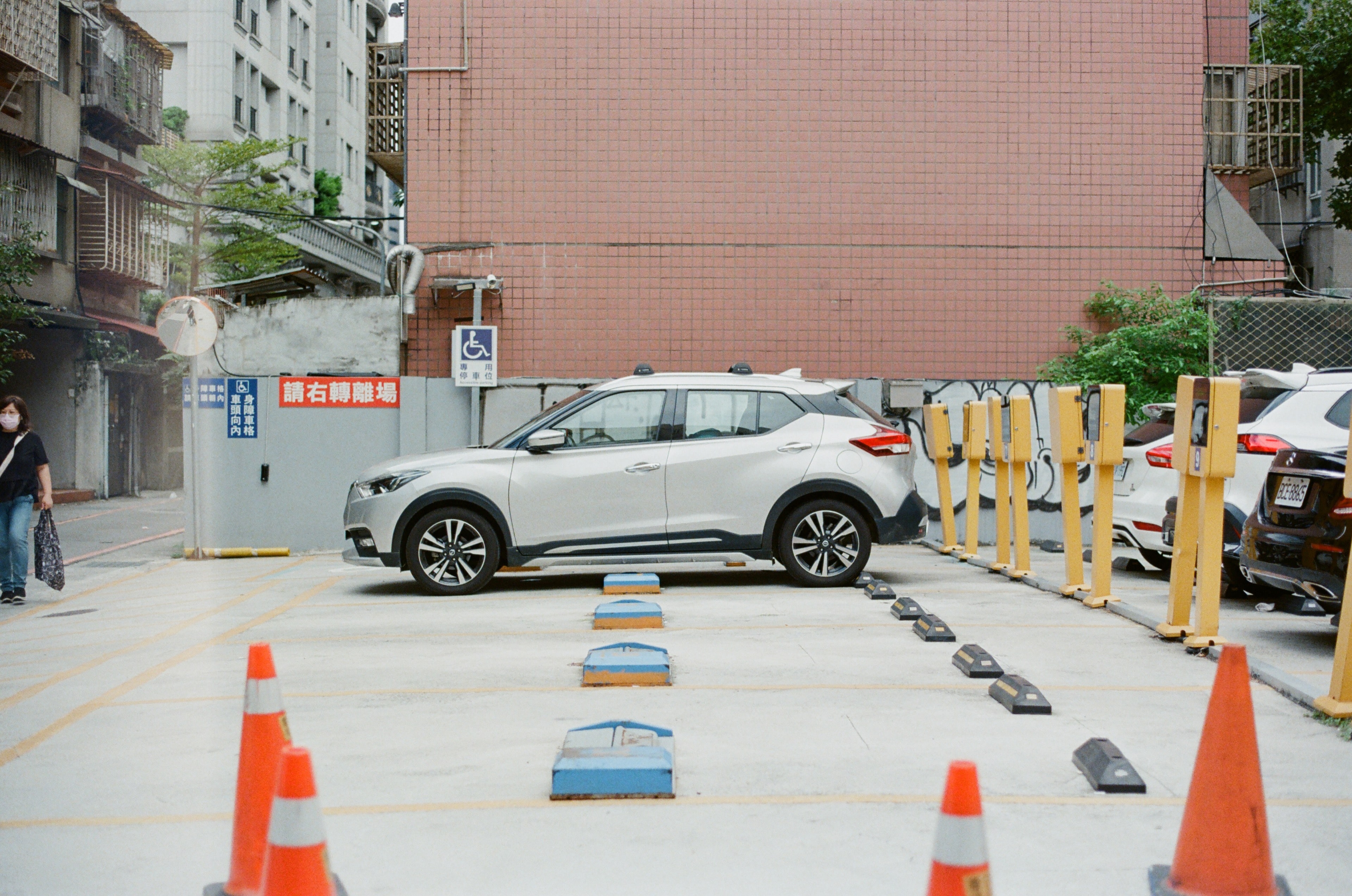 時常有人問我,Olympus OM 系統,我最推薦哪一顆鏡頭,基本上我都是推薦 Olympus OM Zuiko 50mm f1.8。以各方面來說都是無懈可擊,價格、畫質、輕量,無可挑剔,算是 Olympus OM 系統的光學結晶。如果你是初入 Olympus OM 坑的人,那麼直接找這顆來用,一定不會讓你失望。如果可以,我個人建議找單層鍍膜版,不要多層鍍膜(MC)版,因為多層鍍膜版很容易有霧化問題。這張照片是某個星期六上午拍攝的,目前,我們固定每個星期六上午都會帶兒子去台北市上英文課,比較常開車,偶爾搭捷運。這天的停車場人好少,有順利停到位置。