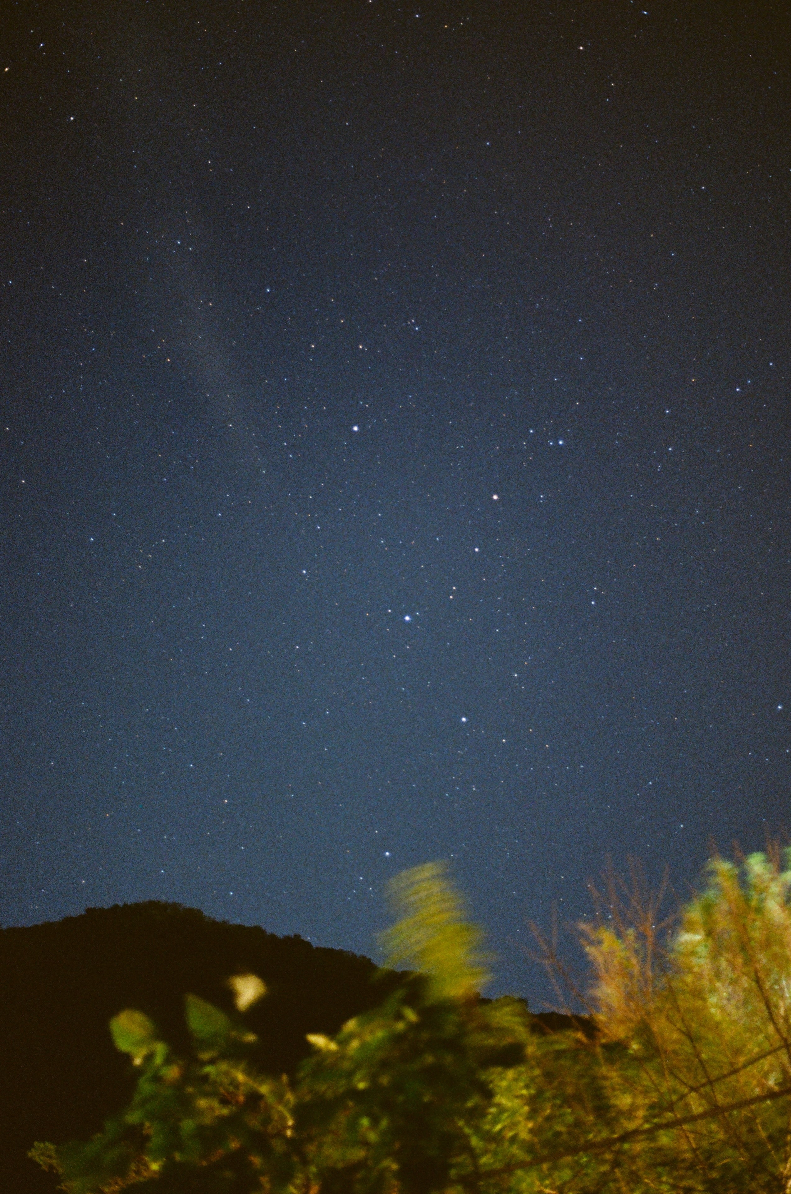 這天很幸運,有星星可以拍,但我沒帶快門線,只有腳架,於是就用手按快門的方式拍攝。這張快門三秒,是以 Olympus OM-10 Quartz 內建的光圈先決模式拍攝的秒數。大部分的 OM-10 光圈先決在慢速快門時都有秒數偏慢的問題,但我手上這台沒有,非常幸運。
