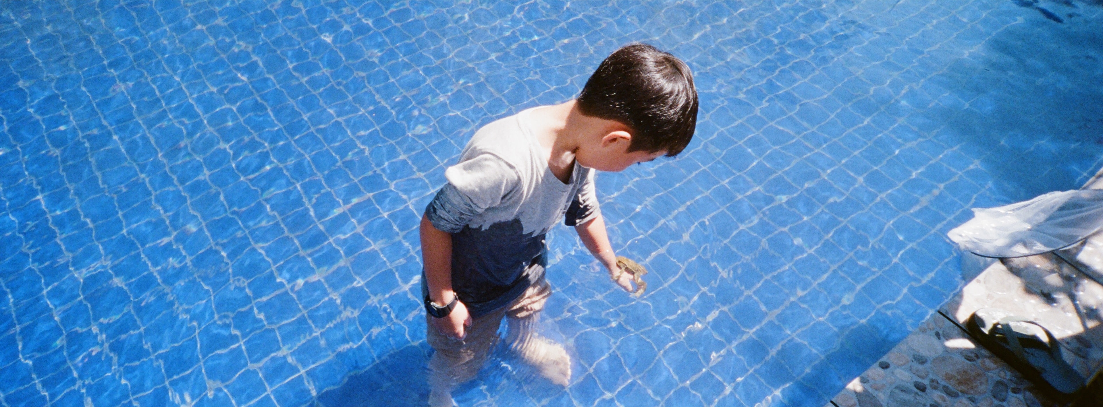 某個星期日,我們在一個露營區,那個露營區有個小戲水池,裡頭有好多隻盤古蟾蜍,我們就在戲水池裡面抓蟾蜍。不過只有兒子下水,我因為沒有多帶換洗衣物,因此就在岸上看而已。照片中有隻盤古蟾蜍正攀在兒子手上。