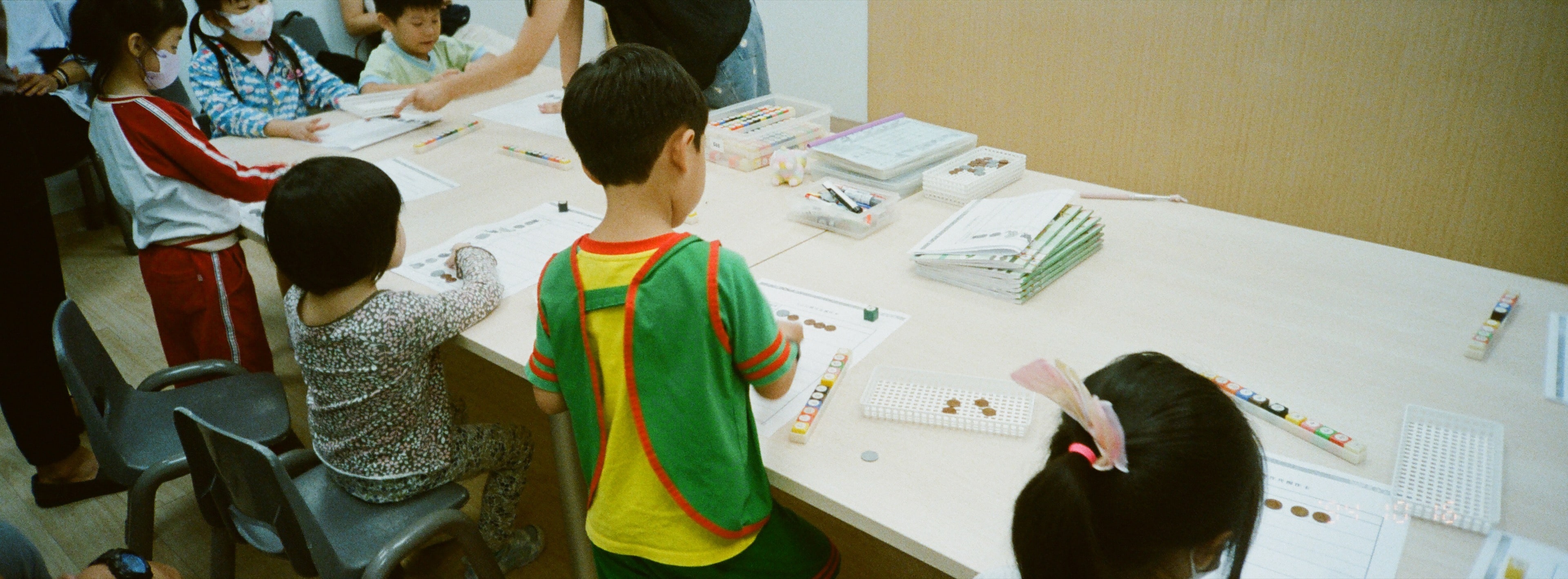 目前為止,兒子每週都有去上數學課,不是傳統的數學課,而是訓練小孩的邏輯推理和觀察能力,我覺得滿有趣的,而且效果很好。這張照片是兒子上課的情形,擺在桌上的,是當時的數學教具。