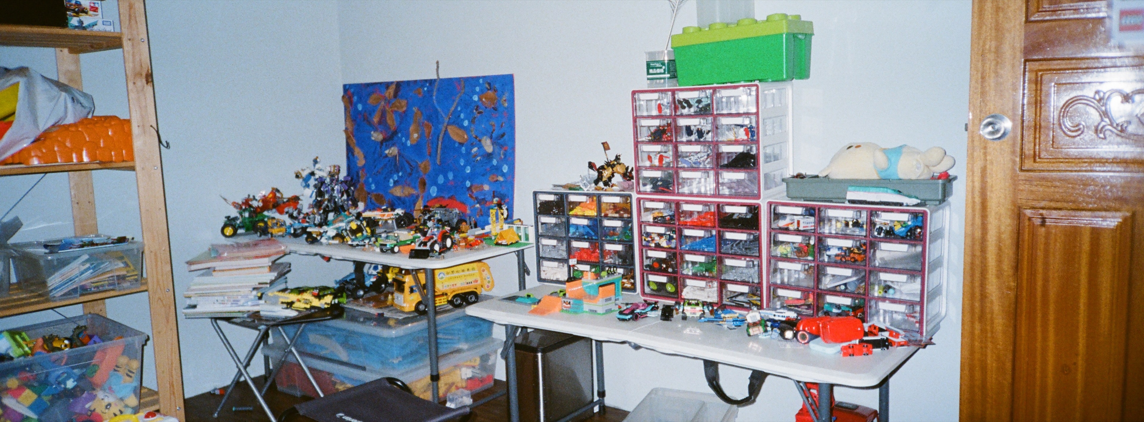 兒子的房間,我們正在整理,整理到一半,所以非常凌亂,但還是有一個空間可以讓兒子組樂高。