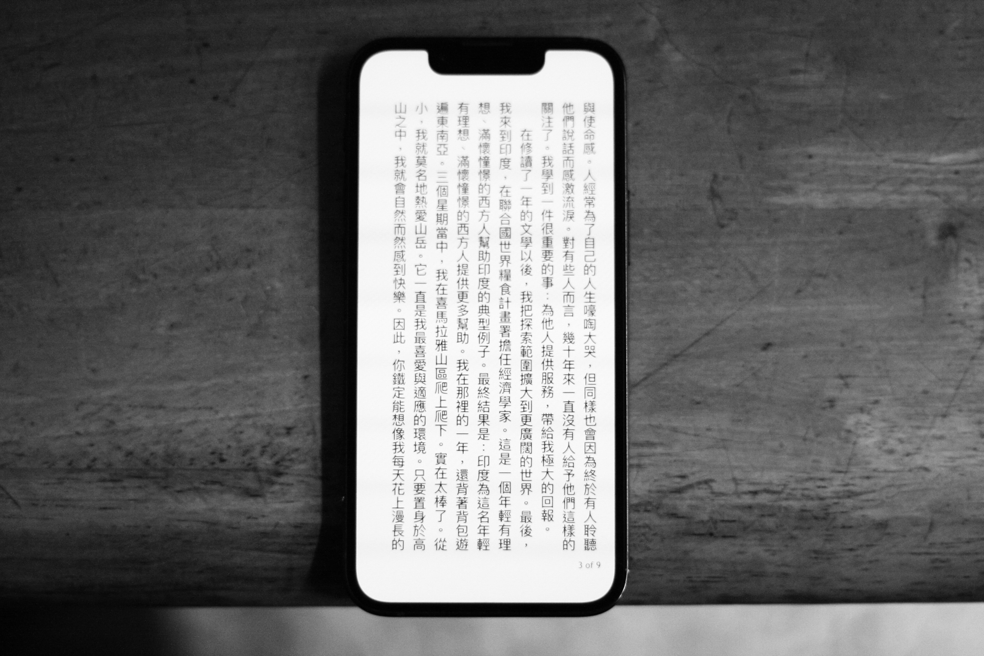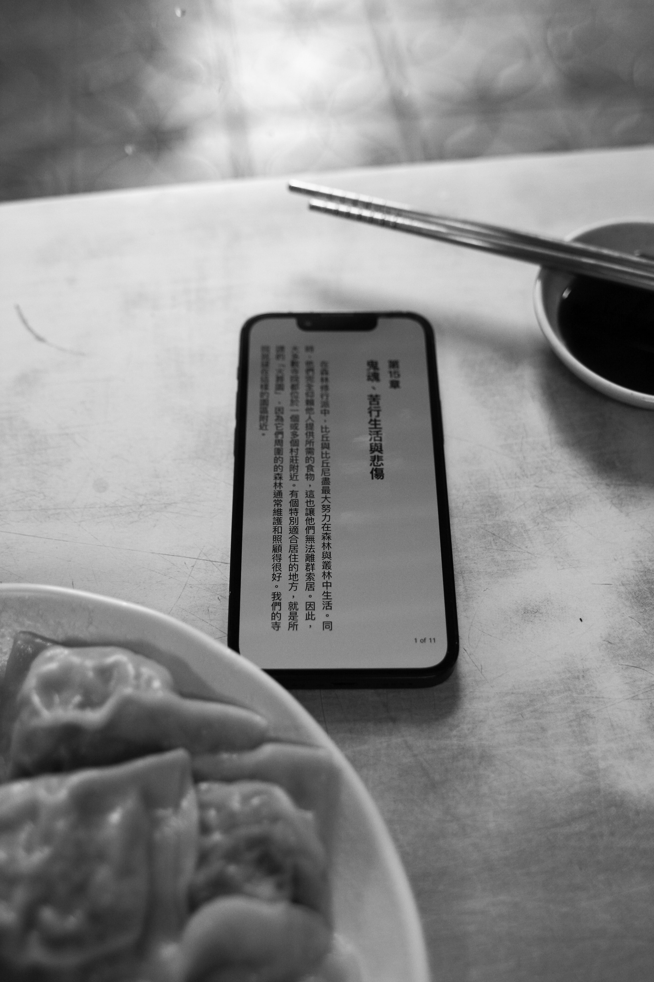 這是這卷數位底片中的第一張照片,請容許我用這種方式來形容接下來的所有照片,因為對我而言,每一張照片都是獨特存在的,他們在拍攝當下並未被預覽檢視,直到我將相機連結電腦讀取記憶卡的那一刻才全部現形,我獲得了接近拍攝真實底片的驚喜感,而且我節省了一卷底片購買和沖掃費用。這張照片的內容,是當時我正在中午吃飯時間,用手機 App 看電子書,取代看臉書之類的社群媒體。