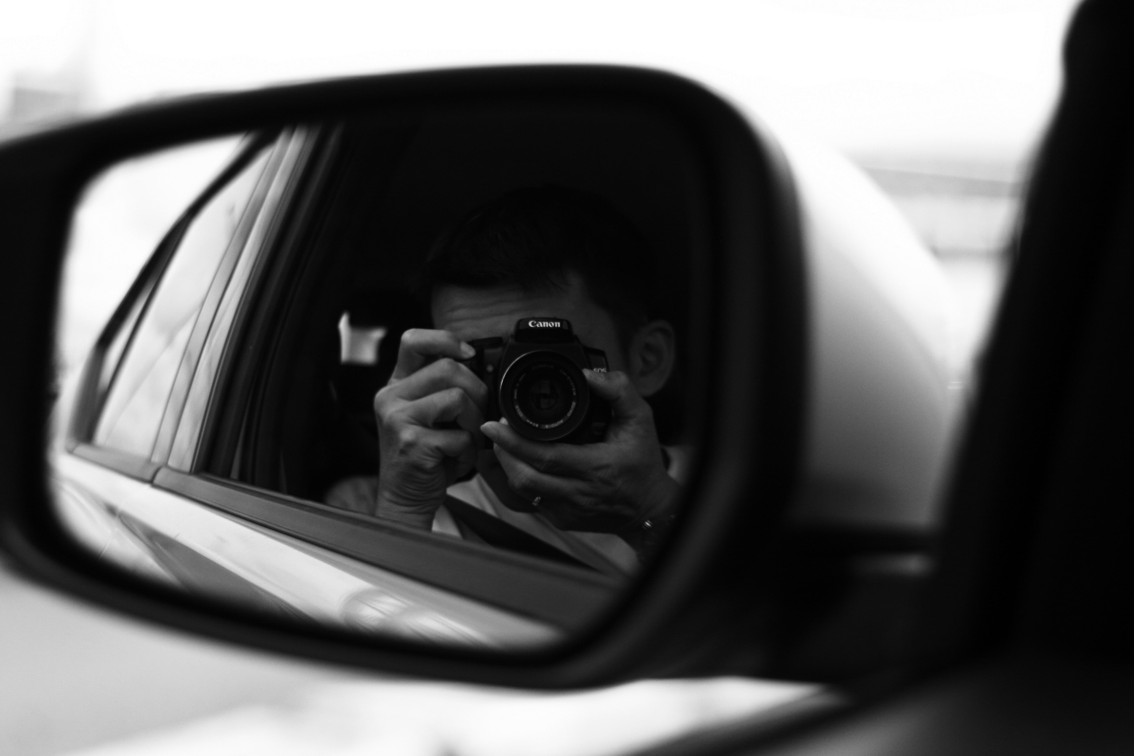 這張照片經過水平翻轉的後製處理,因為我想看清楚自己,這張照片拍攝時,我正坐在副駕駛座上,但水平翻轉後,我看起來卻像是在正駕駛座。