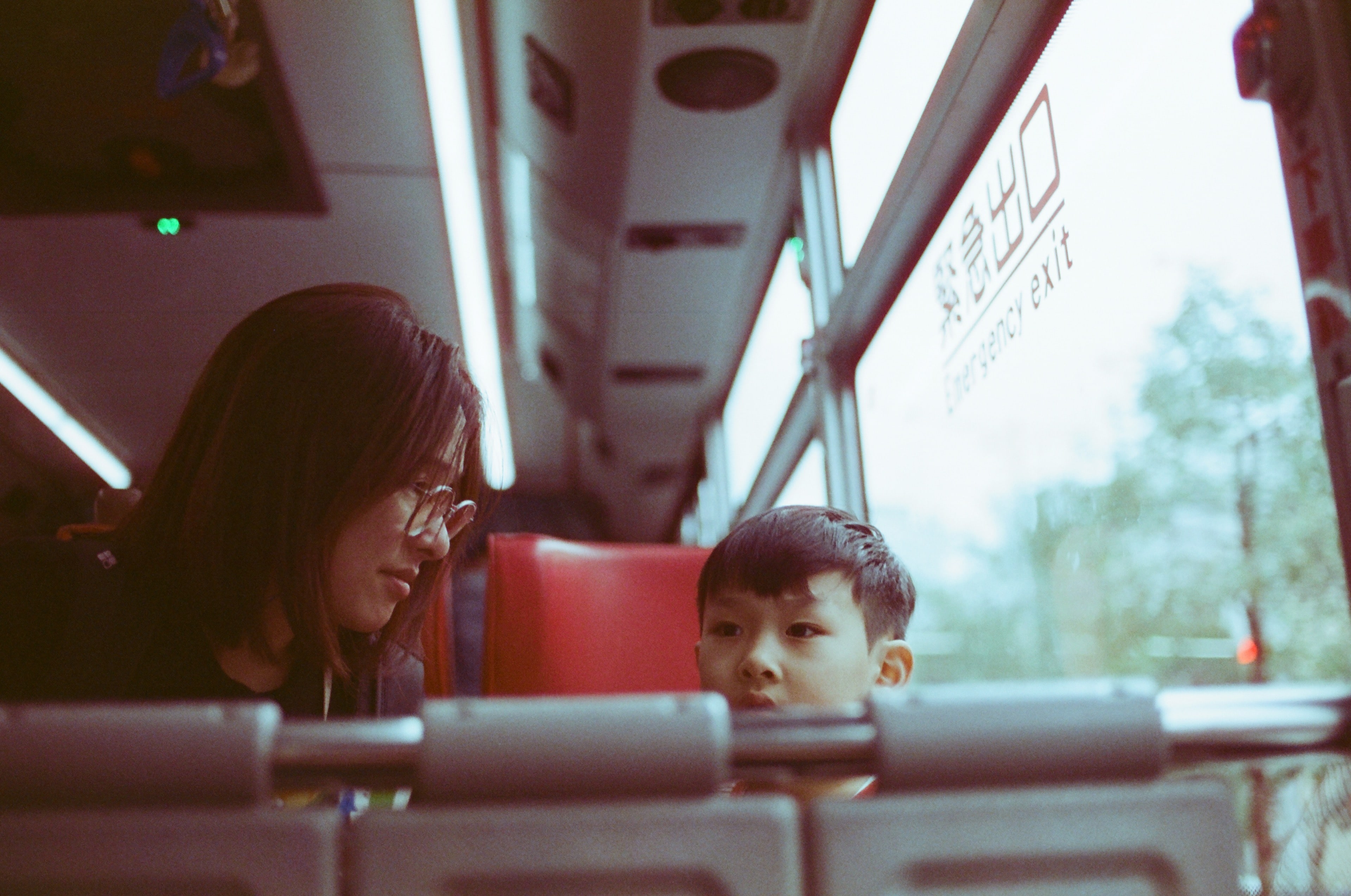 過去我用 Olympus OM Zuiko 40mm f2 的時候,如果光線允許,都會要手動縮光圈到 f2.8 以爭取更高的解像力,在拍攝時的測光評估需要比較傷腦筋一些,因為要來回修改。不過使用 Voigtlander Ultron 40mm f2 SL Aspherical 就沒這個問題了,隨心所欲,光圈開到最大,想拍就拍。這張照片是過年放假期間,我和太太與兒子一起搭公車,我們要去逛玩具店。