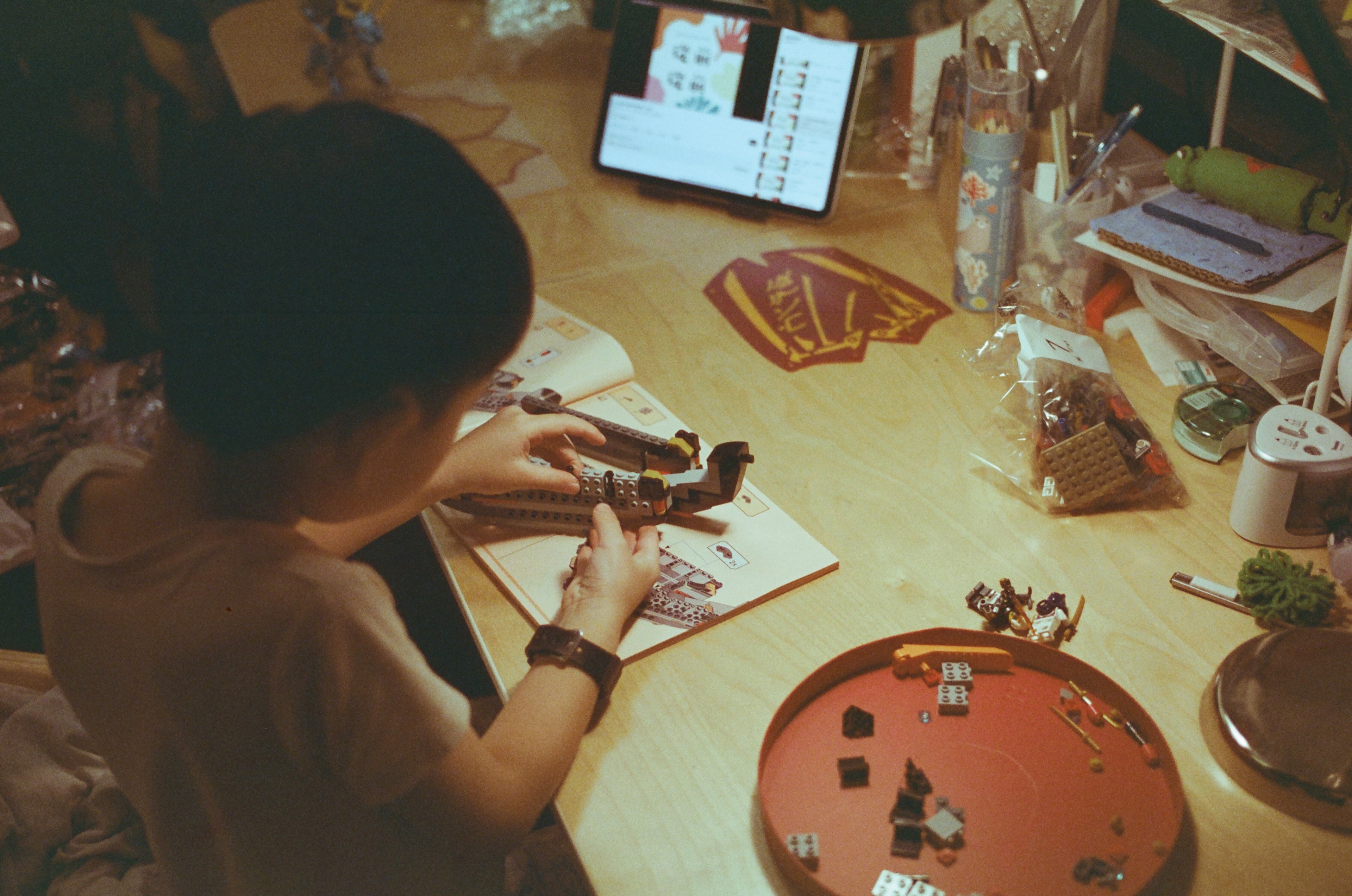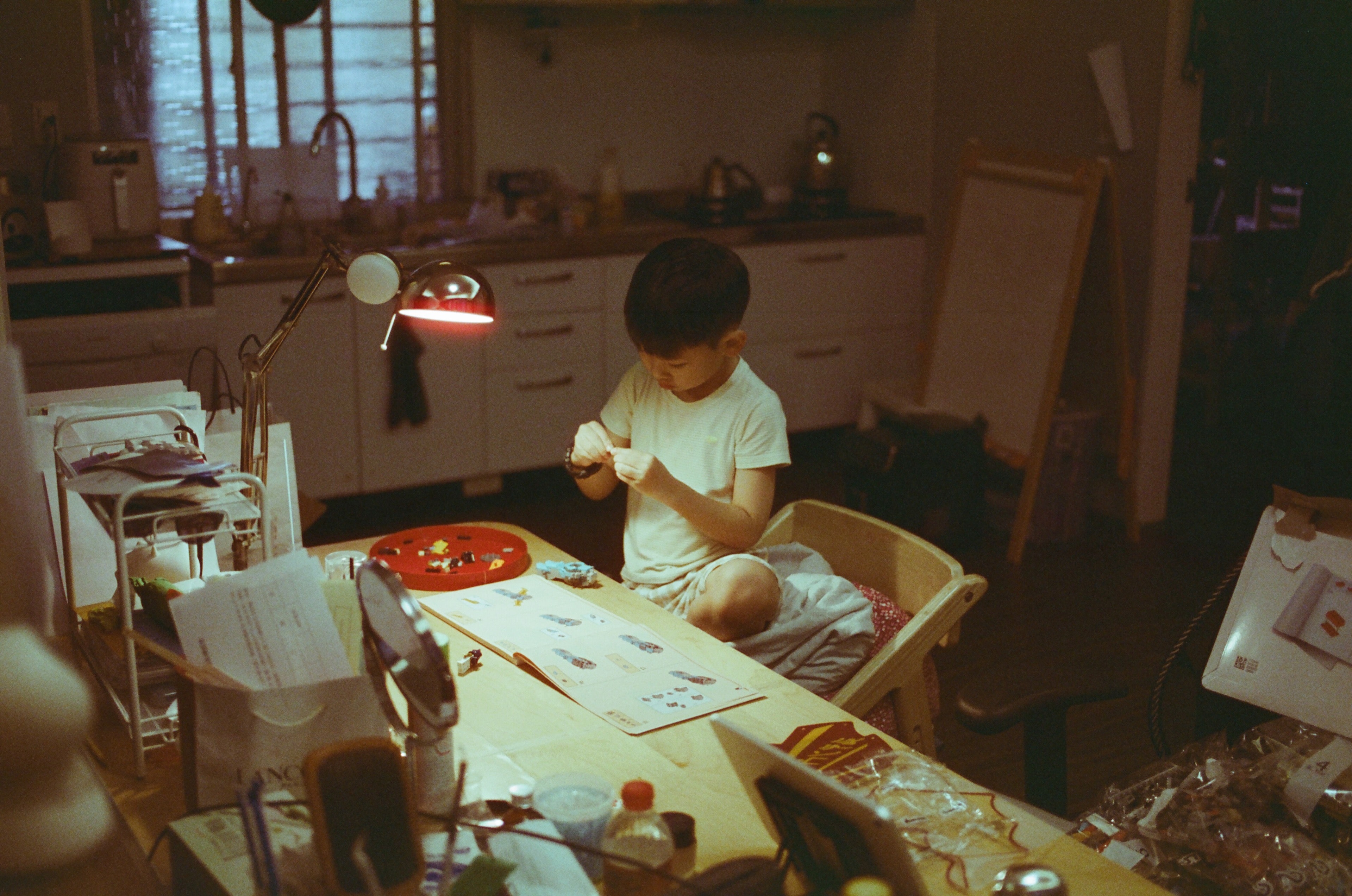 從玩具店回來之後,正在專心組樂高的五歲小孩(馬上就要六歲了)。