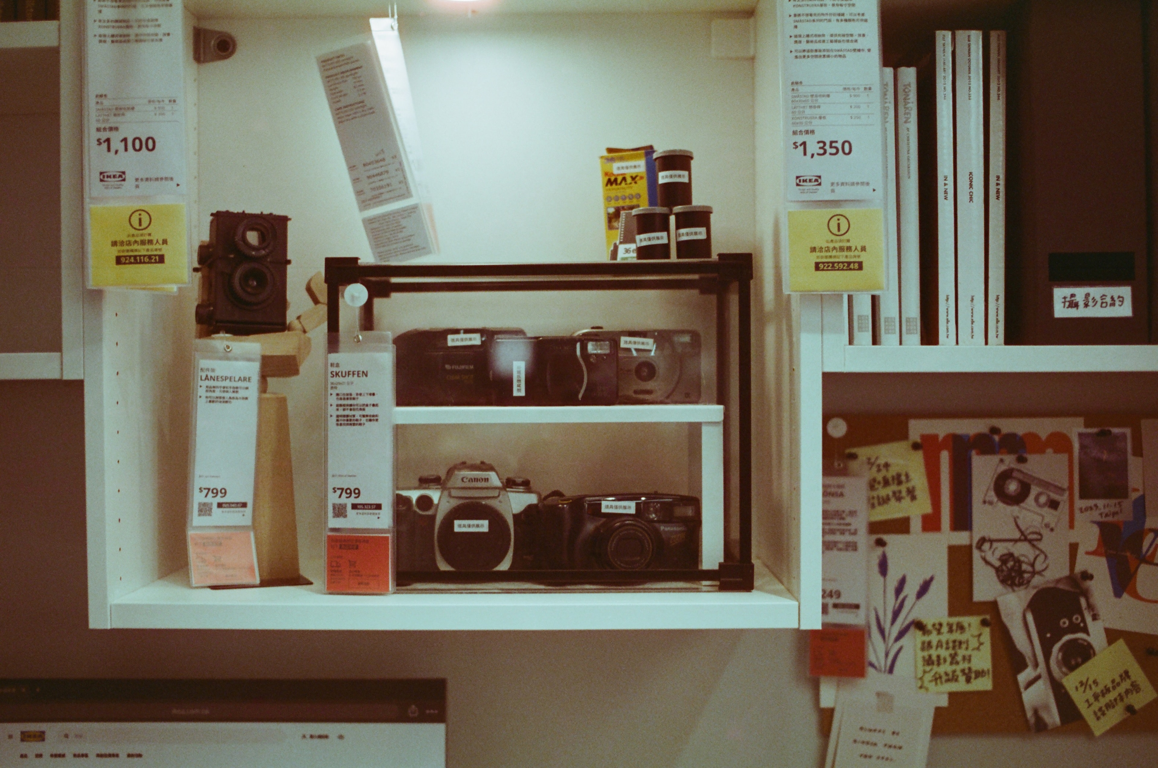 過年期間,我們全家人去逛 IKEA 新莊店時,赫然發現它們竟然使用一堆真的底片相機在佈置,我想應該是他們其中有員工有在玩底片相機吧!