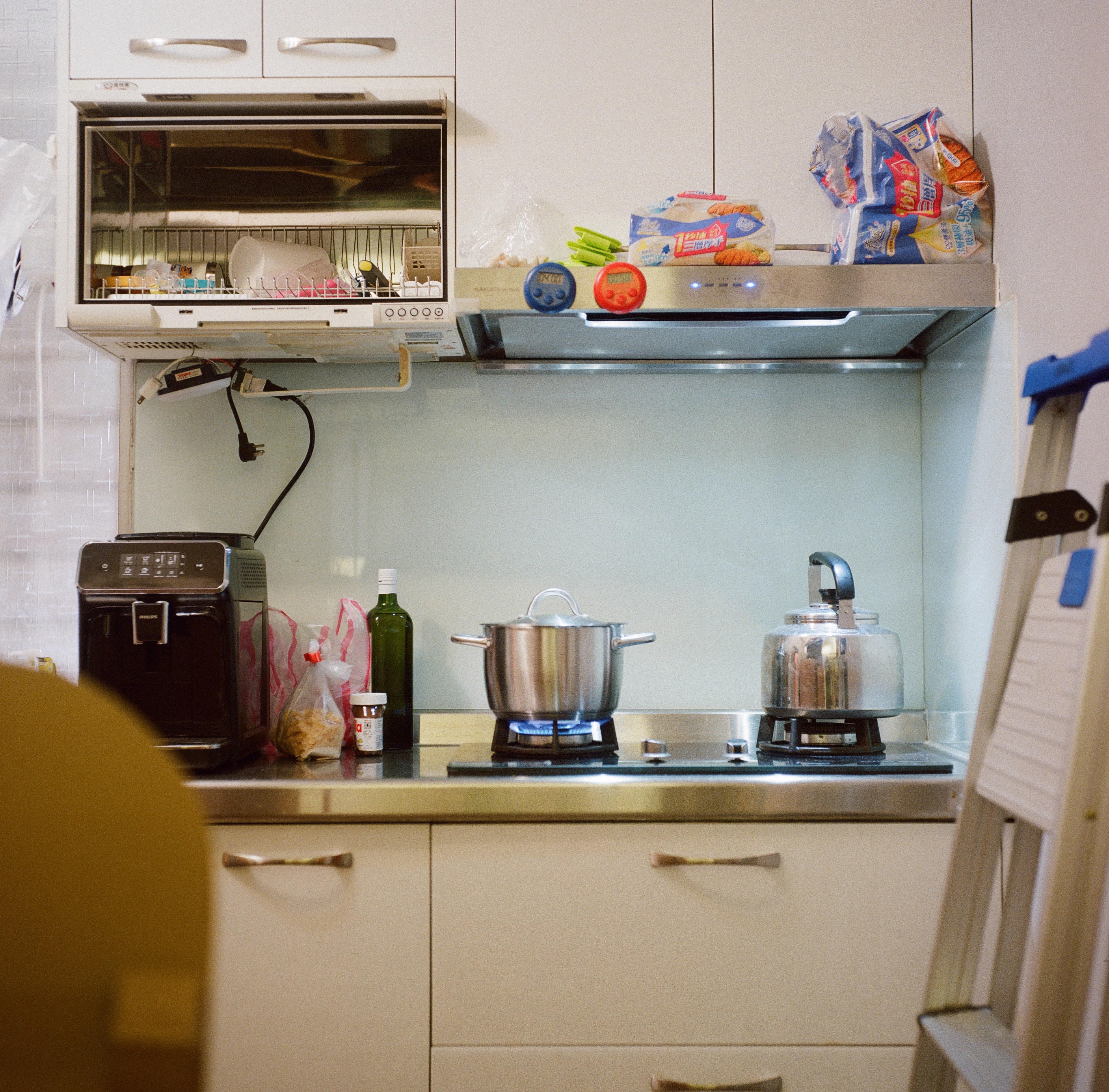 我家最近的樣子,畫面中央的照片,是一張我用 Pentax Auto 110 搭配 18mm f2.8 鏡頭所拍攝的建築風景照片(照片連結請見 GrainHunter),我很喜歡,因為覺得用黑白底片拍出來的影像很耐看。