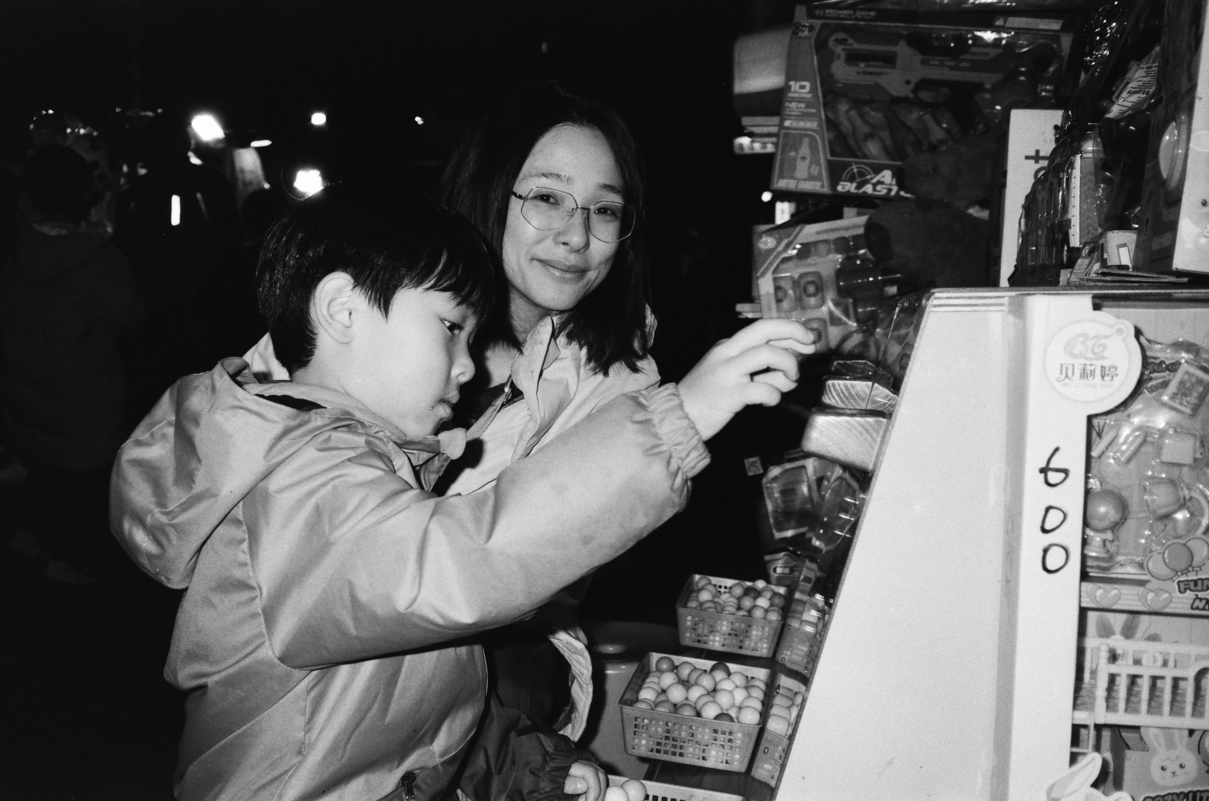 和太太、兒子逛夜市中,我也難得開了閃光燈,總覺得黑白照片開閃光燈,畫面不會讓人那麼不適。